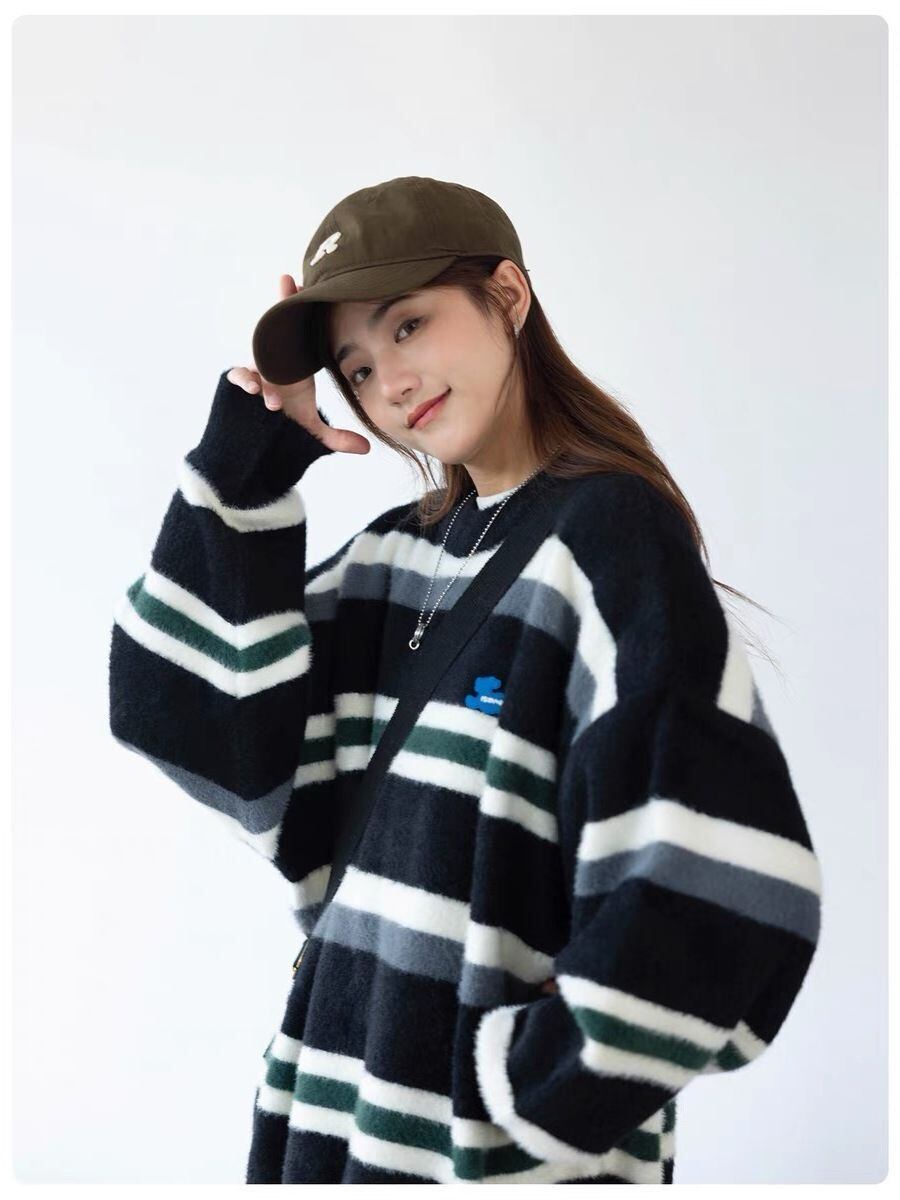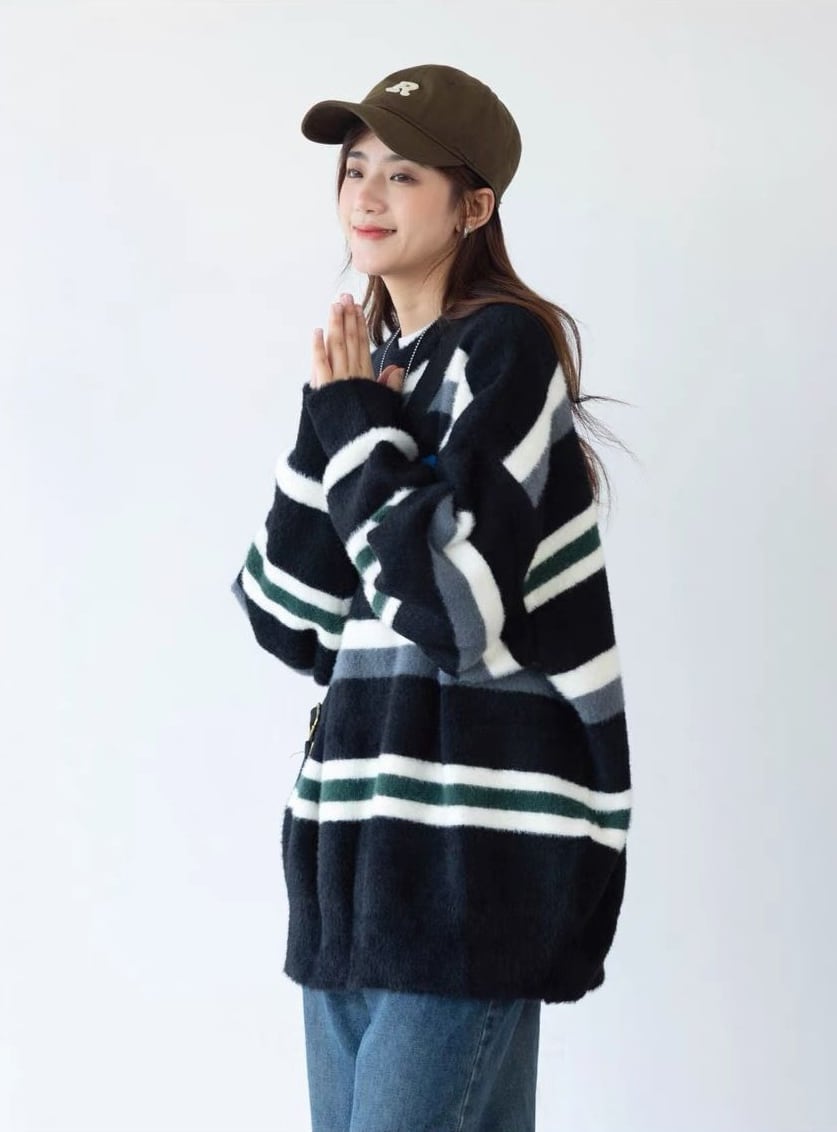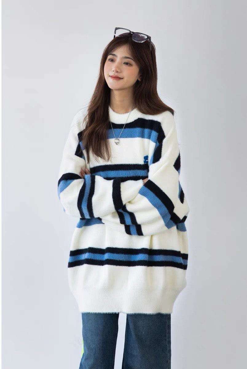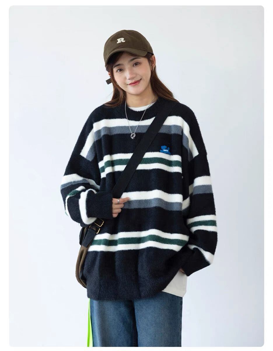 大活躍 カジュアル 柔らかくて優しい印象 ストライプ柄 2色選択ニットトップスE-9938