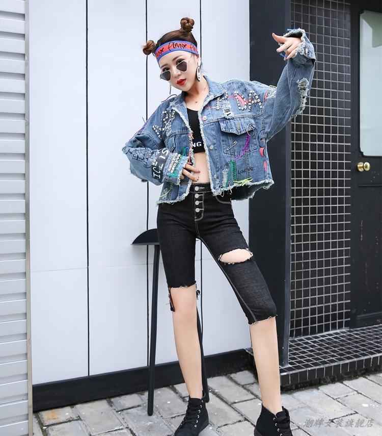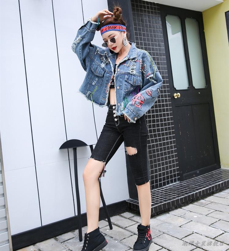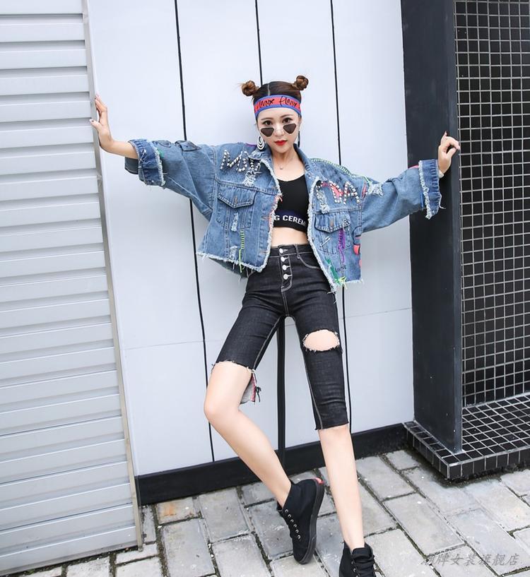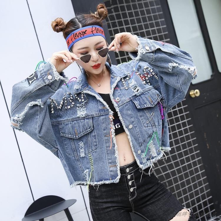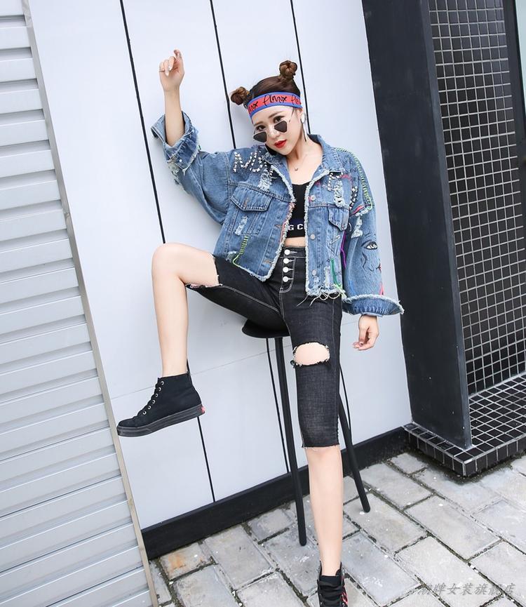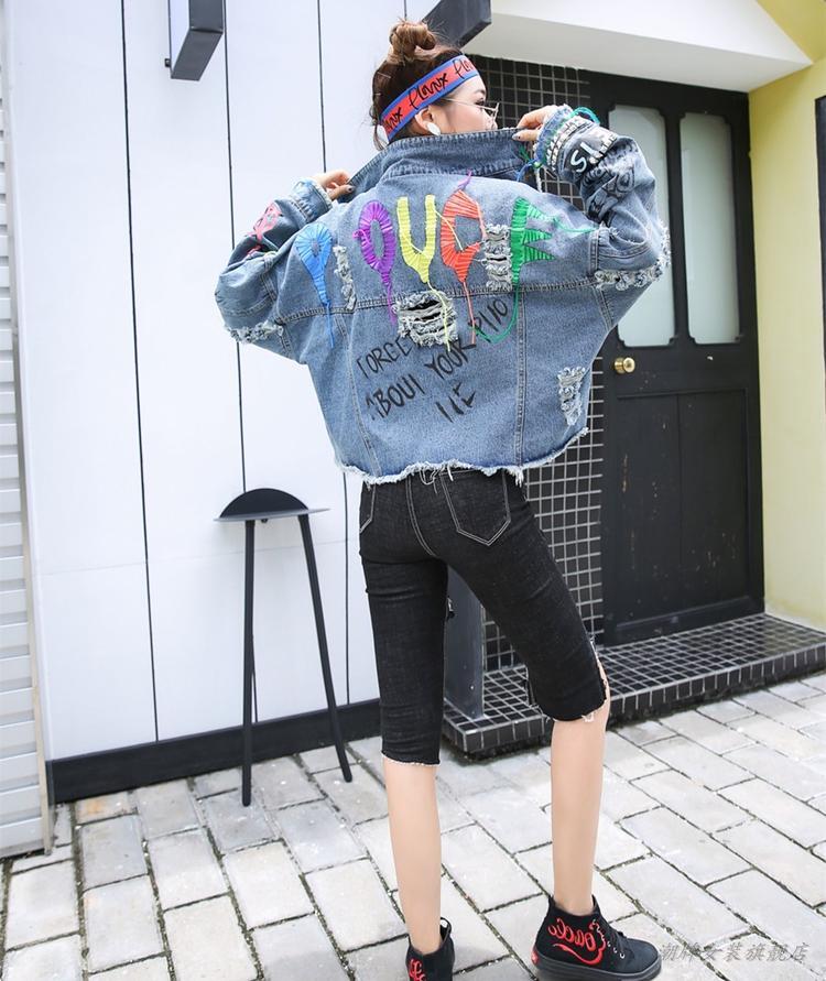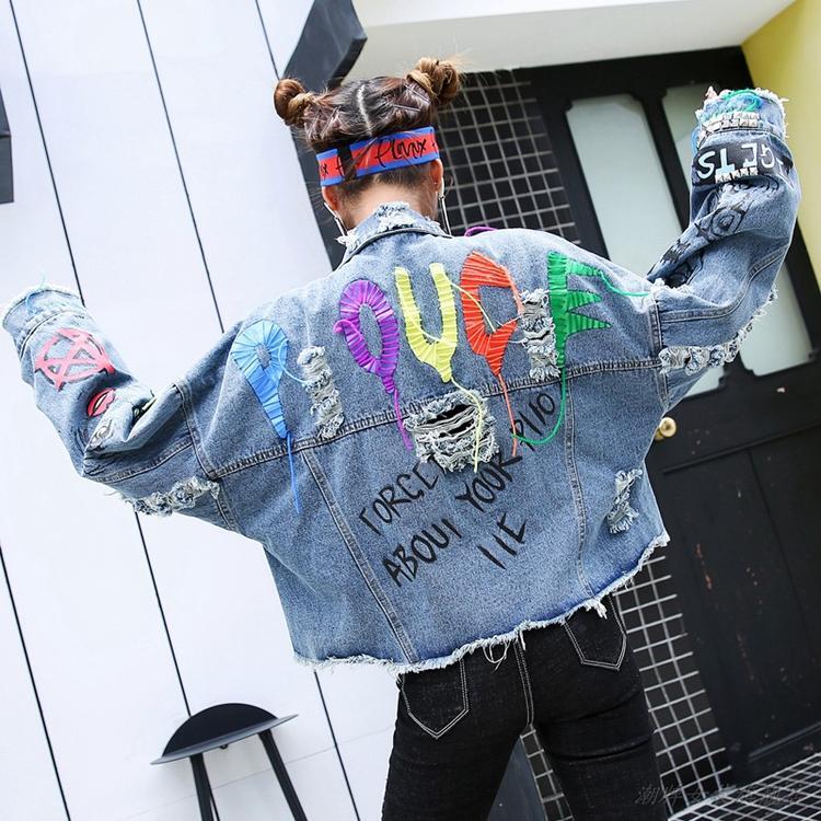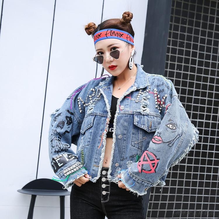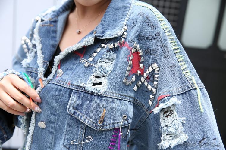 大活躍 リベット 落書きストレート系 デニムジャケットゆったりコート<ins-8162>