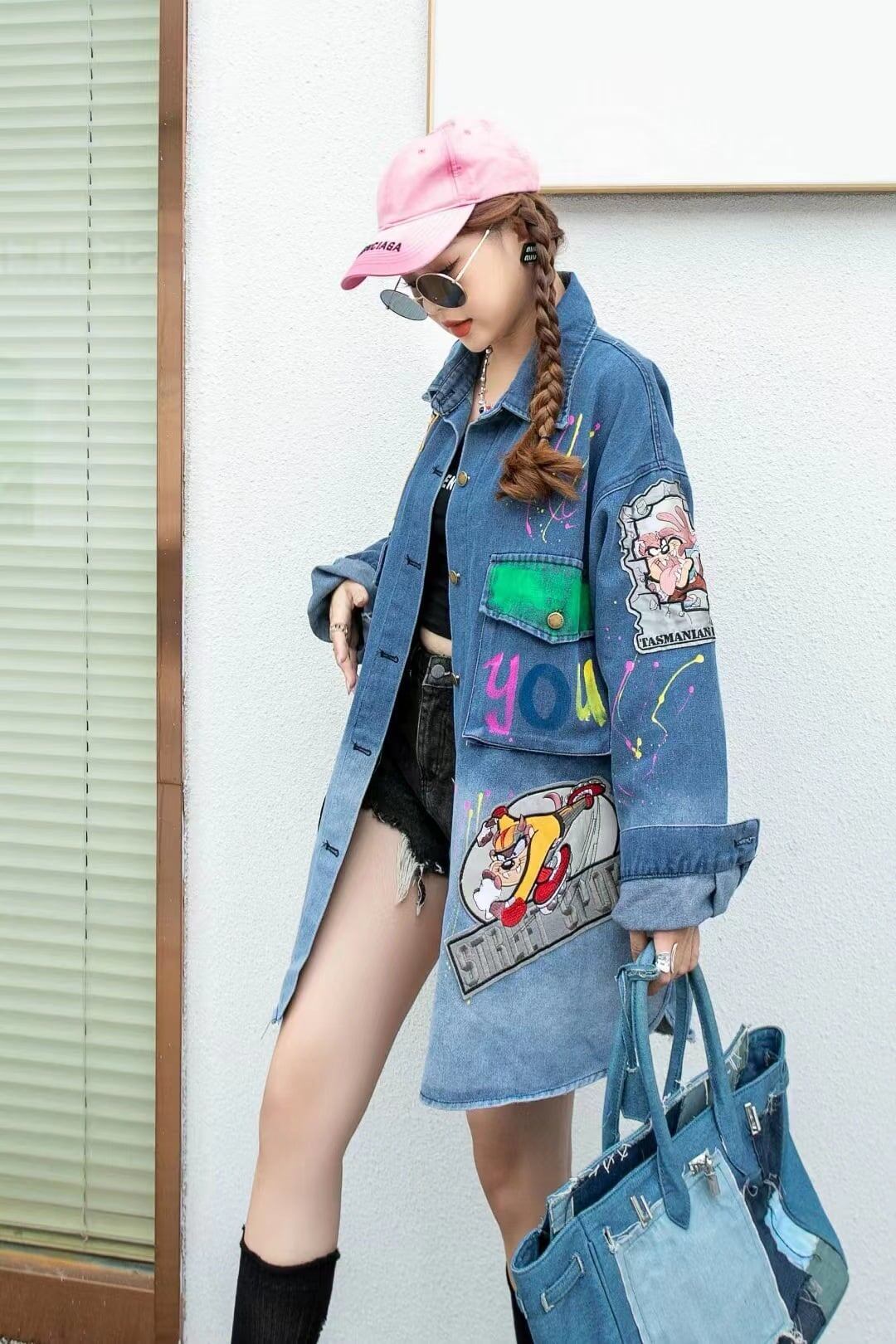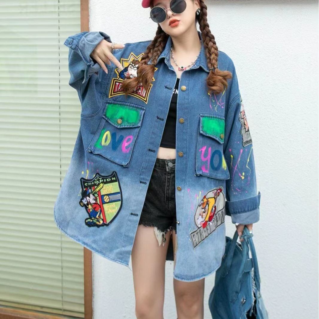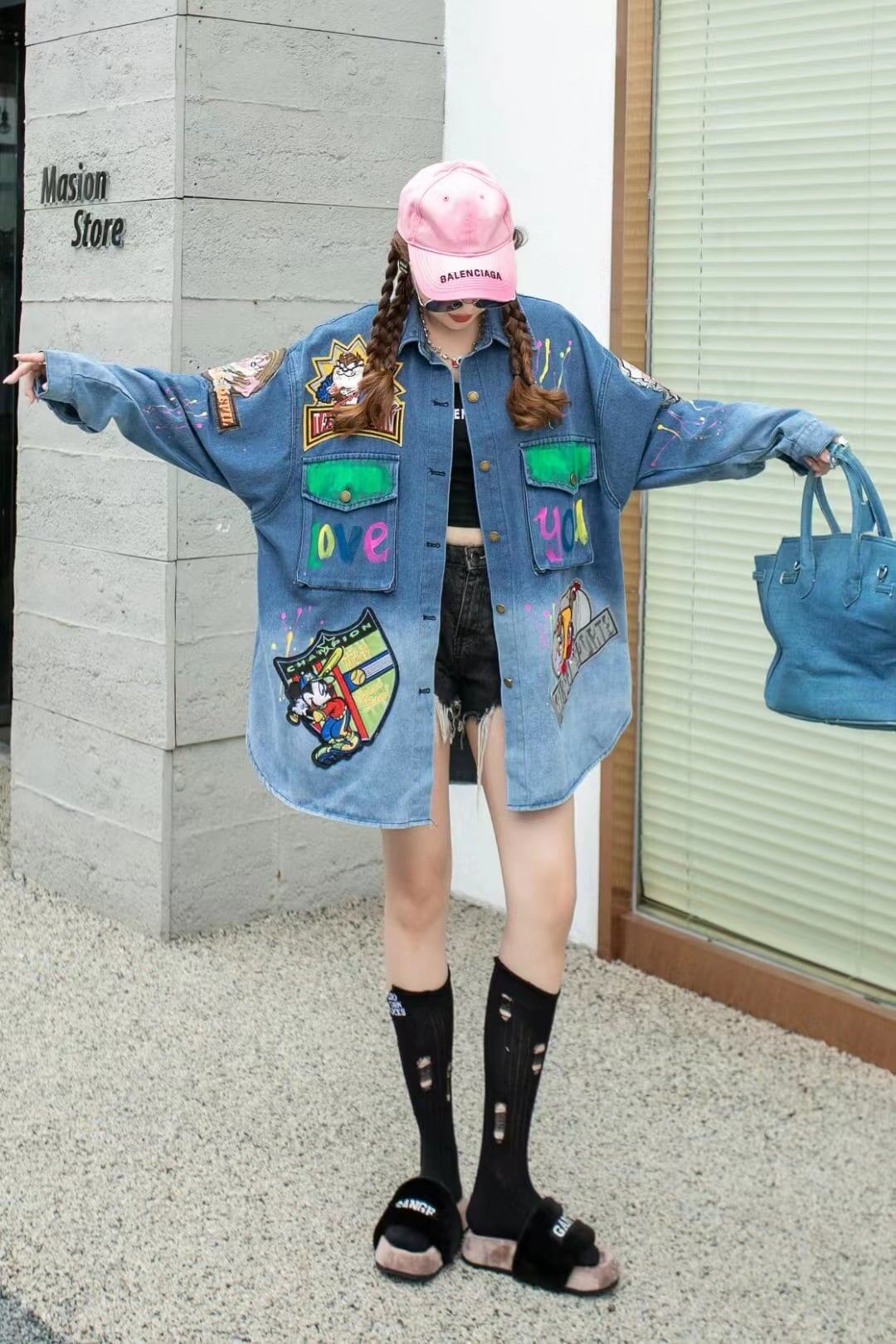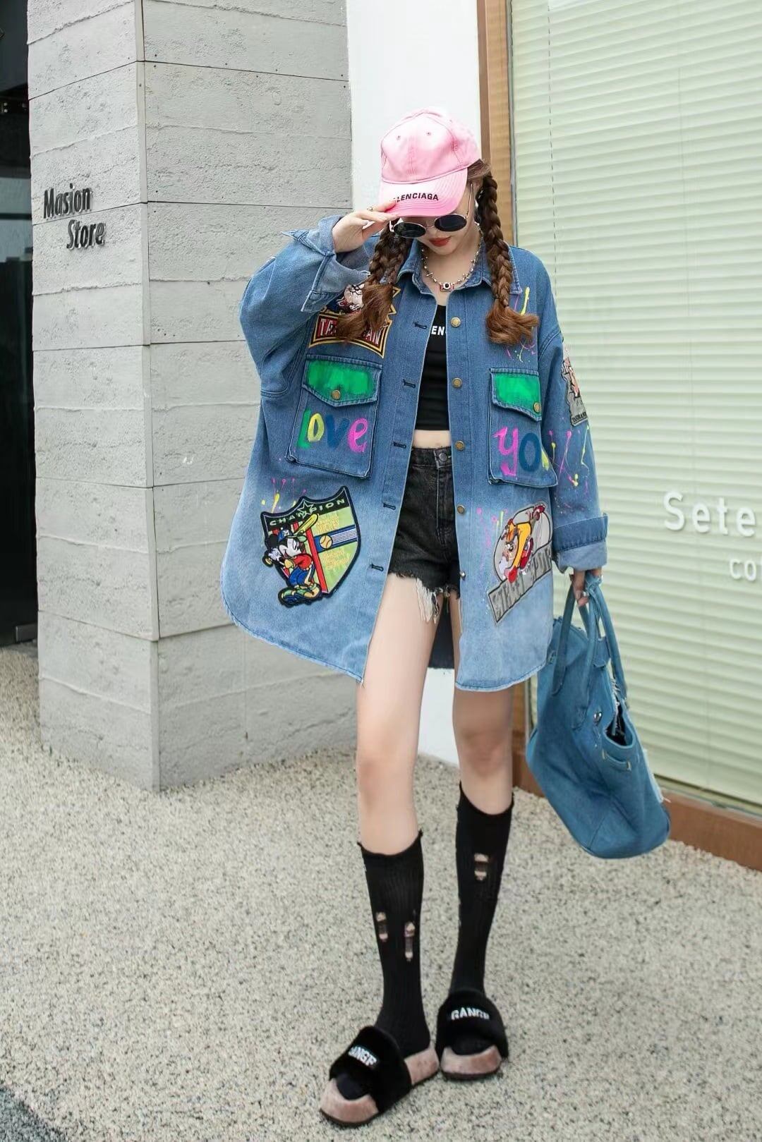 大活躍 刺ロゴ 落書きストレート系 デニムジャケットゆったりコートiEf-4764