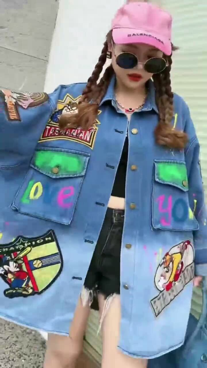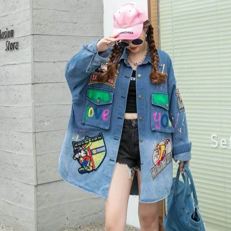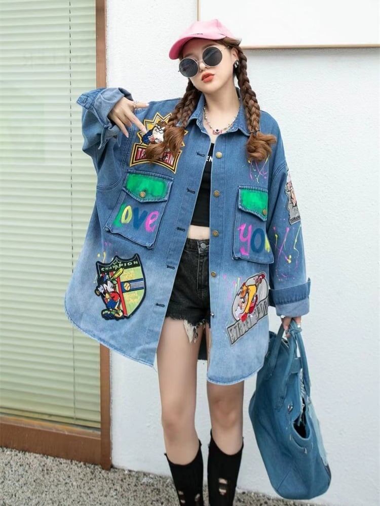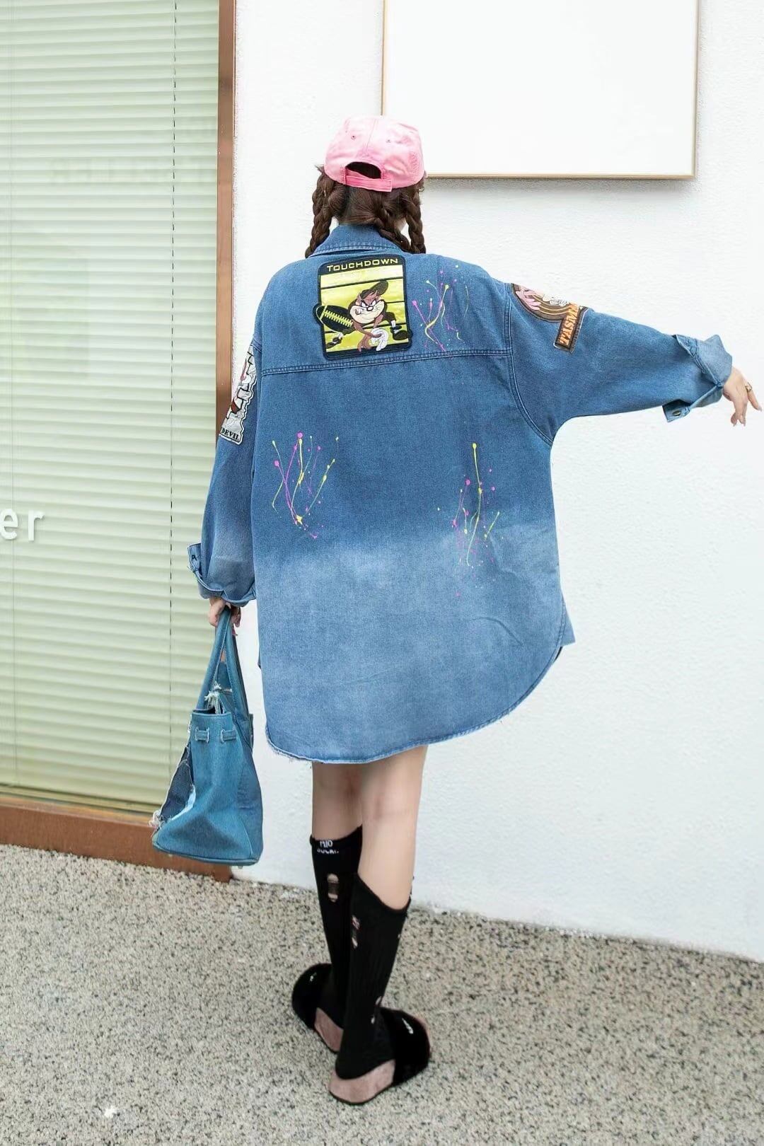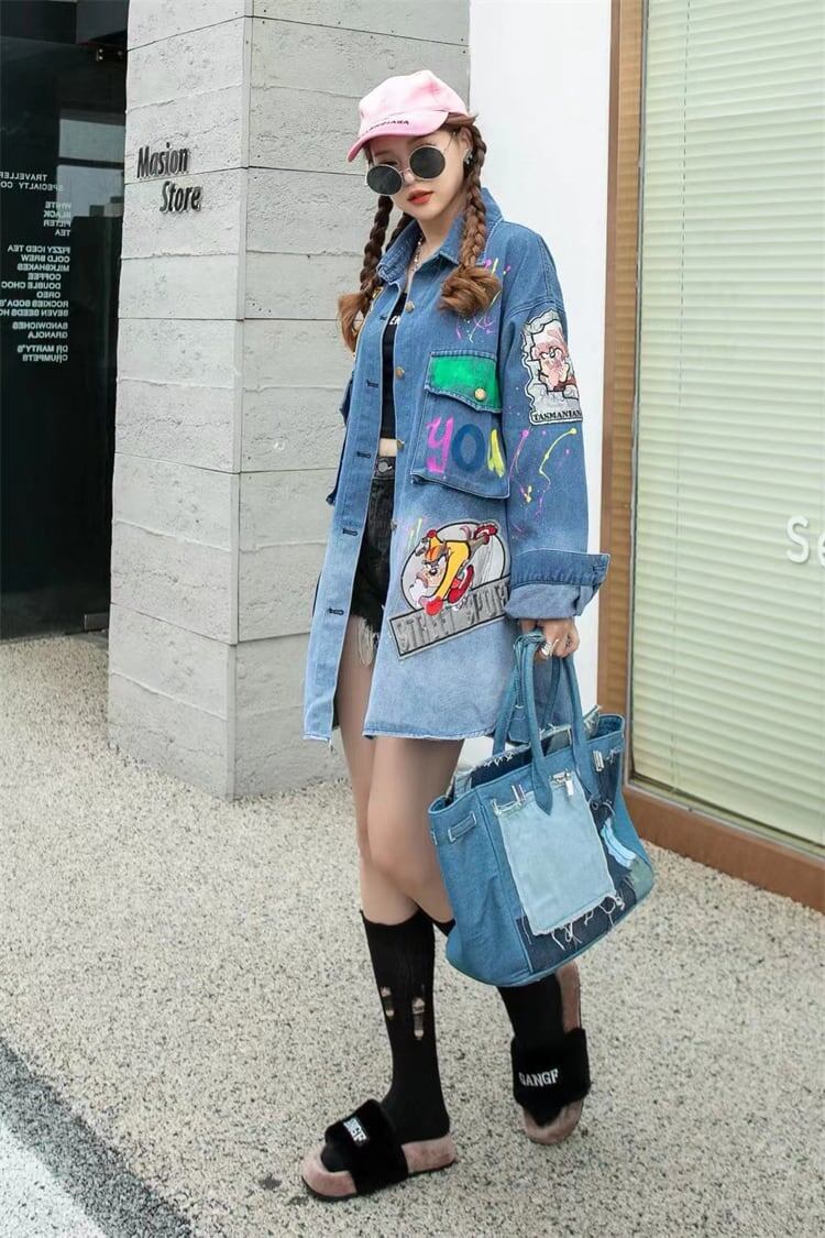 大活躍 刺ロゴ 落書きストレート系 デニムジャケットゆったりコートiEf-4764