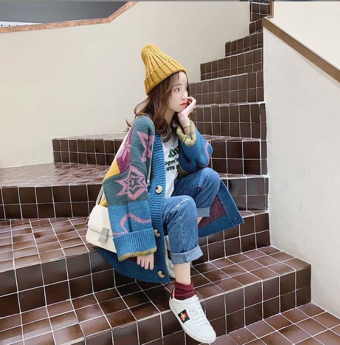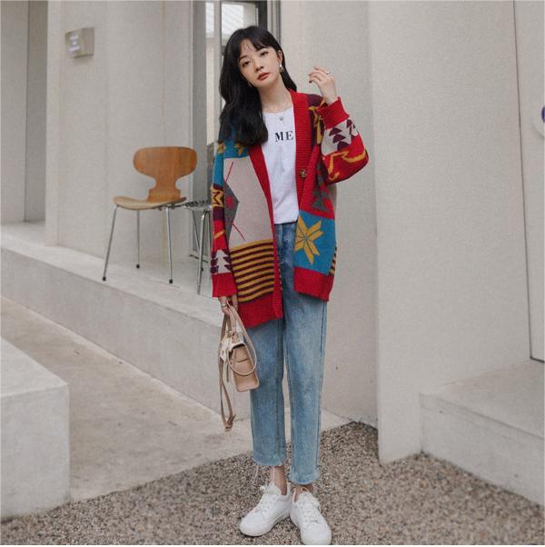 好感度UP ゆったりとした怠惰なセーターコートE-5174