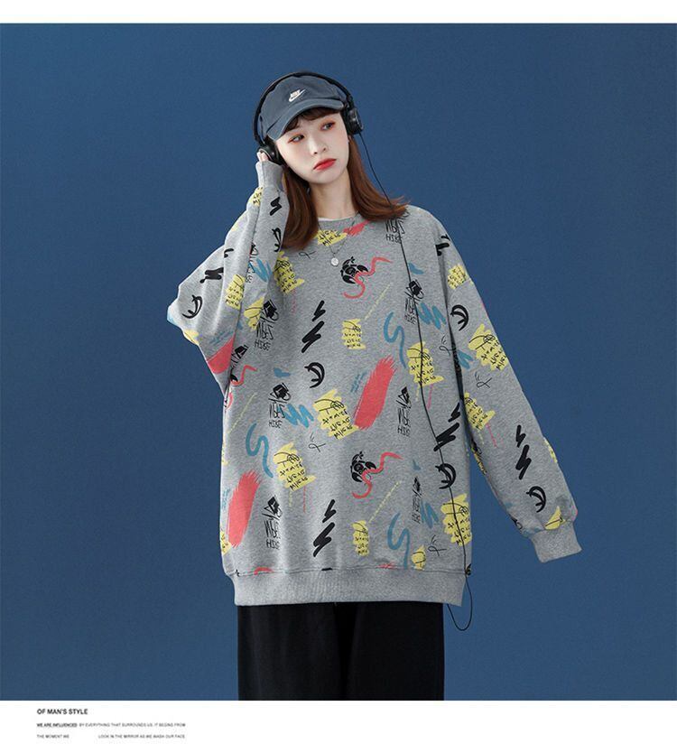 好感度UP カジュアル 定番シンプル プリント 4色選択 スウェットE-10846