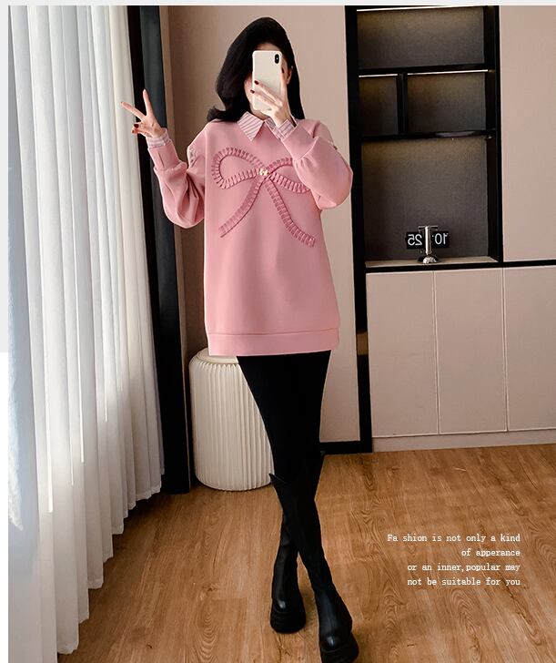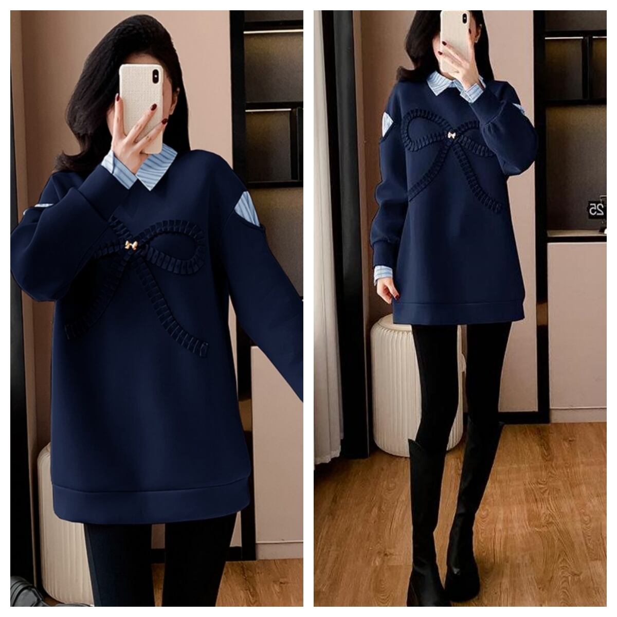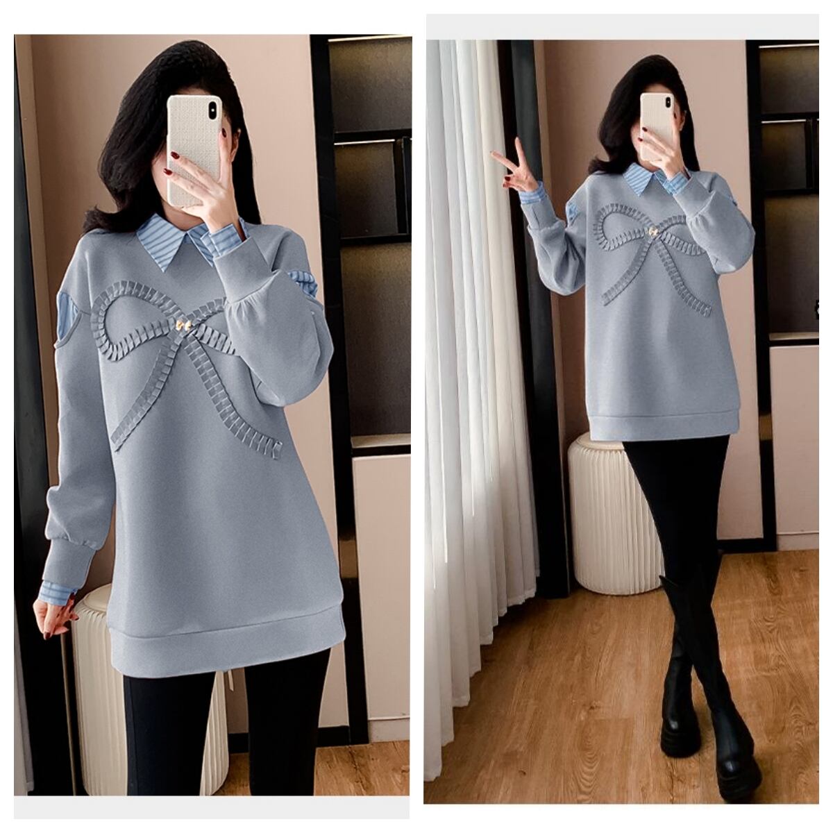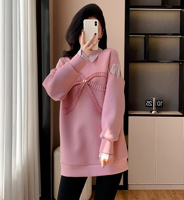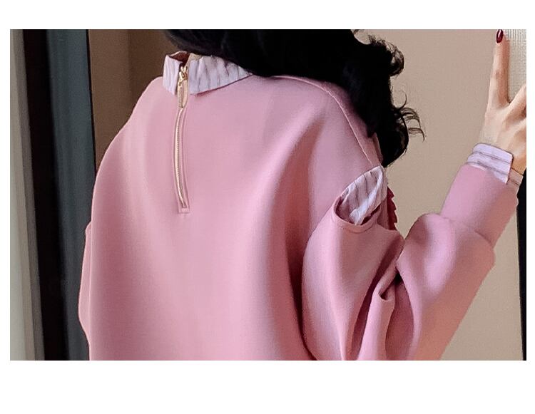 好感度UP レイヤード風 柔らかくて優しい印象 切り替え プラスベルベット 全3色 スウェットE-9809