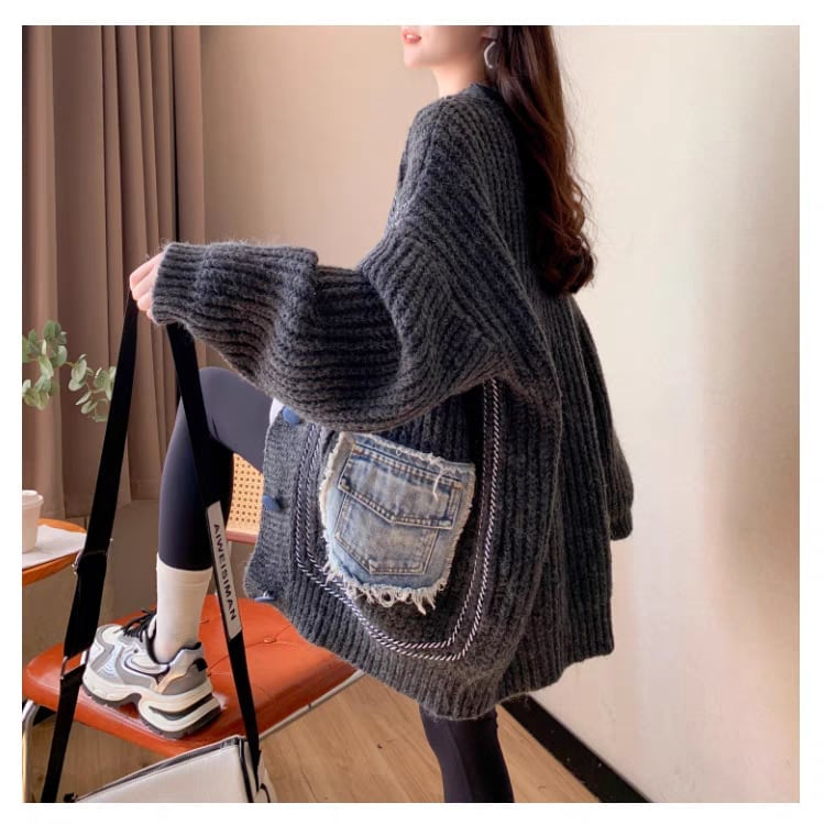 好感度UP 目を奪われる 流行新作 個性的なデザイン 2色選択 ニットトップスE-9721