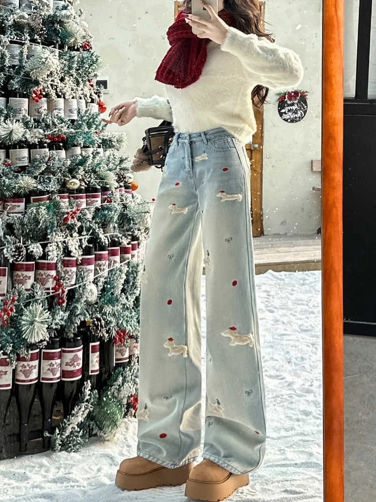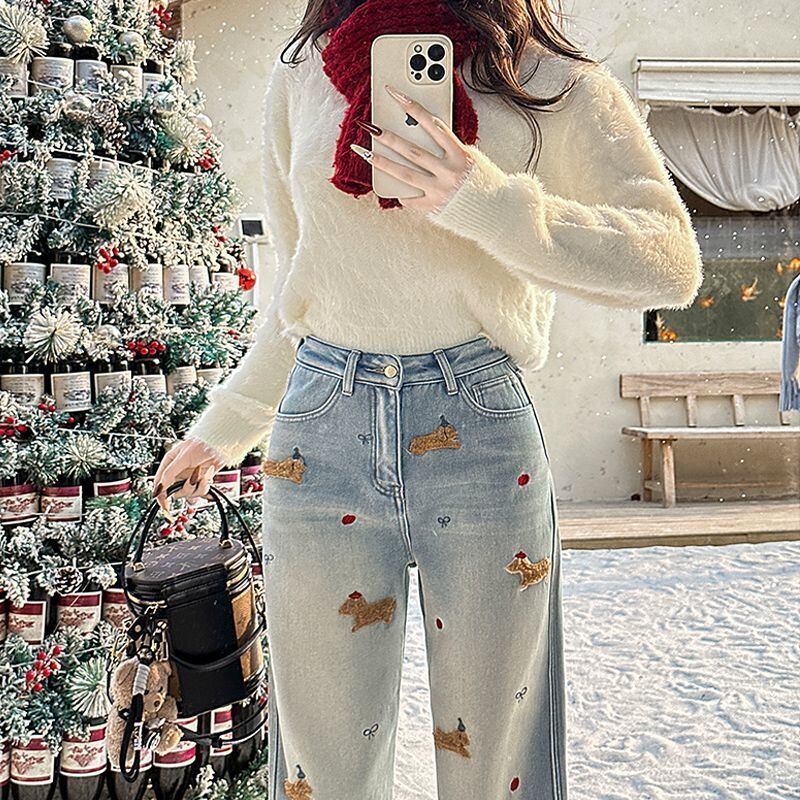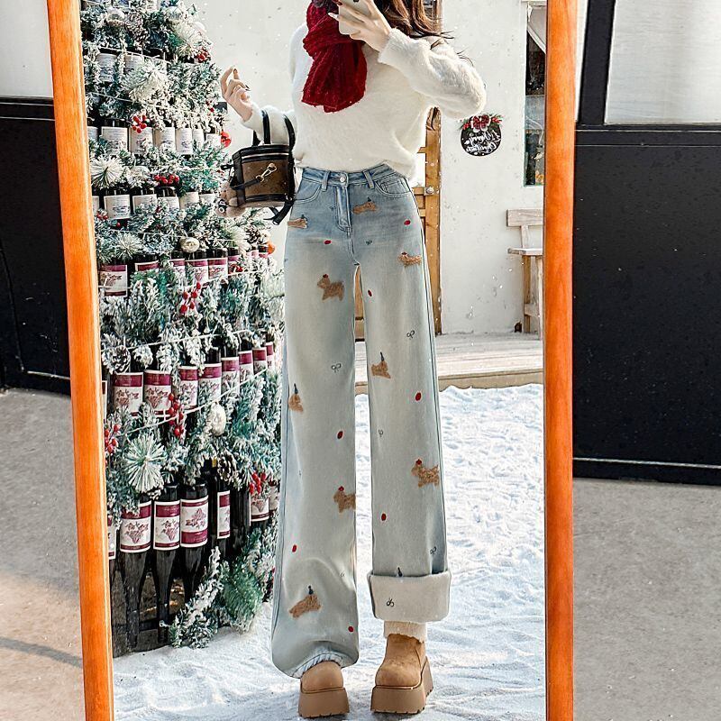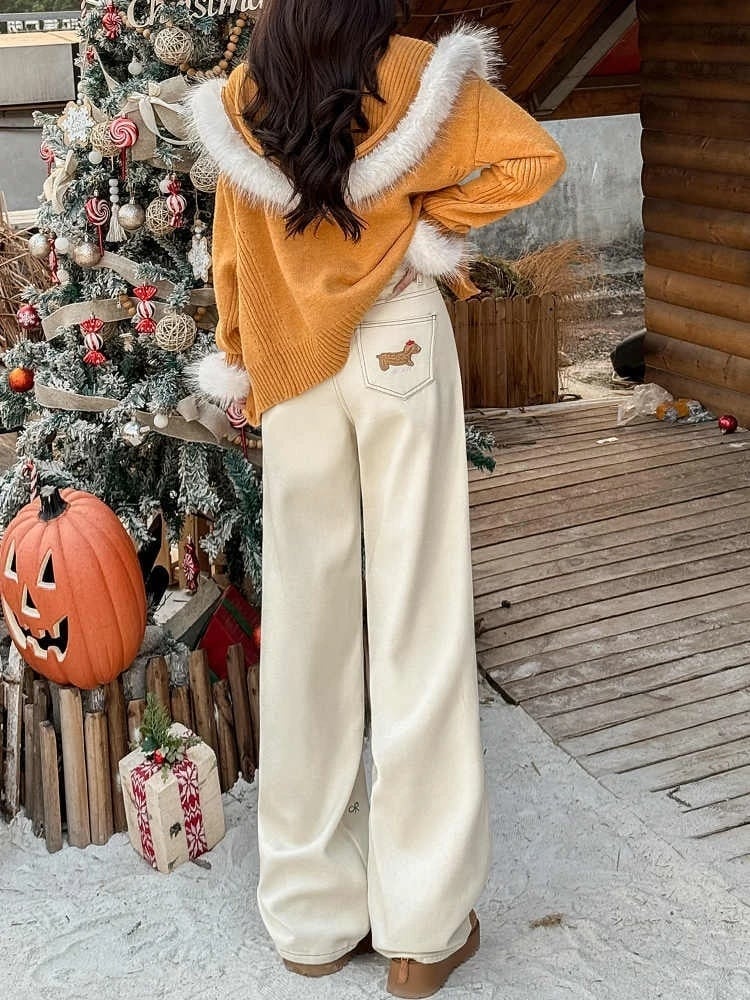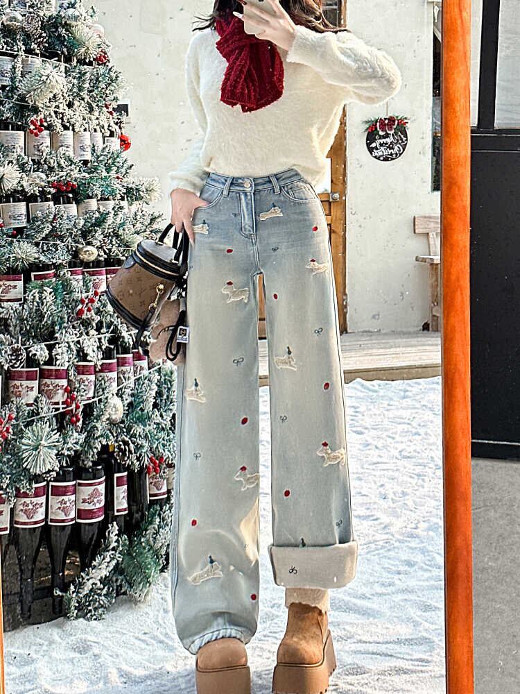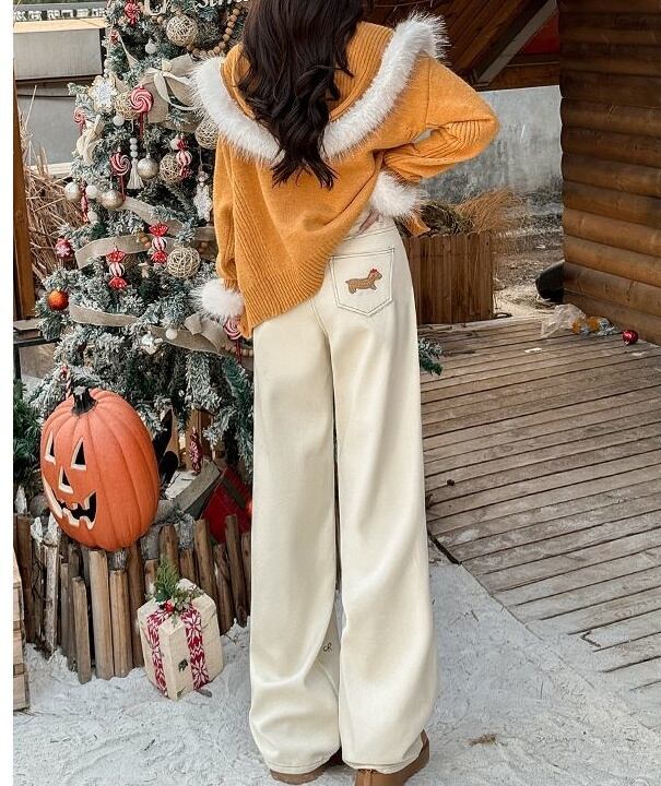 好感度UP 着回し力抜群 売り切れ必至 プラスベルベット 2色選択 デニム ワイドパンツE-10864