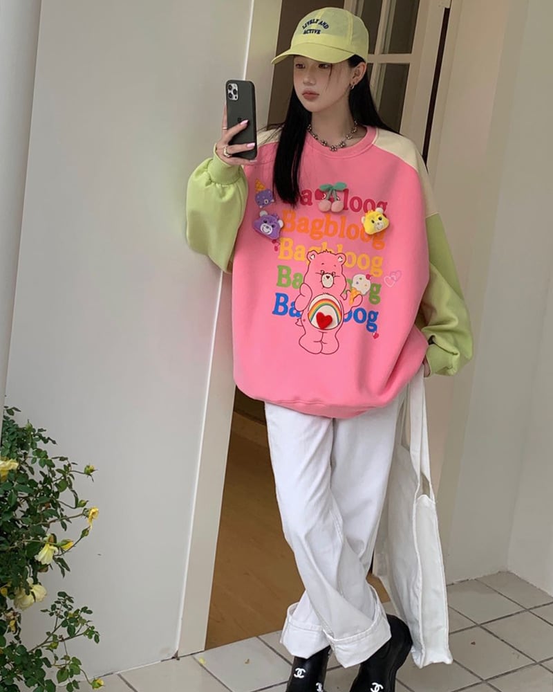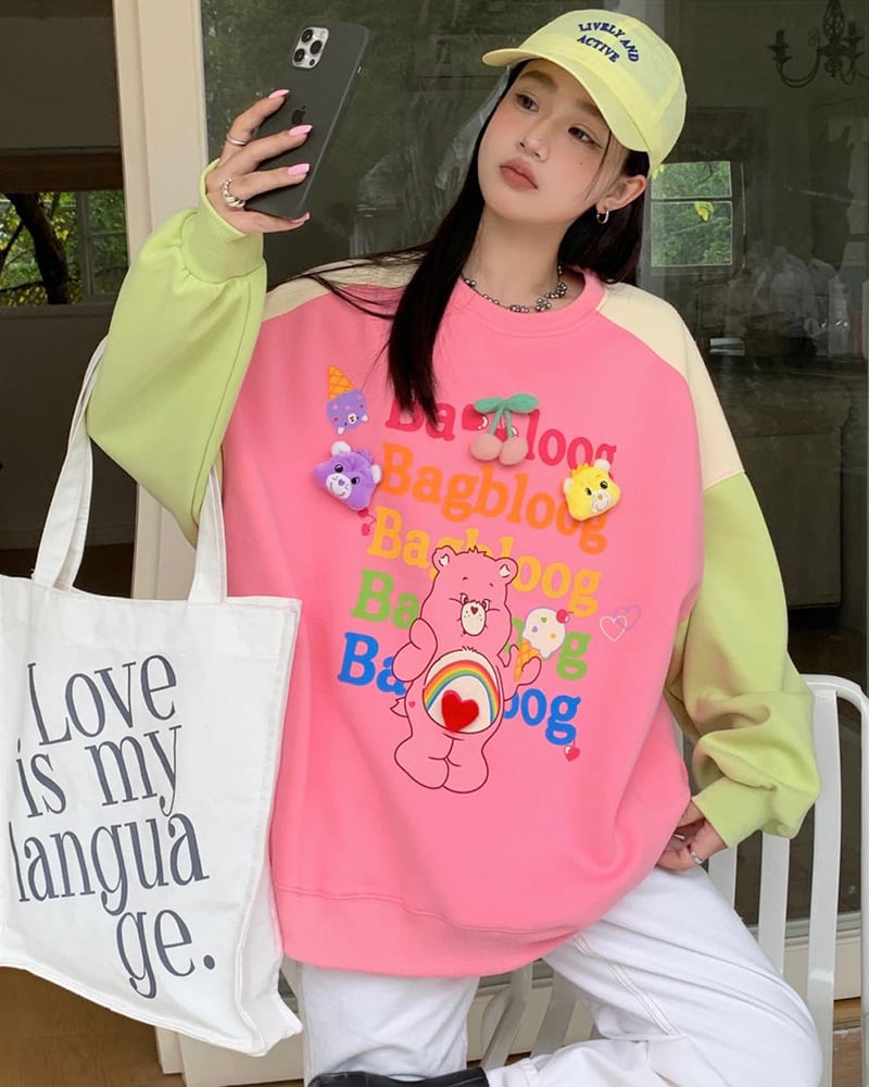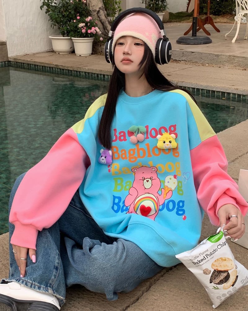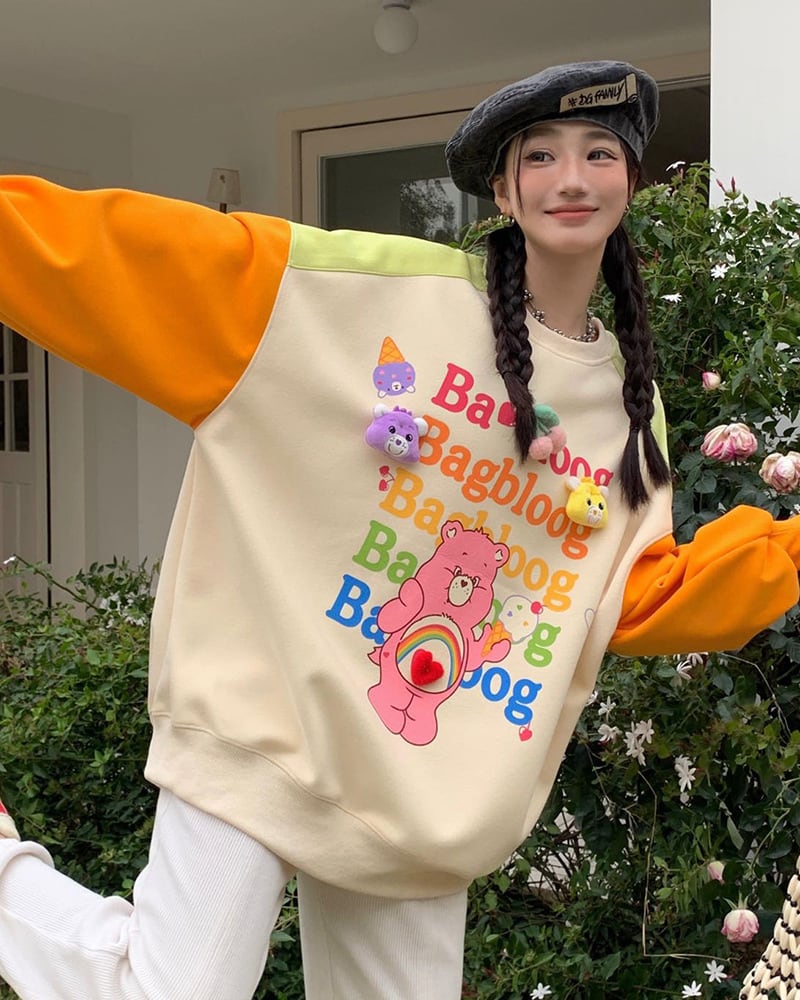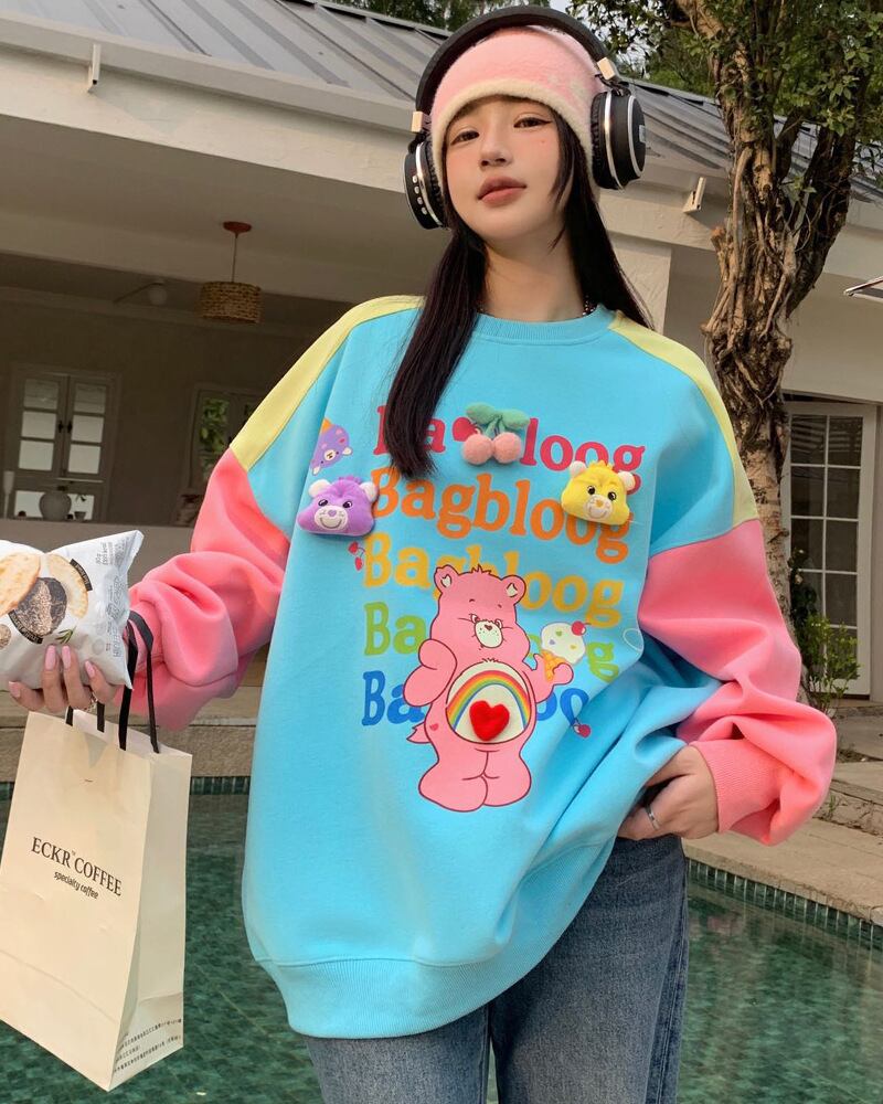 存在感アップ カラーマッチング ぬいぐるみ付き ゆったりスウェット 全3色トップスins-4812