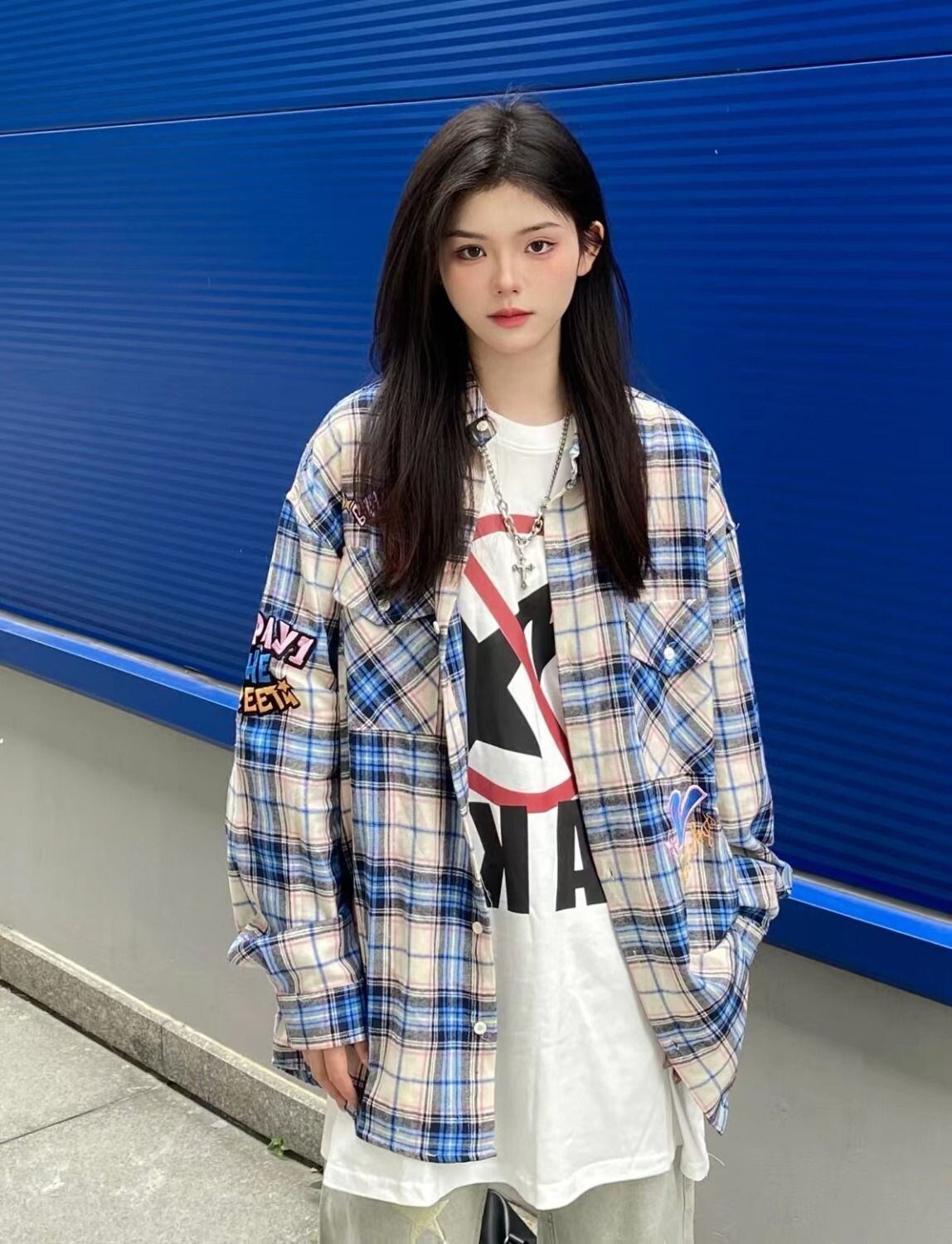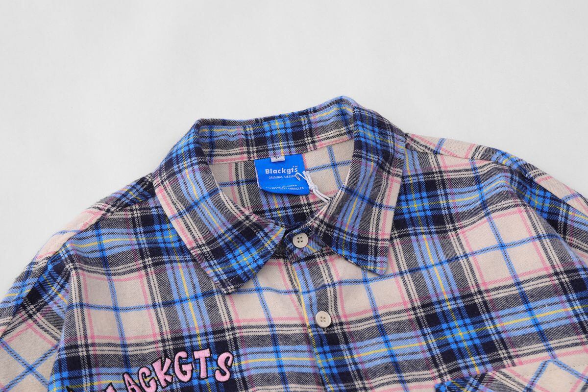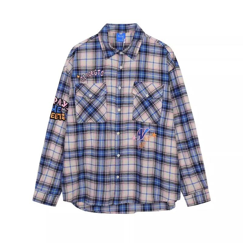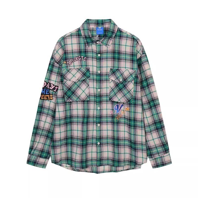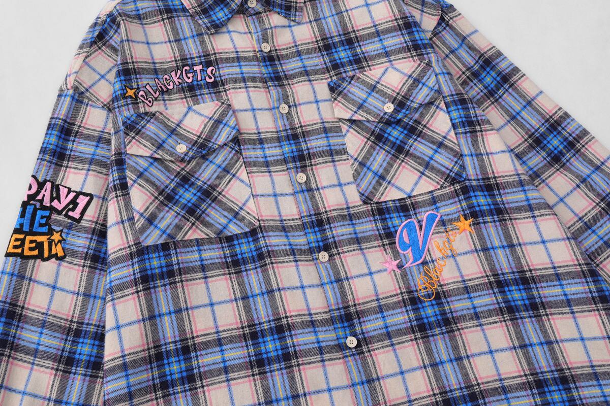 存在感抜群 カジュアル トレンドアイテム チェック柄 刺繍 全2色 シャツ E-9163