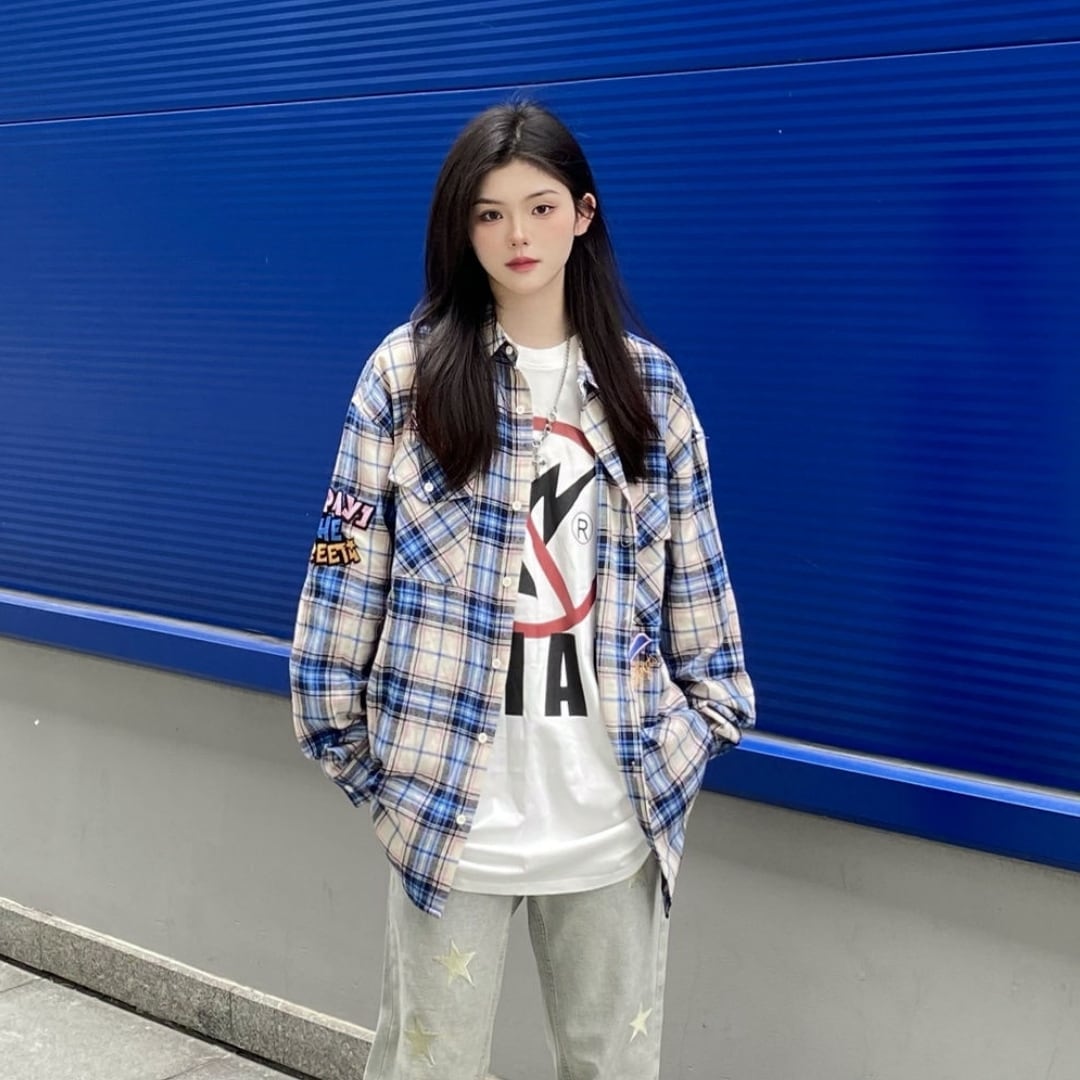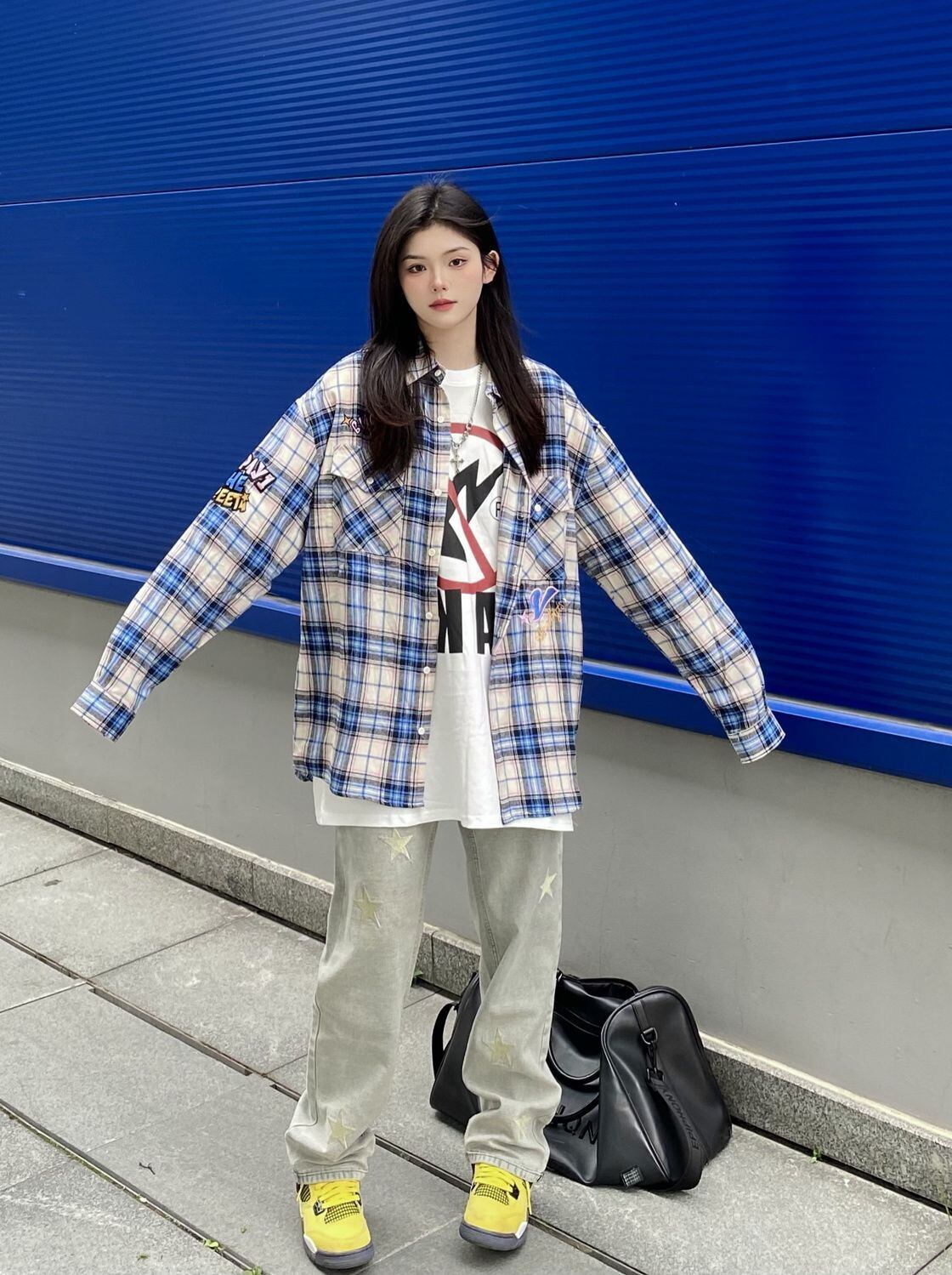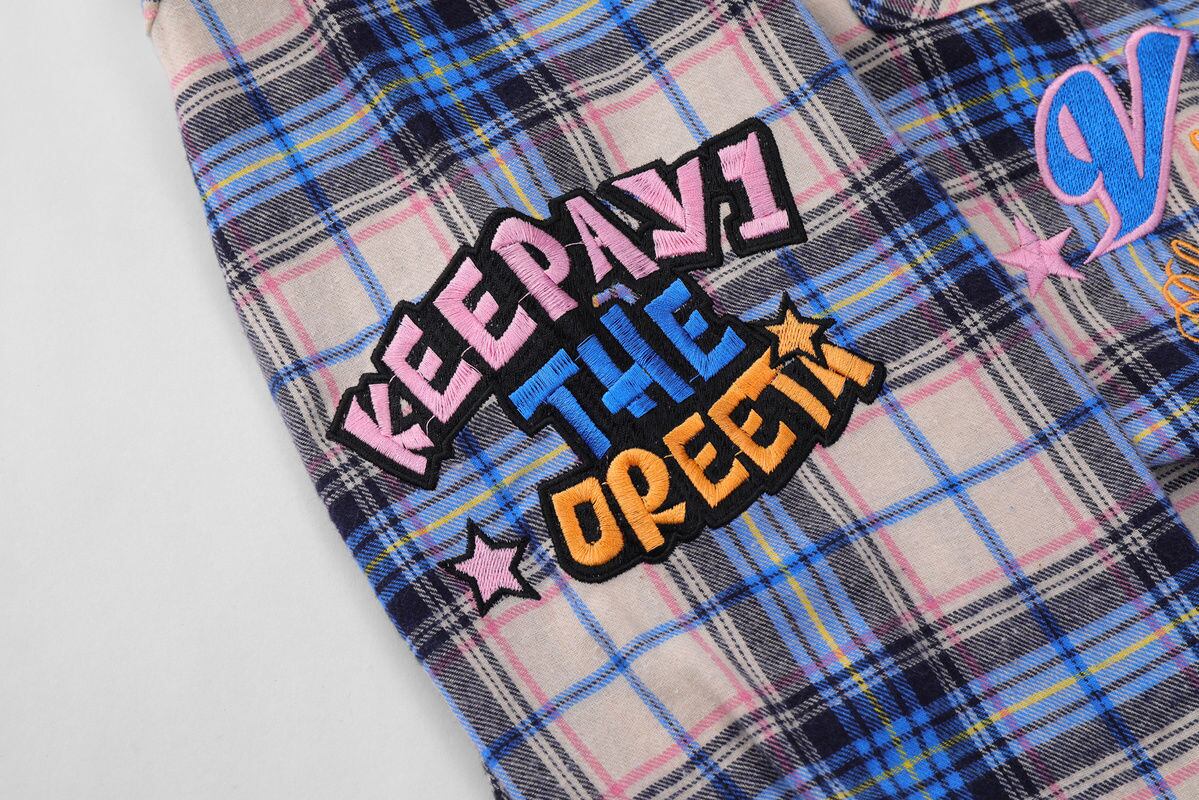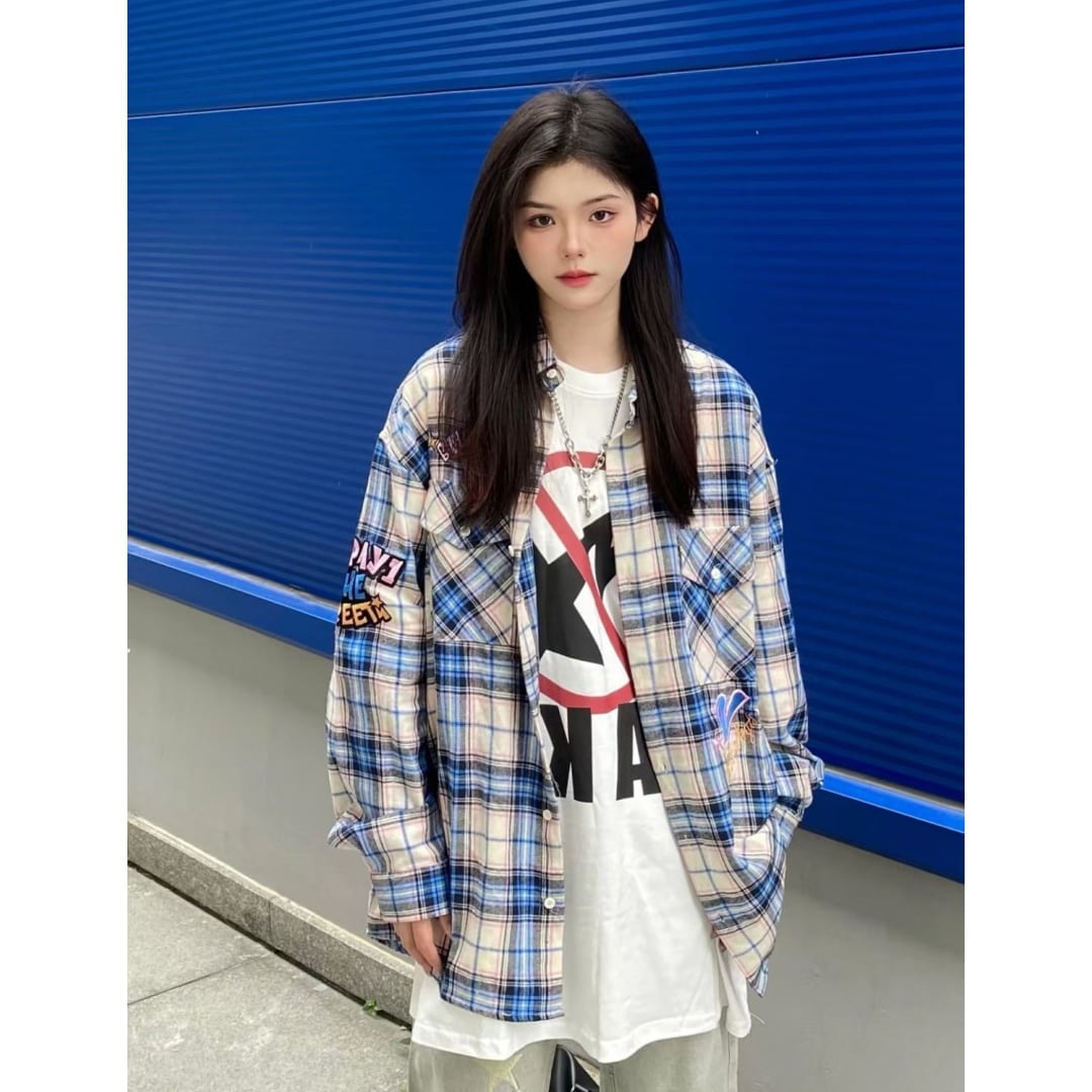 存在感抜群 カジュアル トレンドアイテム チェック柄 刺繍 全2色 シャツ E-9163