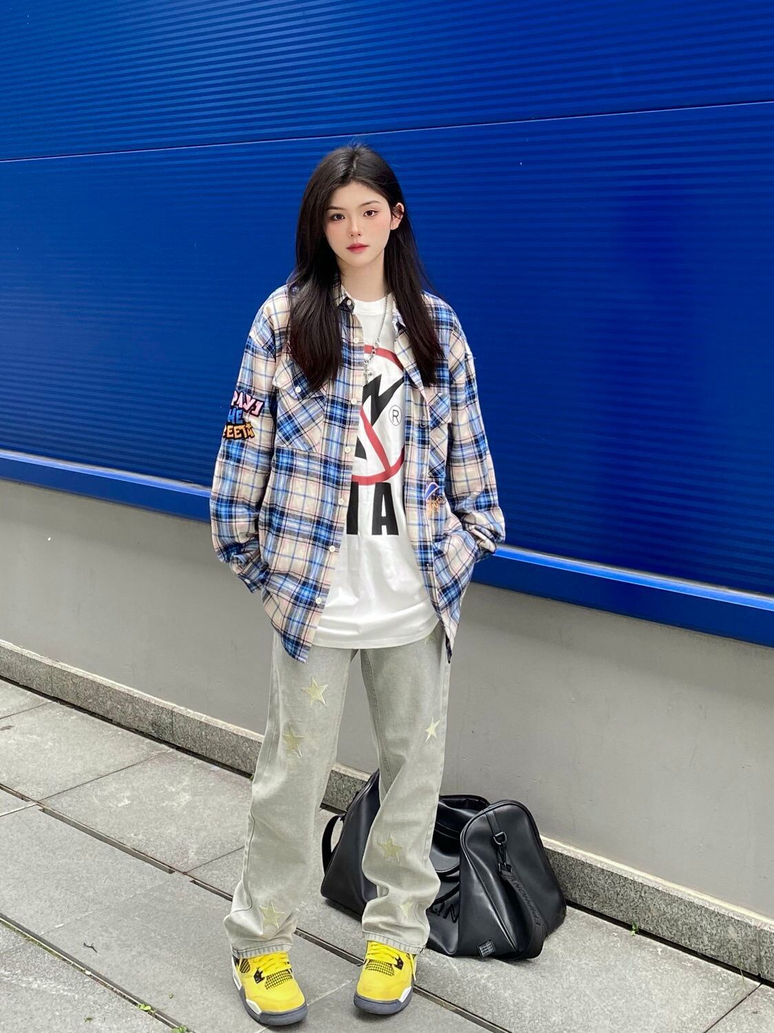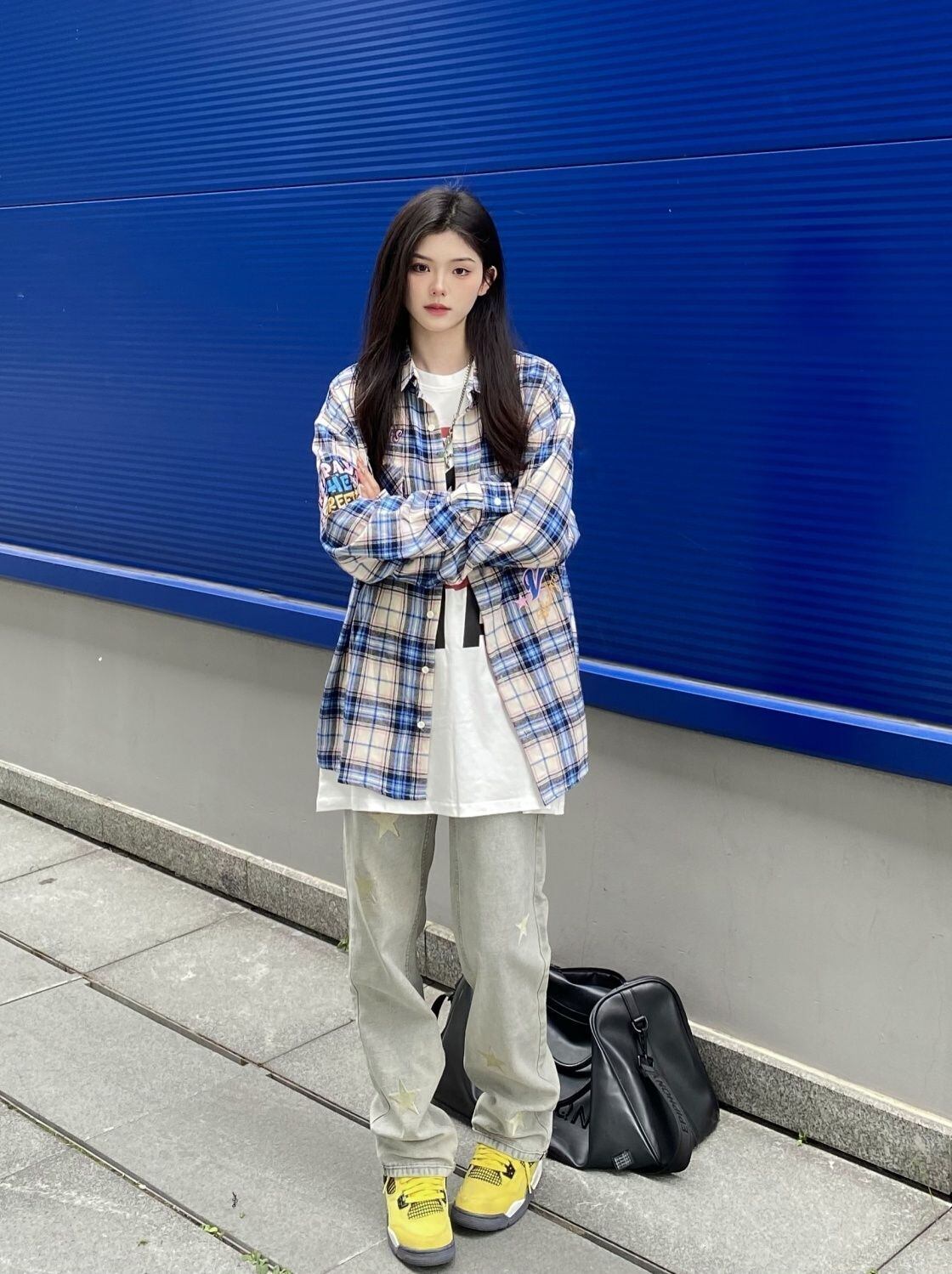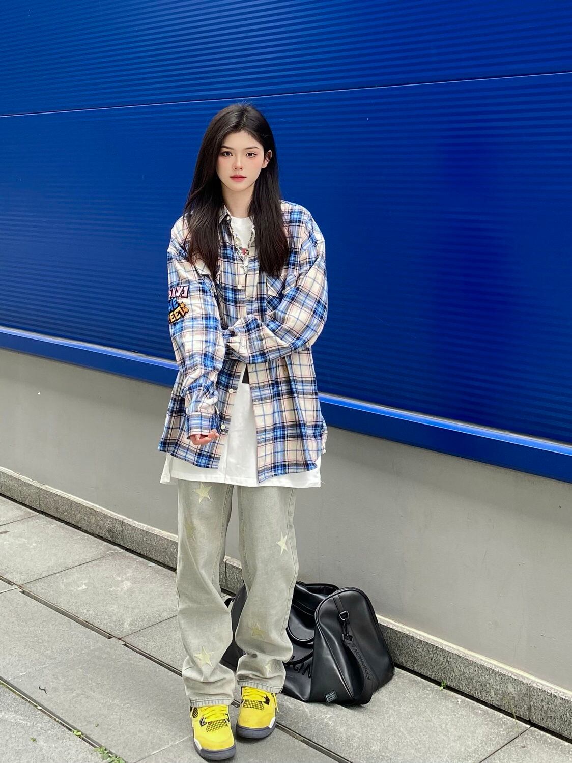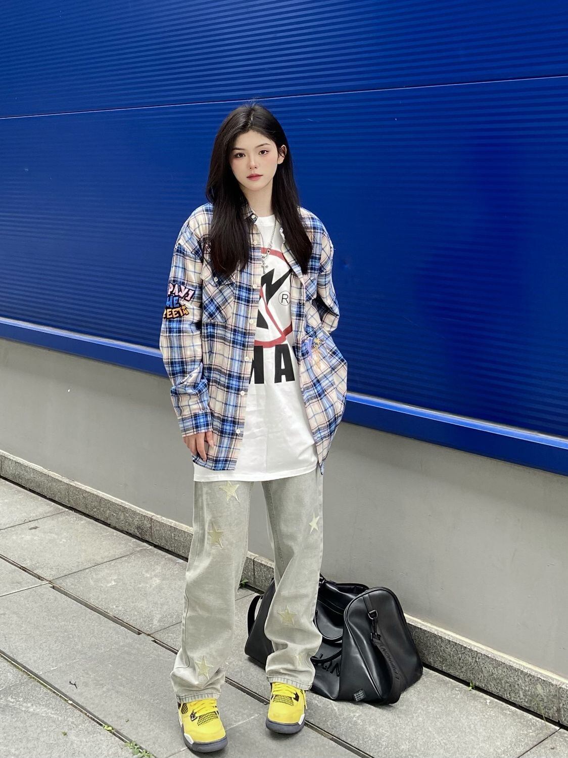 存在感抜群 カジュアル トレンドアイテム チェック柄 刺繍 全2色 シャツ E-9163