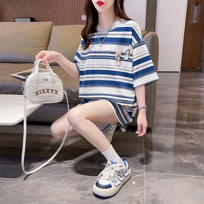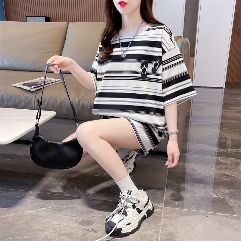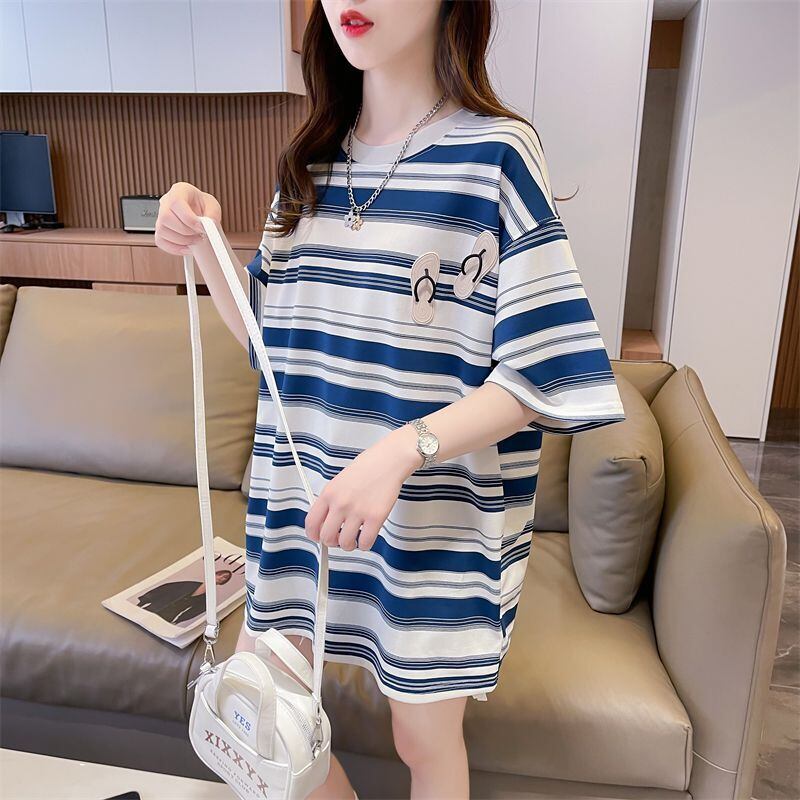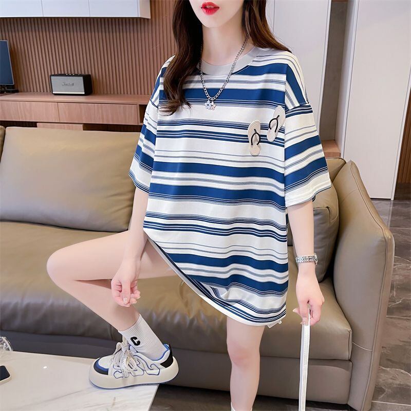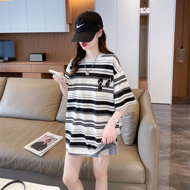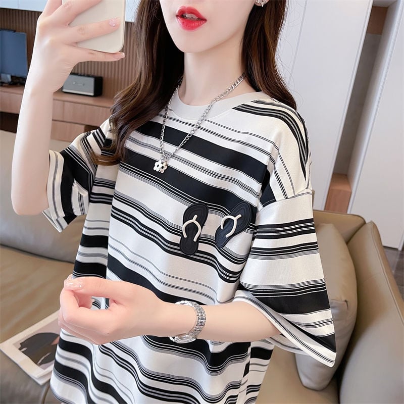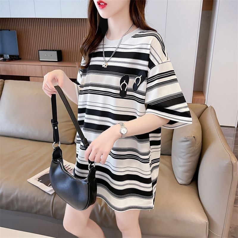 存在感抜群 ストライプ柄 トレンドアイテム カジュアル ゆったり 全2色 半袖TシャツE-9322