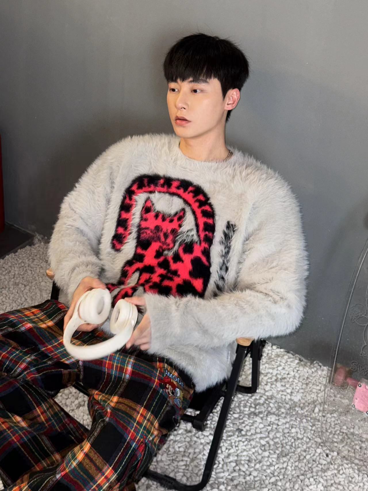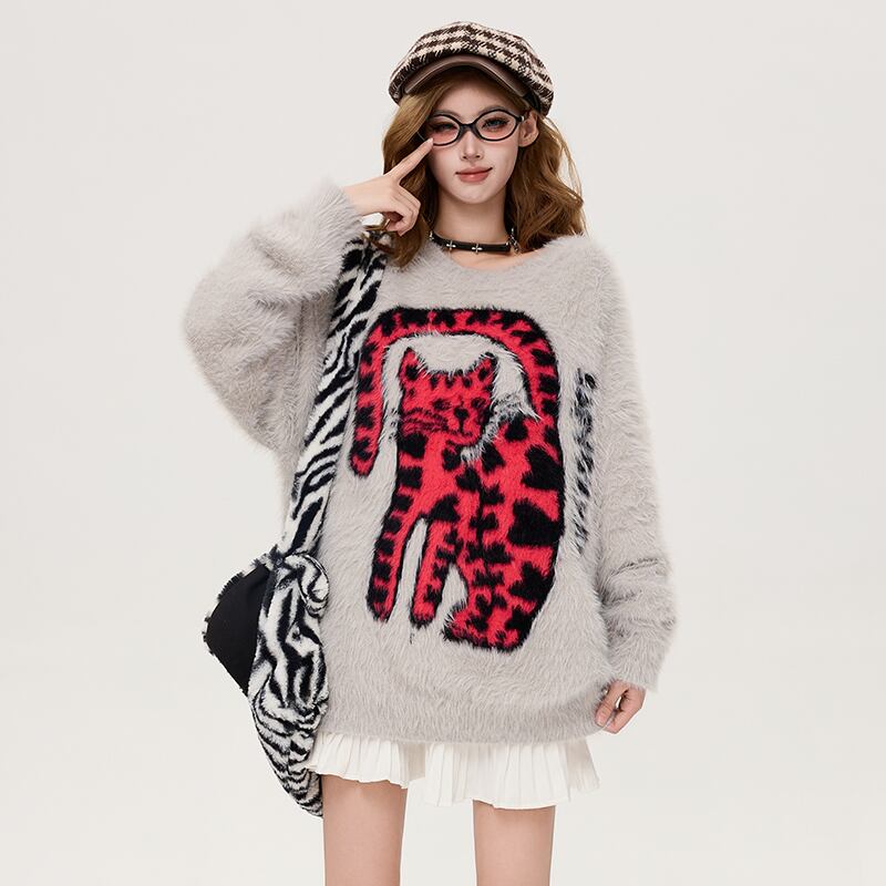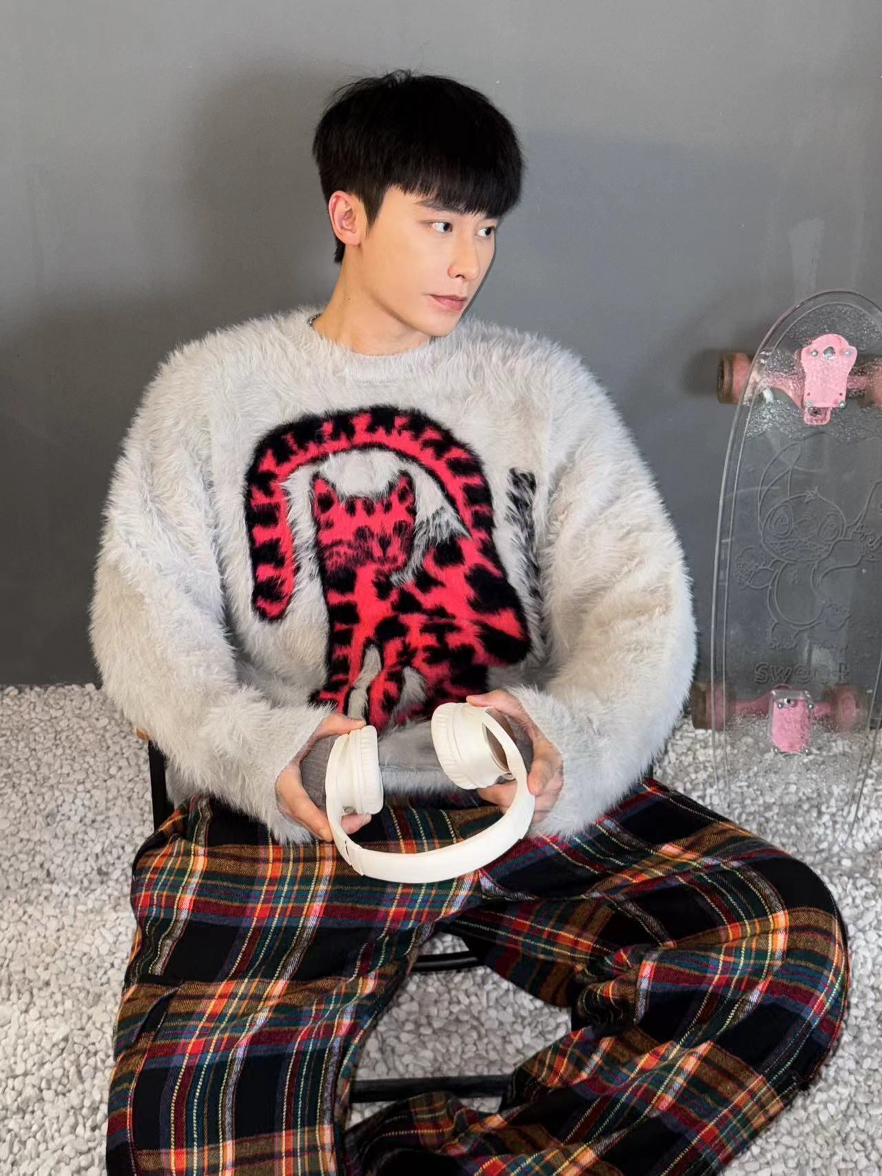 存在感抜群 個性的なデザイン トレンドアイテム 2色選択 ニットセーター 男女兼用E-9758