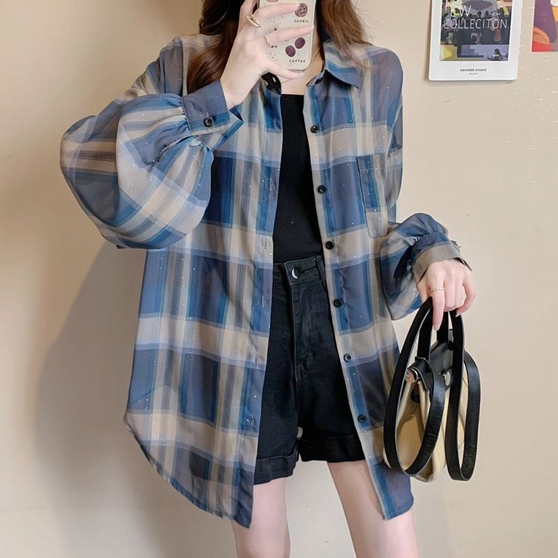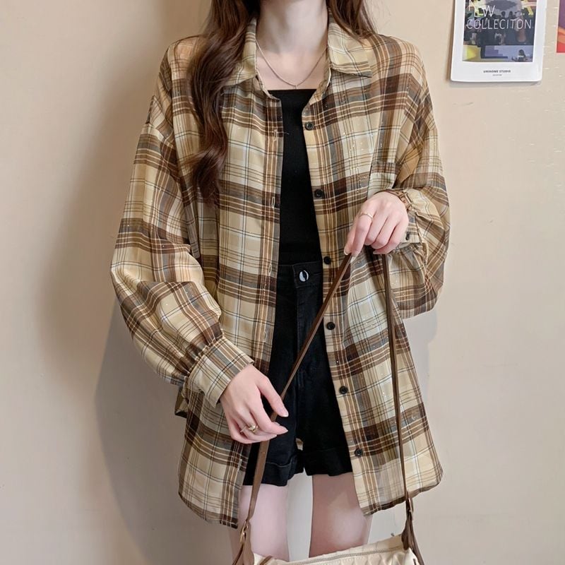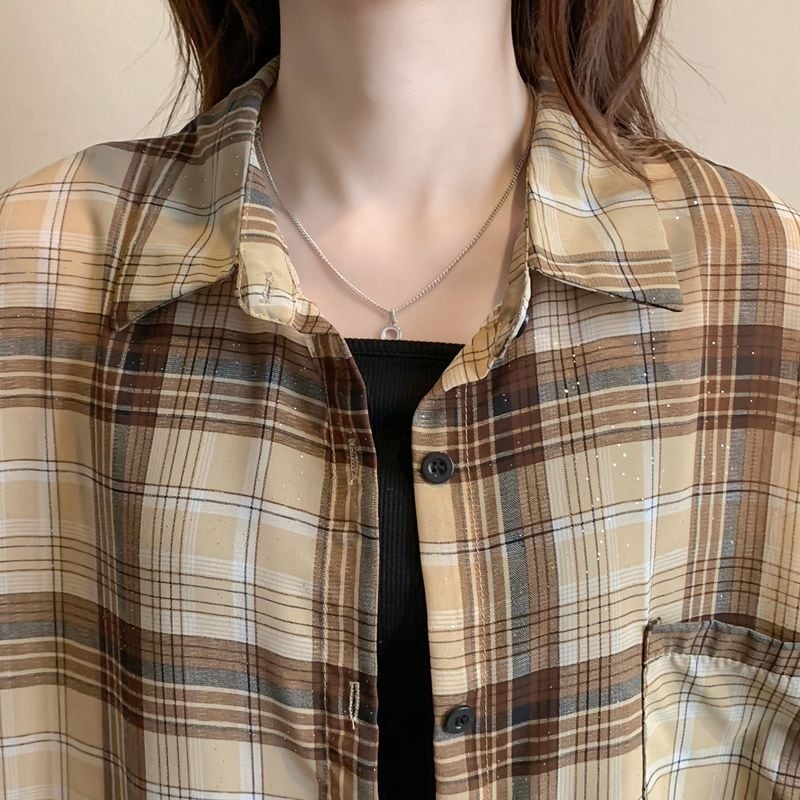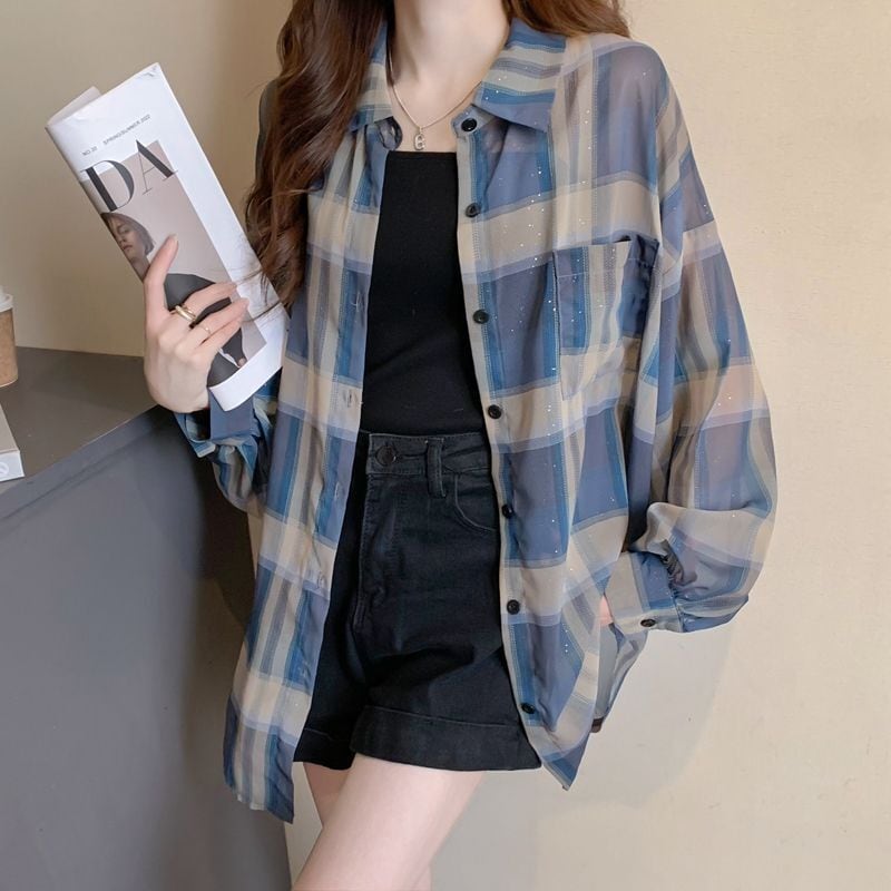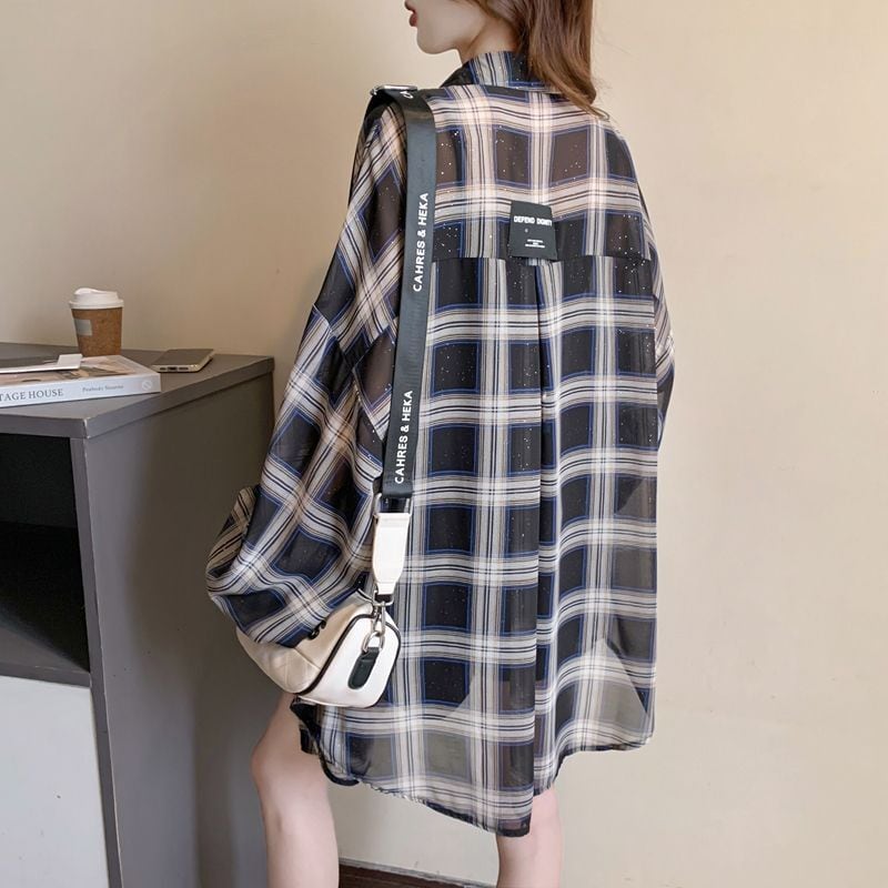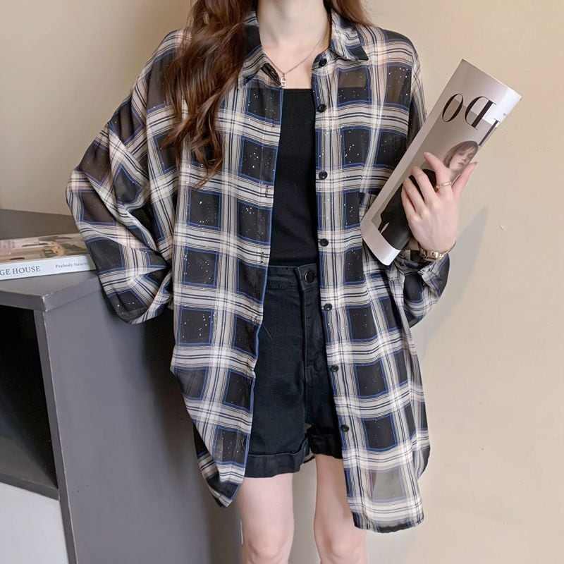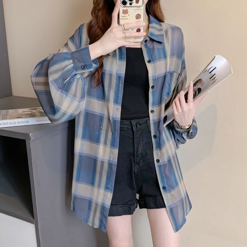 定番シンプル チェック柄 透け感 日焼け対策 全3色 シャツ <ins-8544>