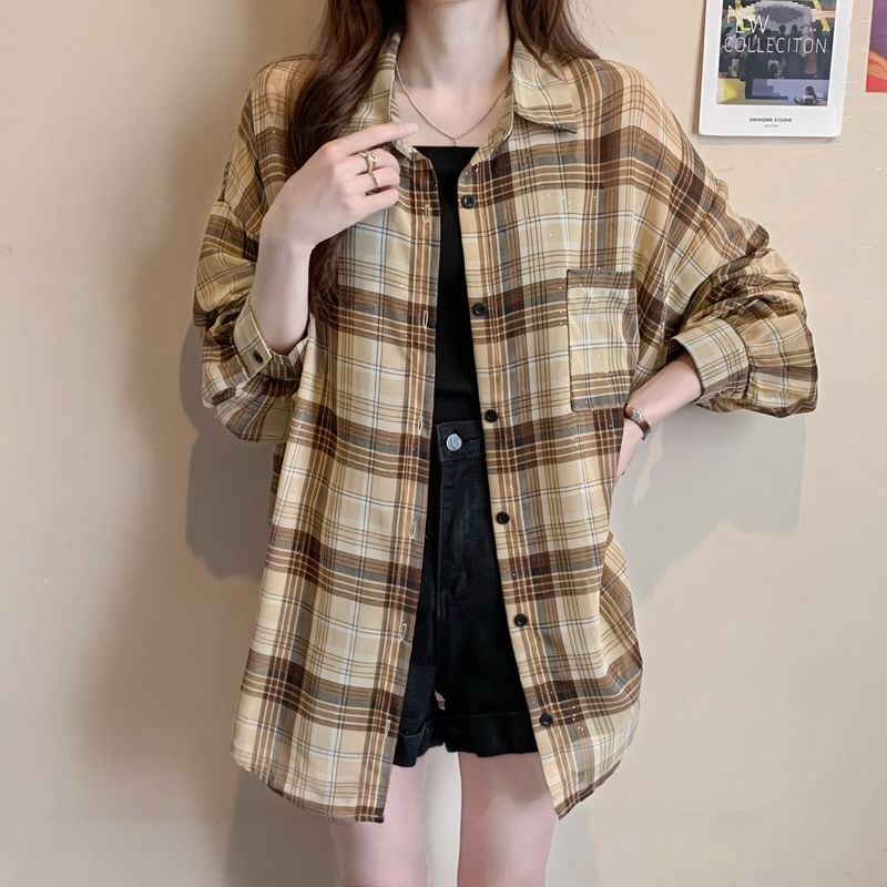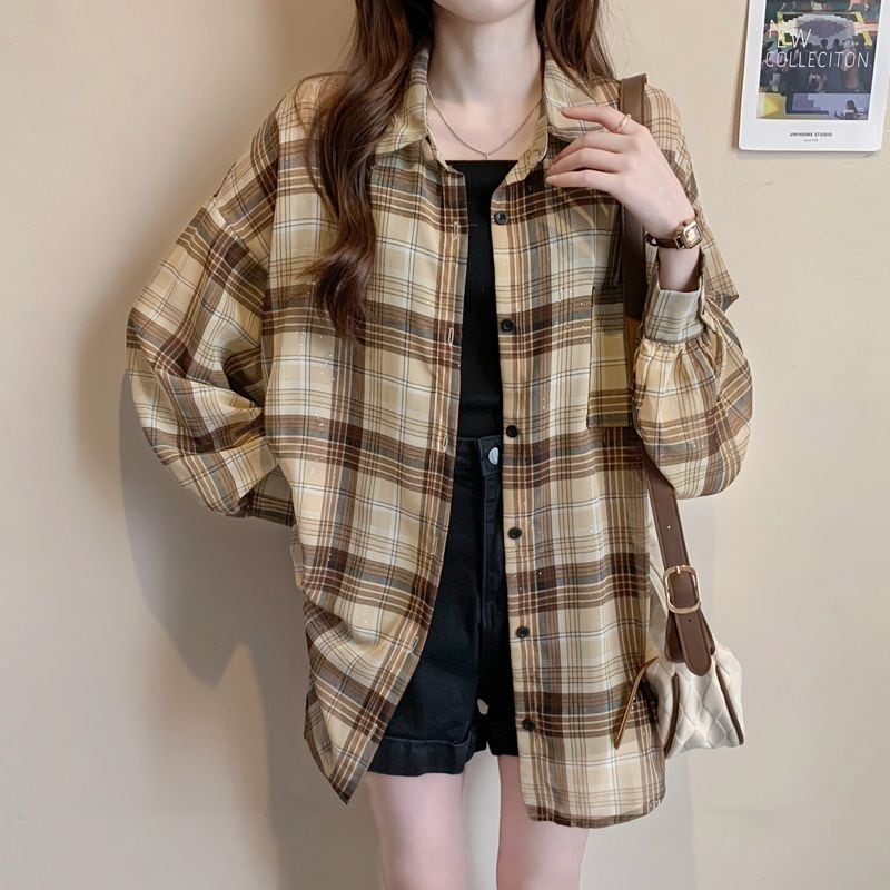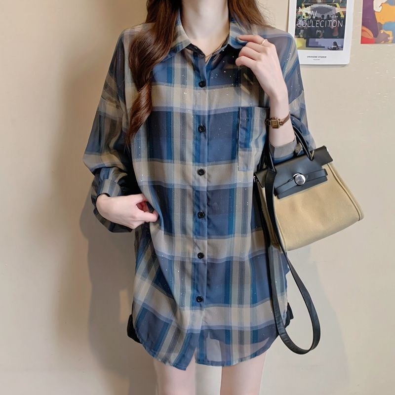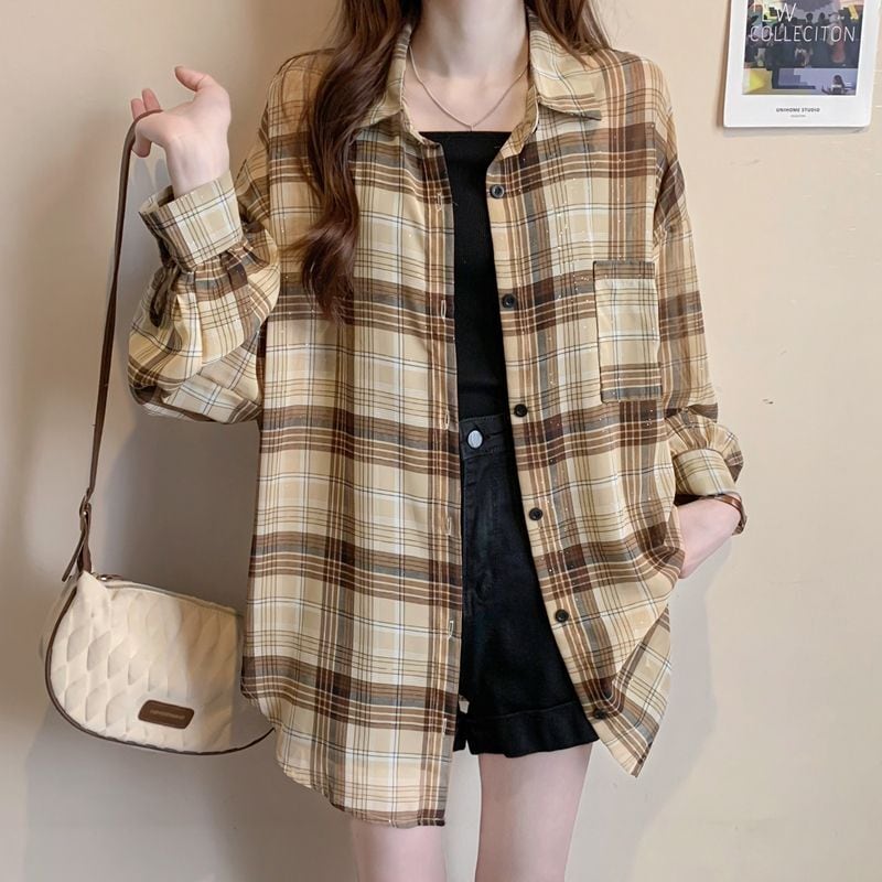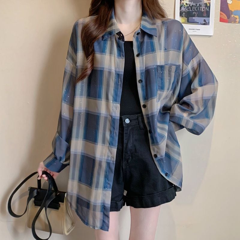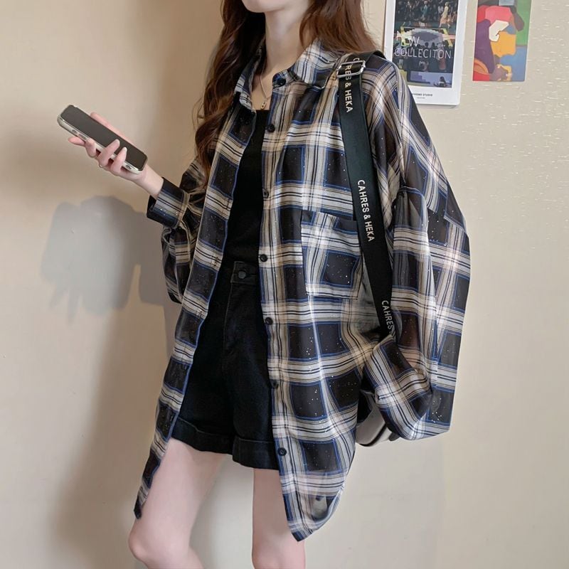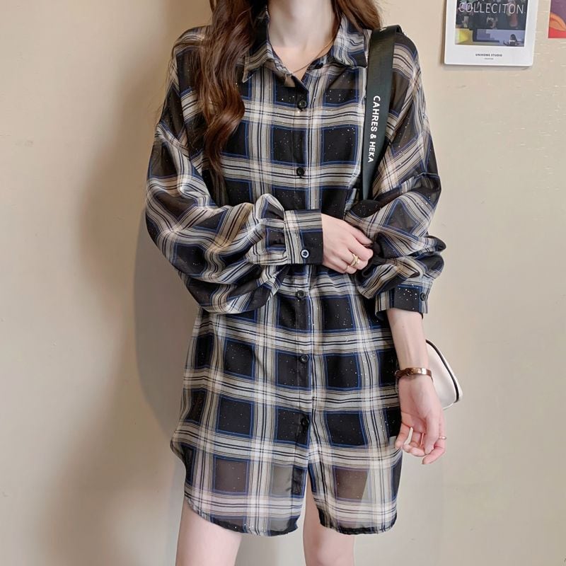 定番シンプル チェック柄 透け感 日焼け対策 全3色 シャツ <ins-8544>
