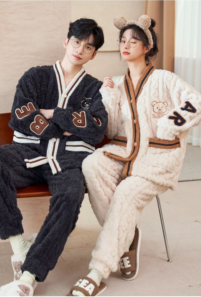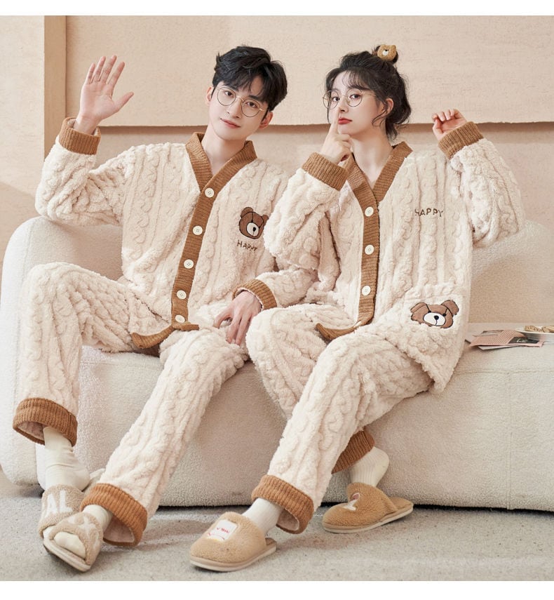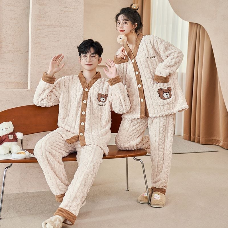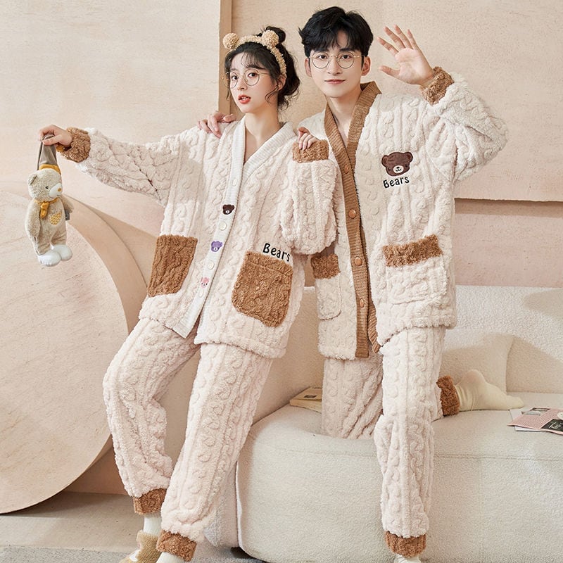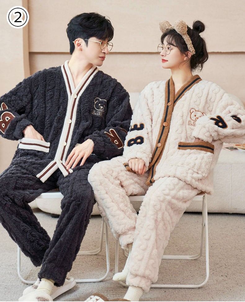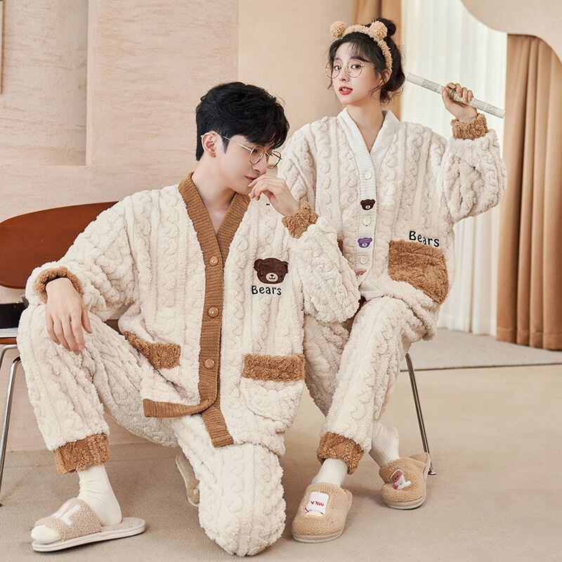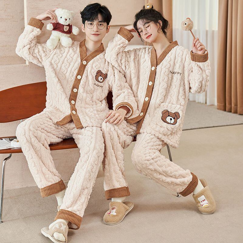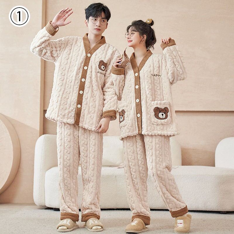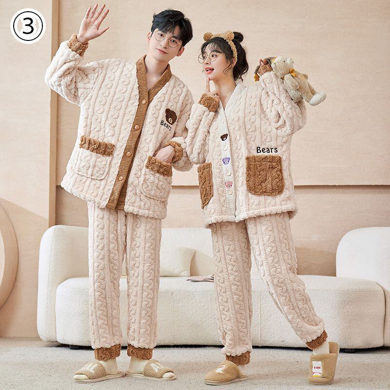 定番シンプル 肌触り抜群 求めてたデザイン 3種選択 サンゴフリース カップル パジャマ E-9775