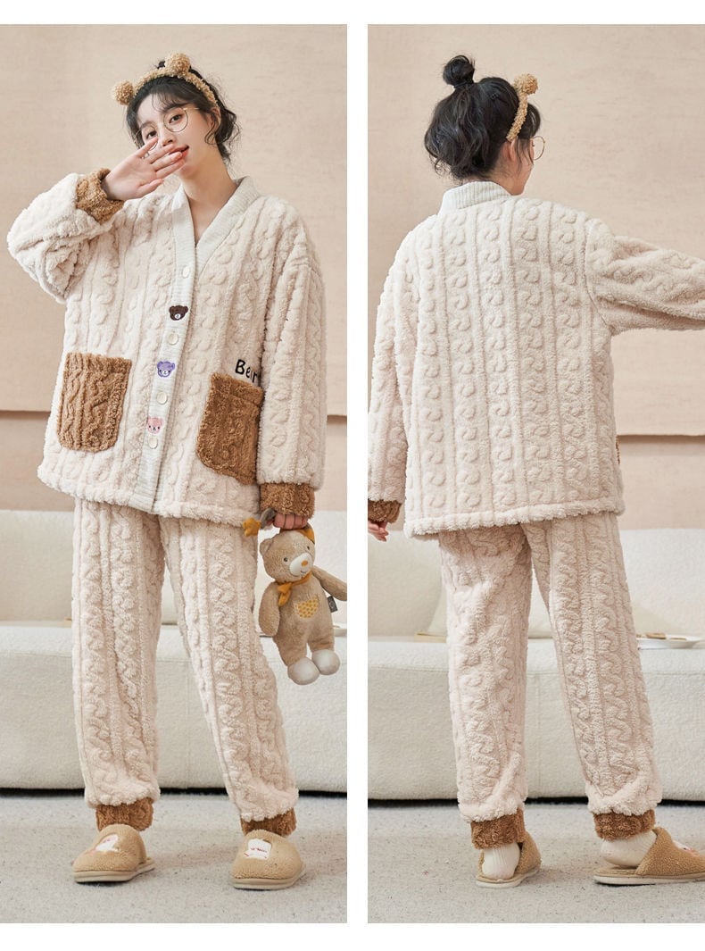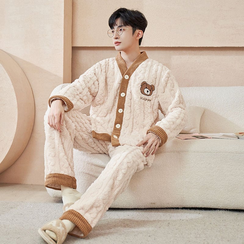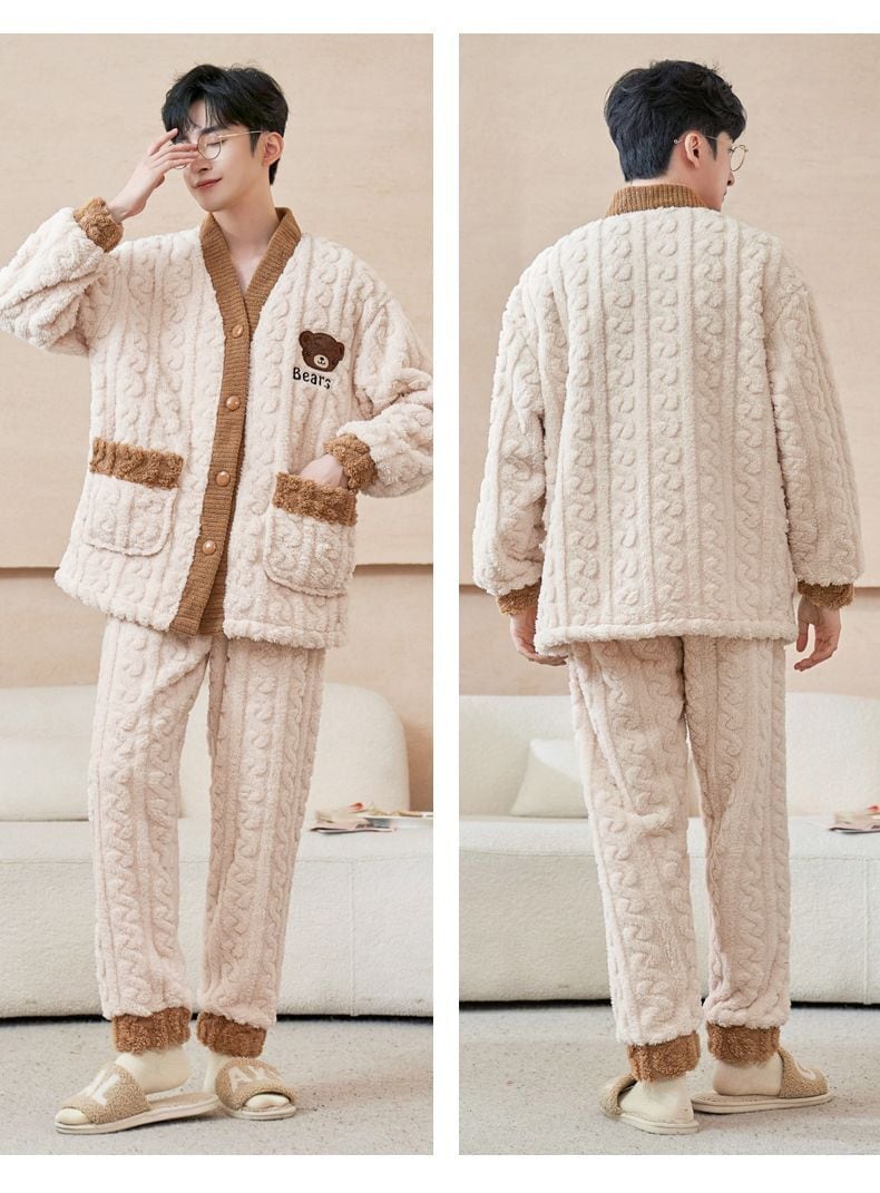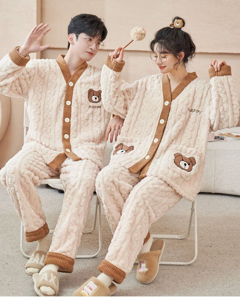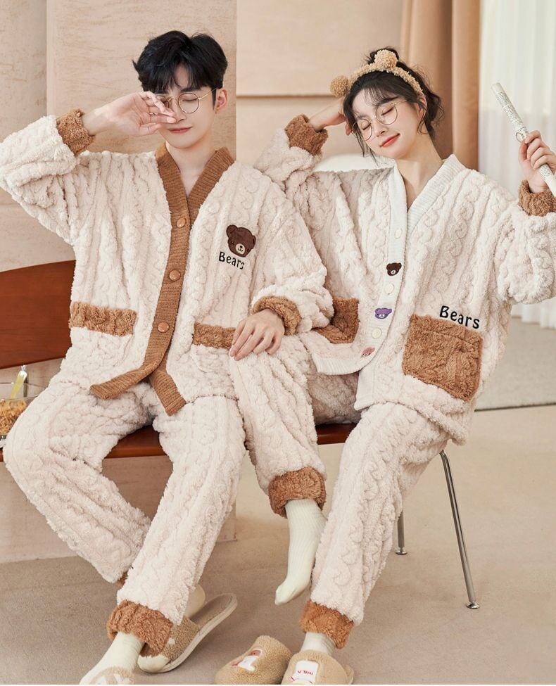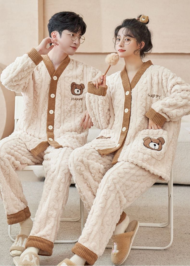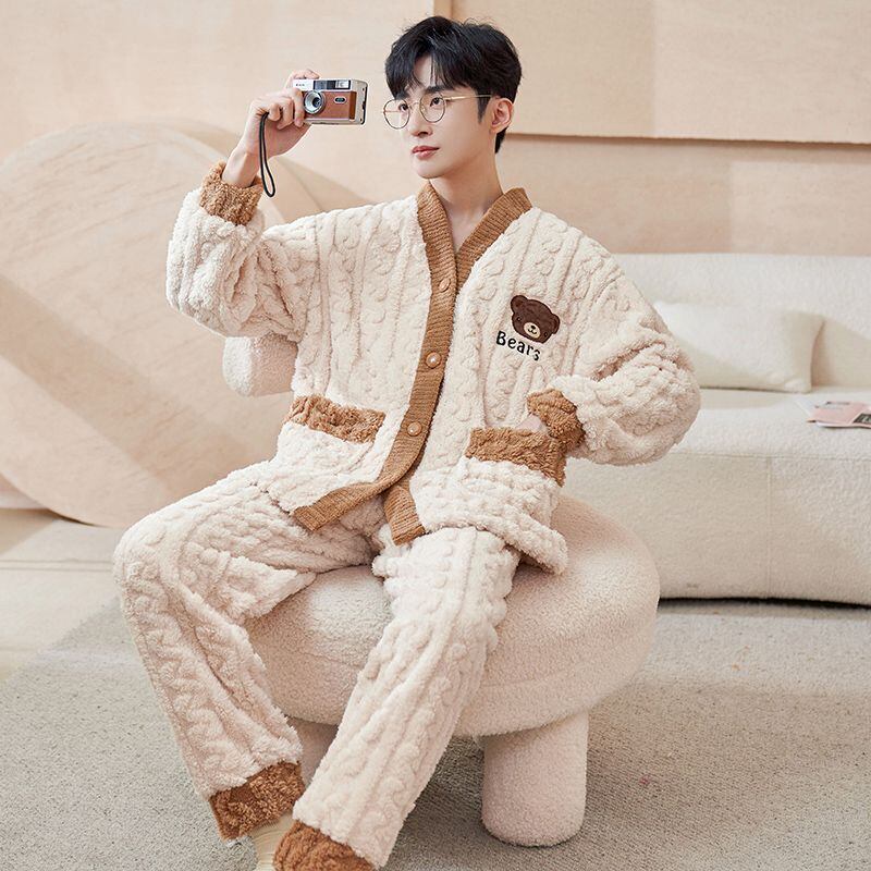 定番シンプル 肌触り抜群 求めてたデザイン 3種選択 サンゴフリース カップル パジャマ E-9775