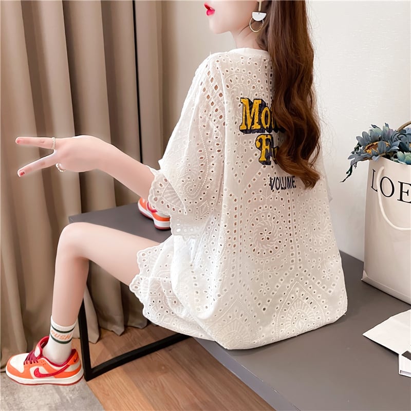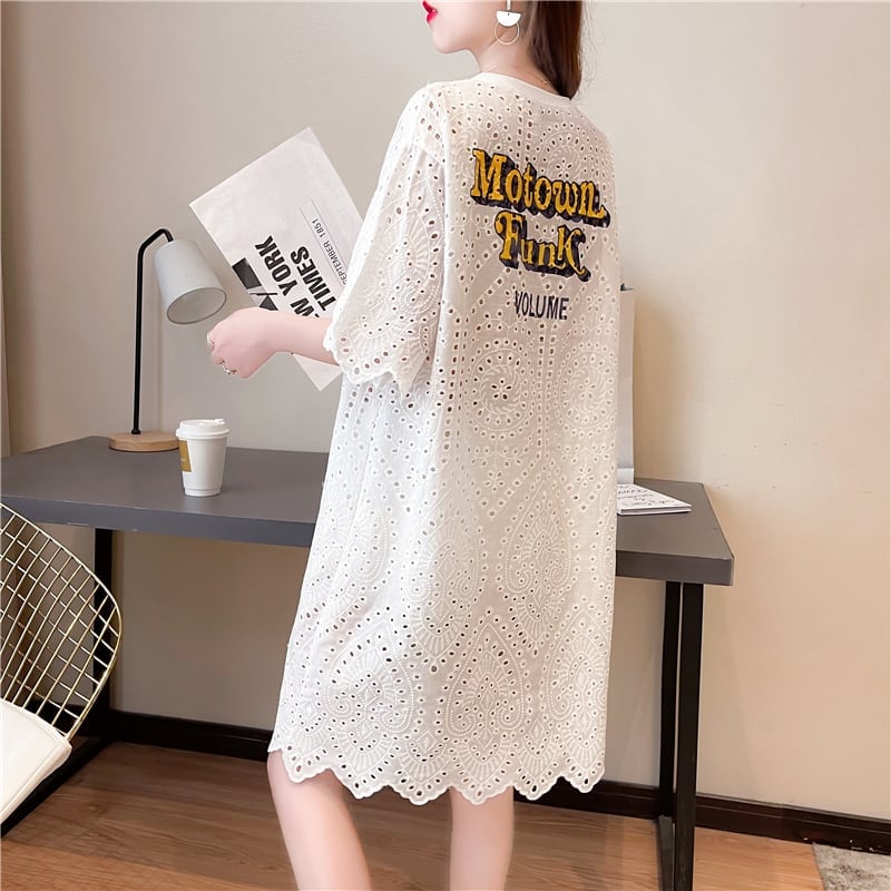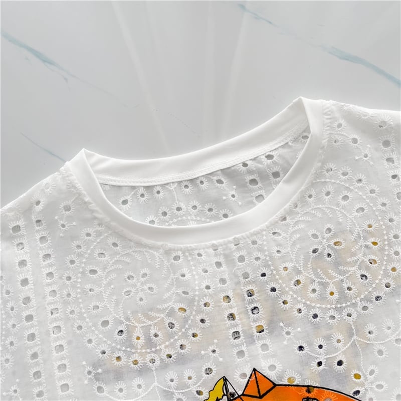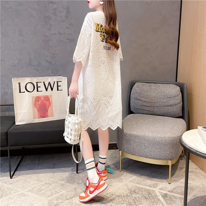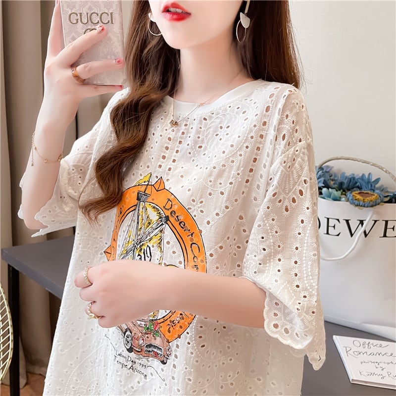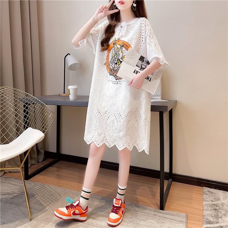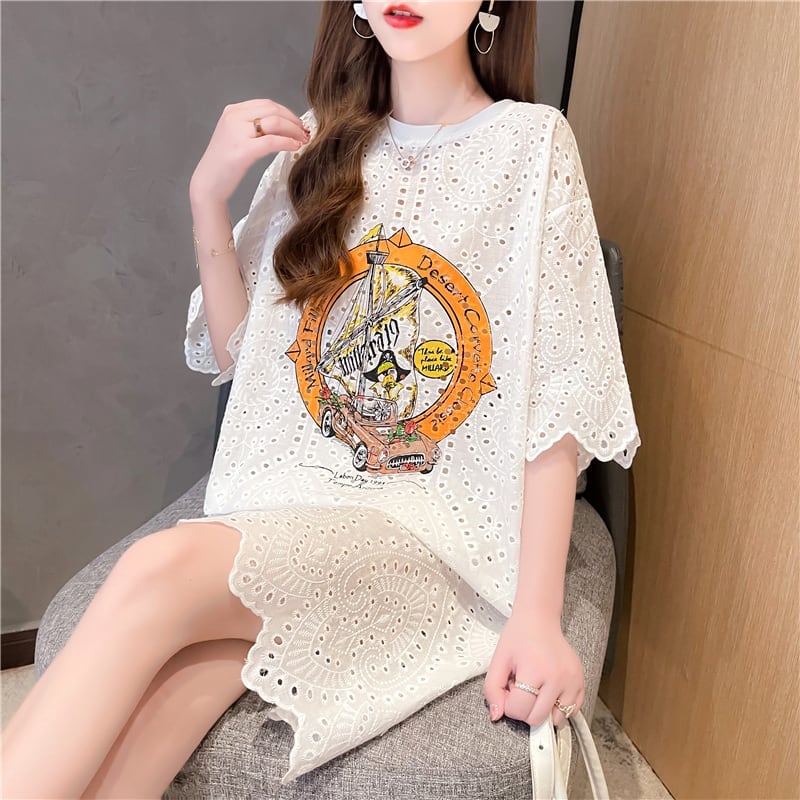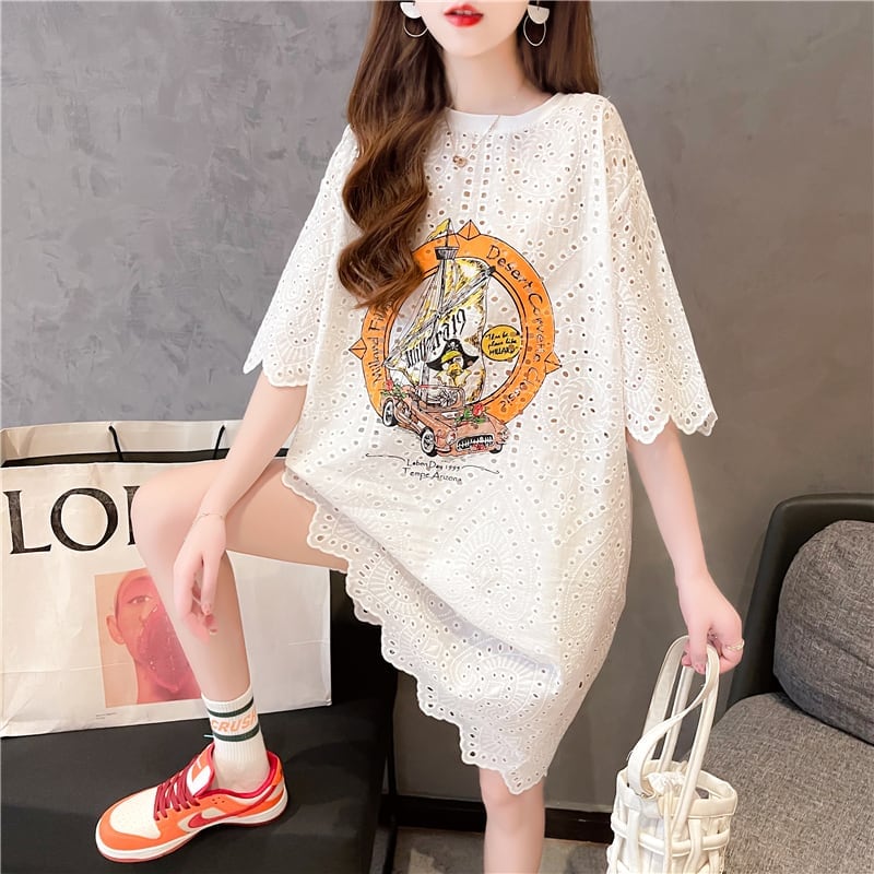 新作 プリント レースルーズ ゆったりロングTシャツins-3025