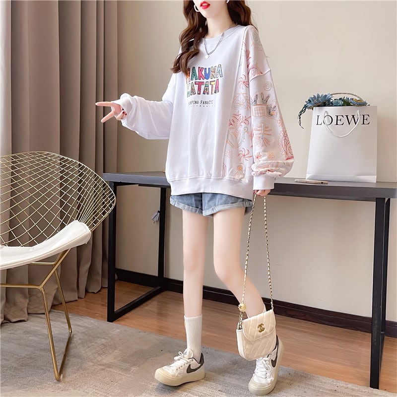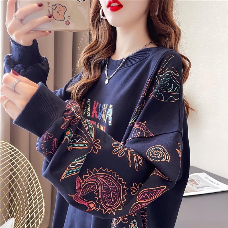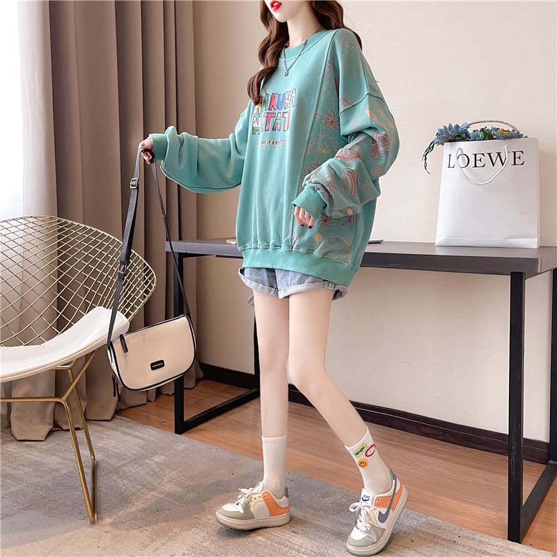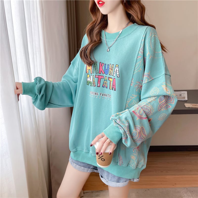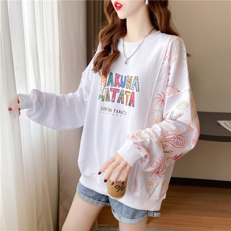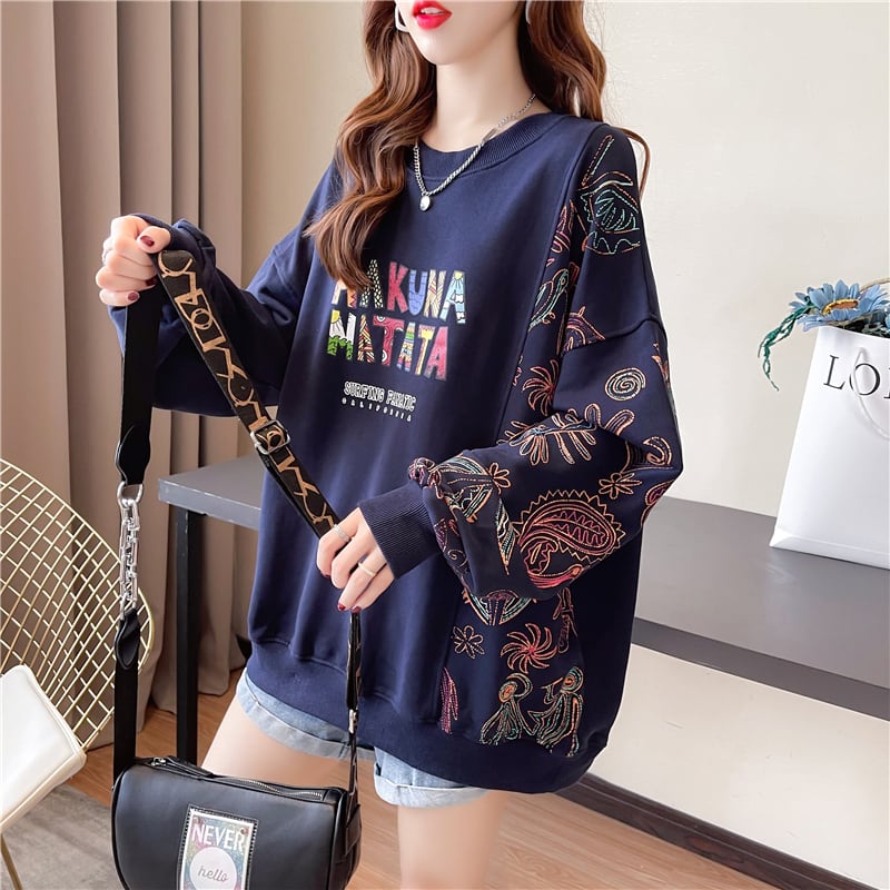 新作 花柄 切り替え 英字ロゴ ゆったりスウェット 全3色トップスins-4817