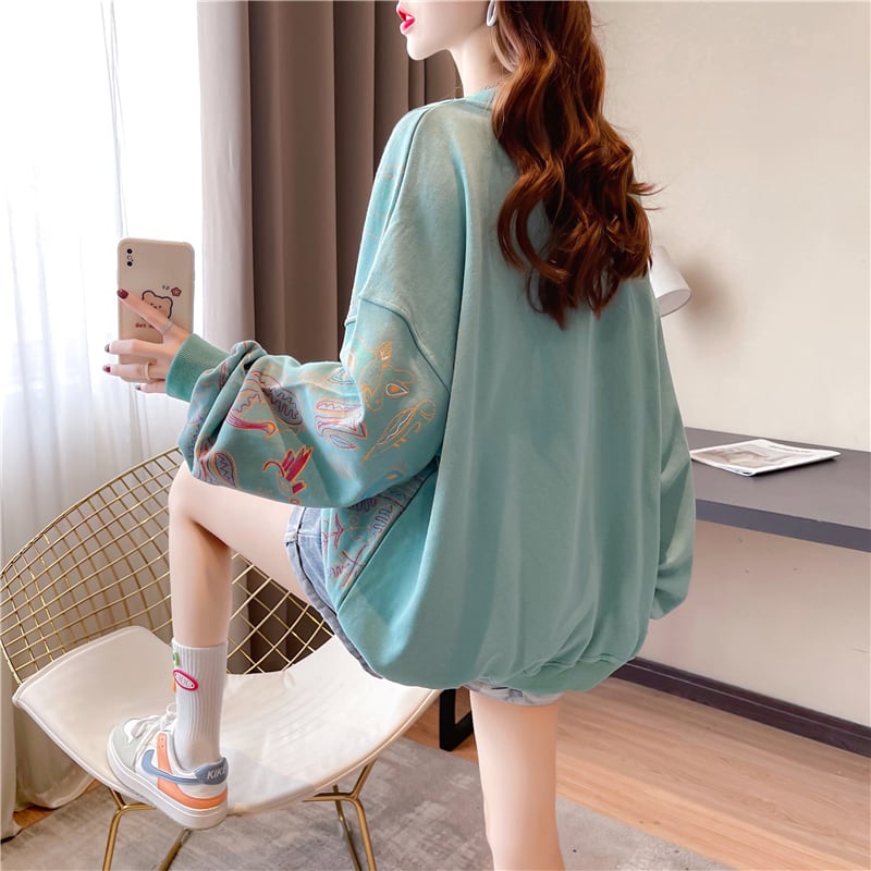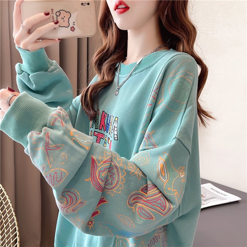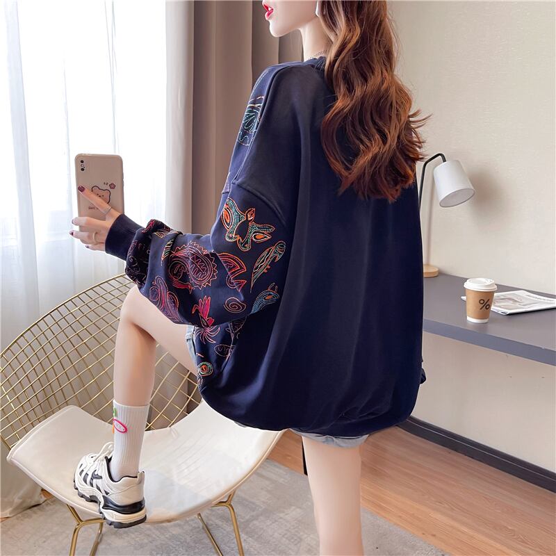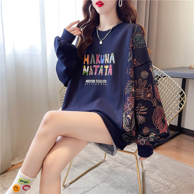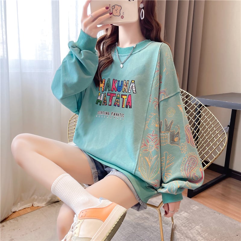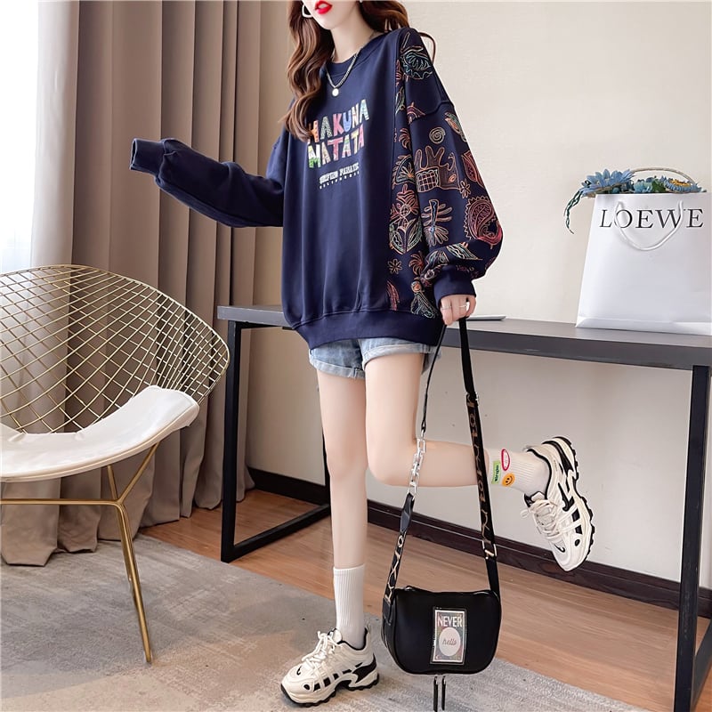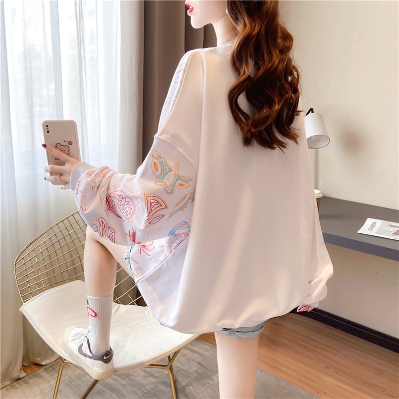 新作 花柄 切り替え 英字ロゴ ゆったりスウェット 全3色トップスins-4817