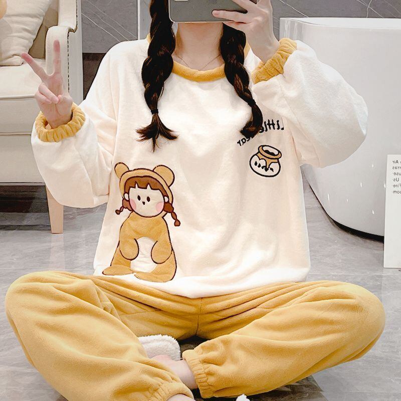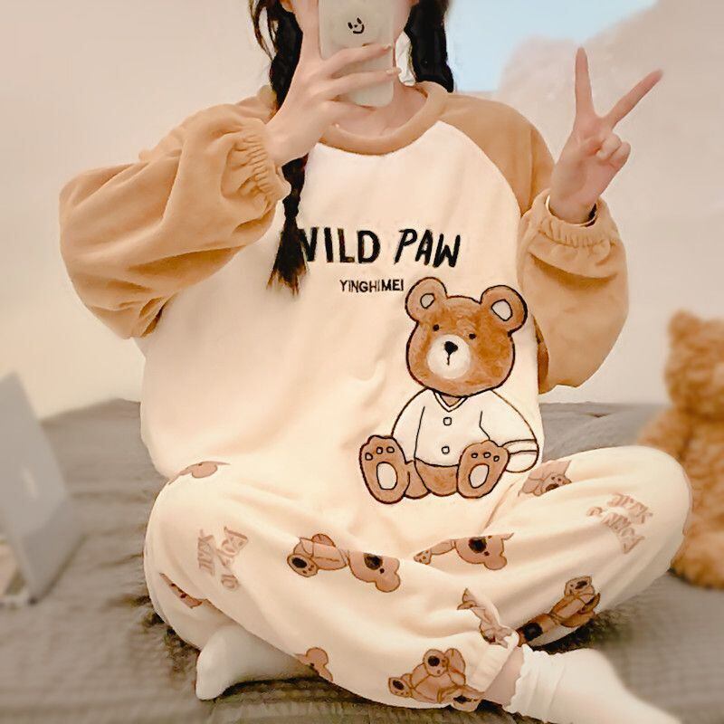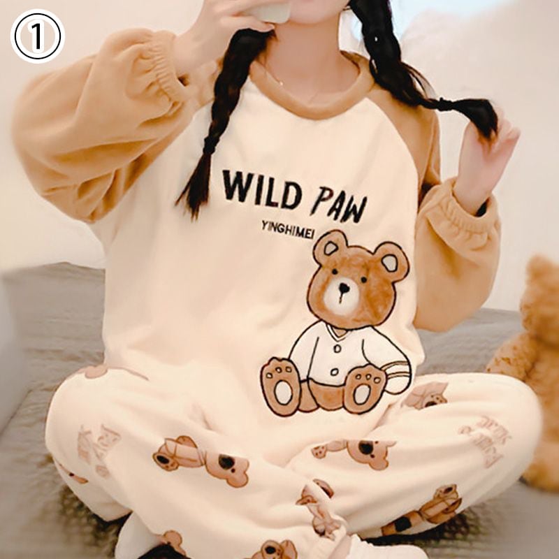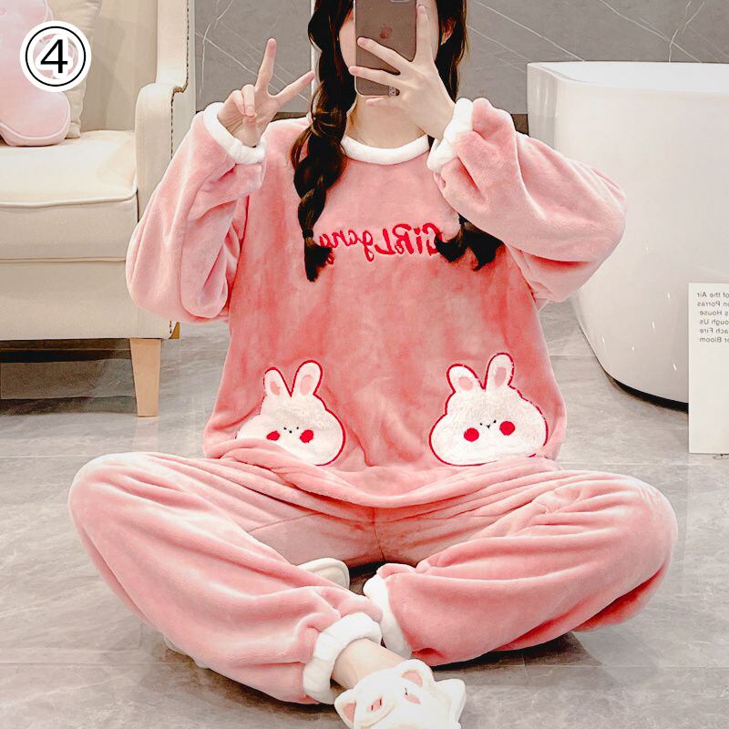 新商品 デザイン性抜群 大人可愛い 着心地良い 4種選択 コーラルベルベットパジャマ トップス+パンツセット E-9765