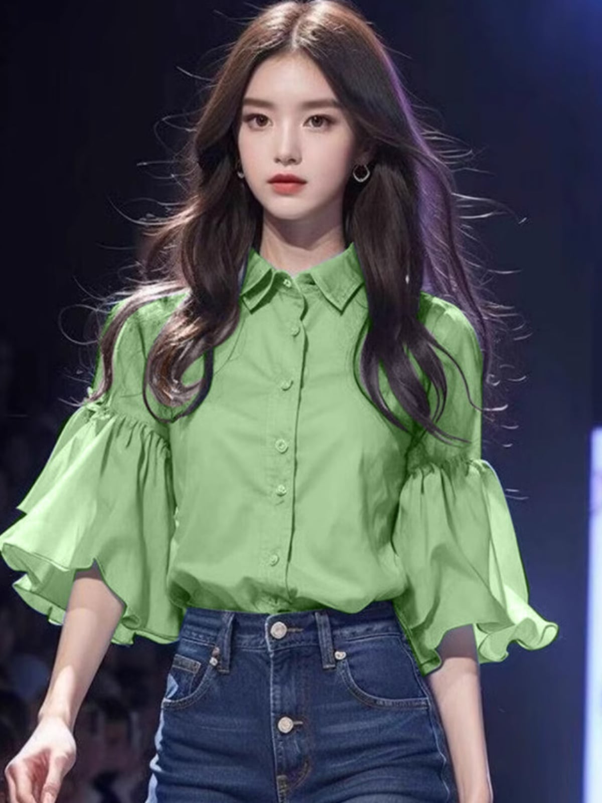 新商品 上質 スウィート フレアスリーブ シャツ <ins-8174>