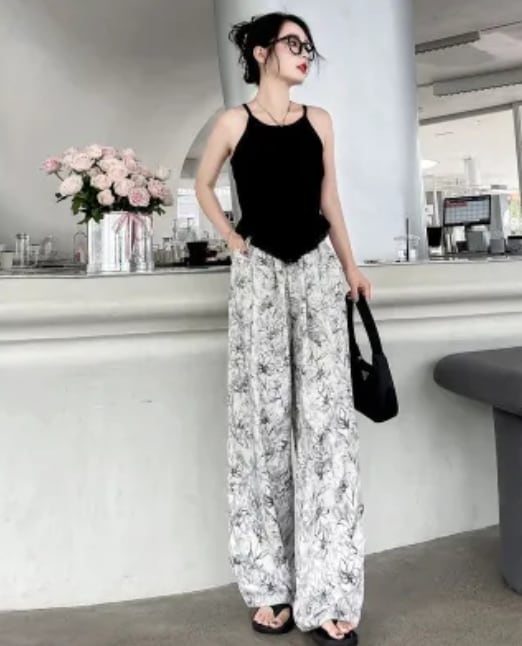 新商品 着回し力抜群 絶対欲しい アバンギャルド 花柄 パンツ <ins-8214>