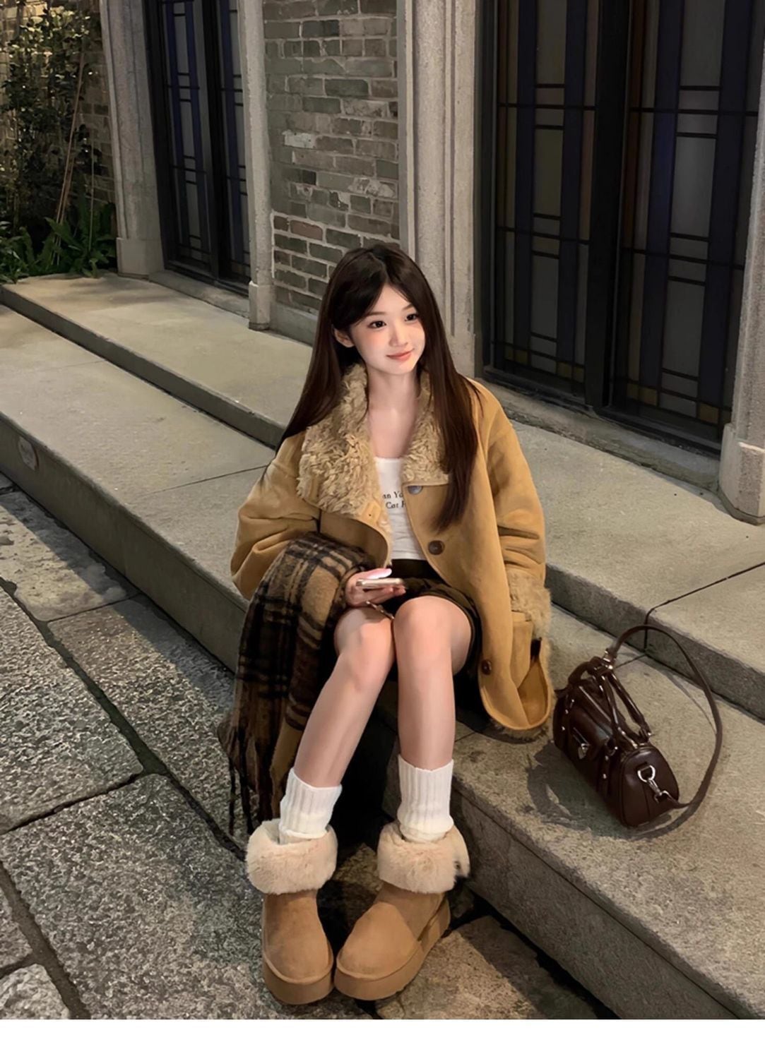 早い者勝ち オシャレデザイン プラスベルベット ムートンコートE-12379