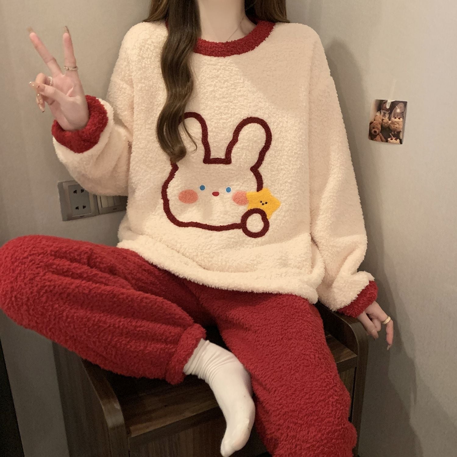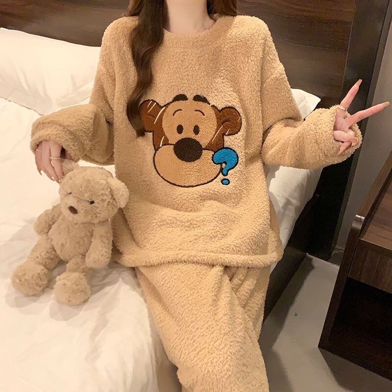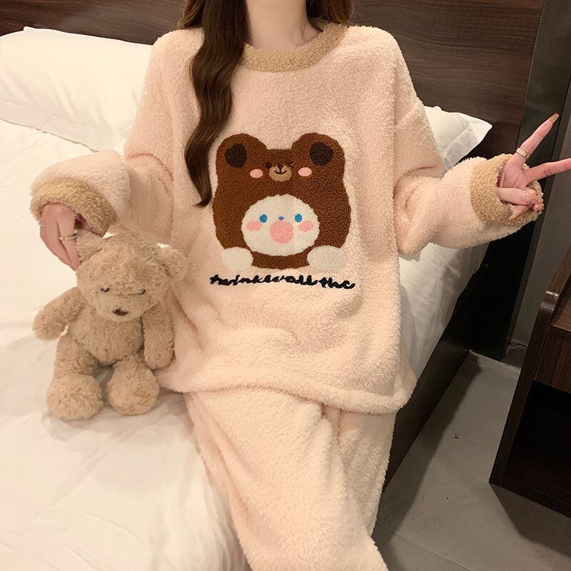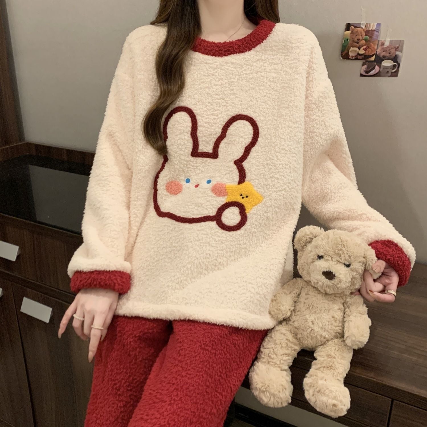 柔らかな肌触りで着心地も楽ちん!モコモコ ルームウェア 全3色 パジャマ 上下セットE-10337