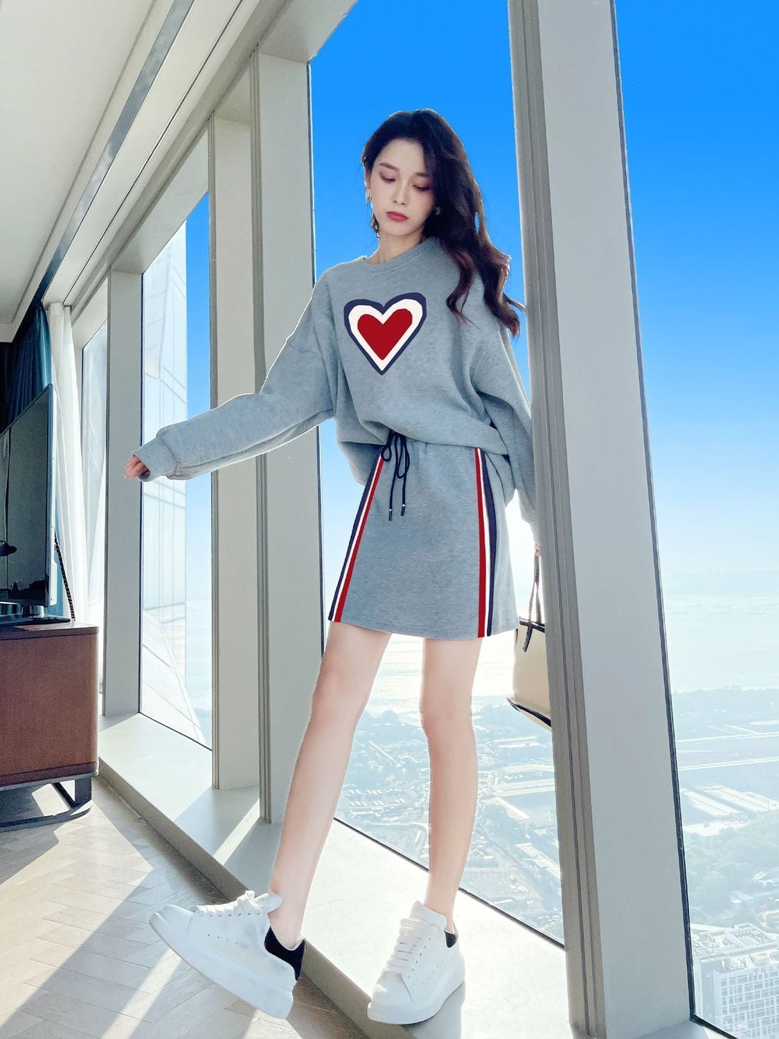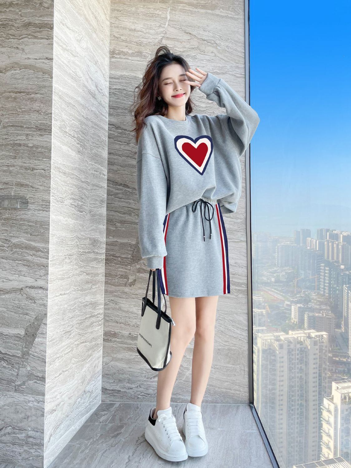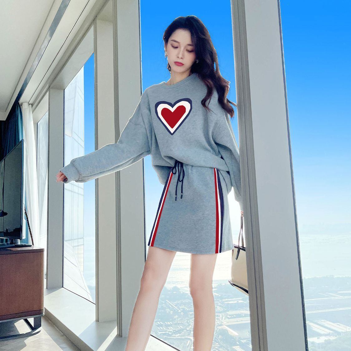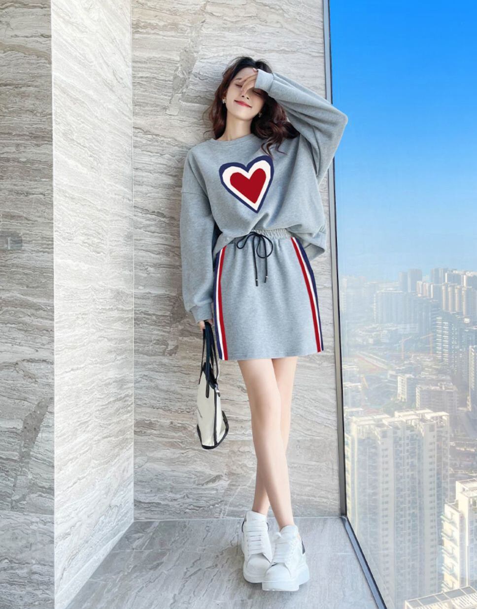 流行新作 カジュアル 目を奪われる トップスⅹミニスカートセットアップE-9156
