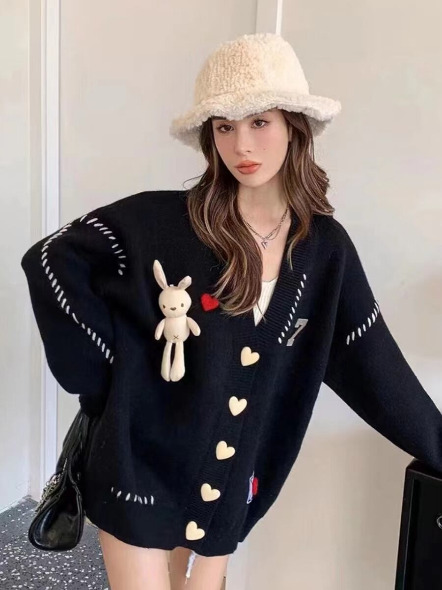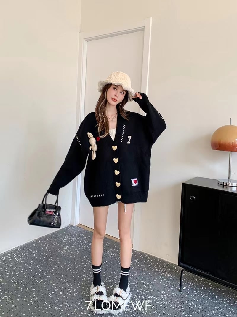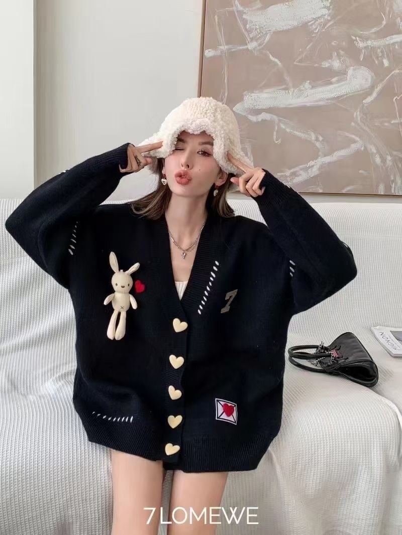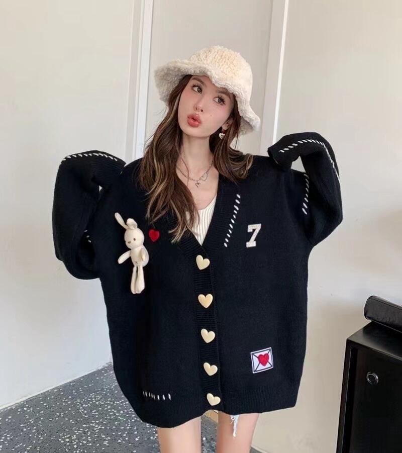 流行新作 デザイン性抜群 目を奪われる Vネック 3色選択 ニットトップスE-9608