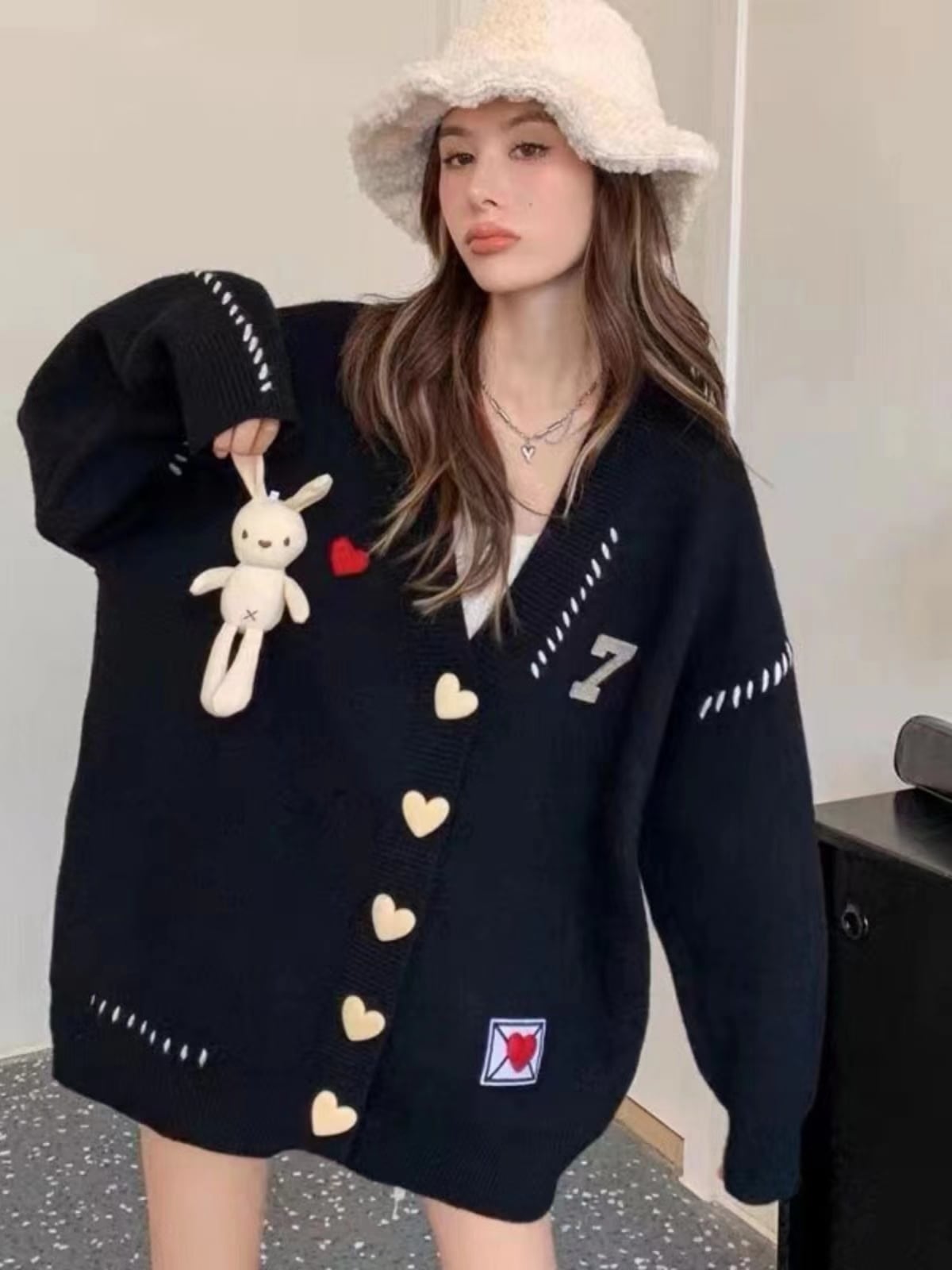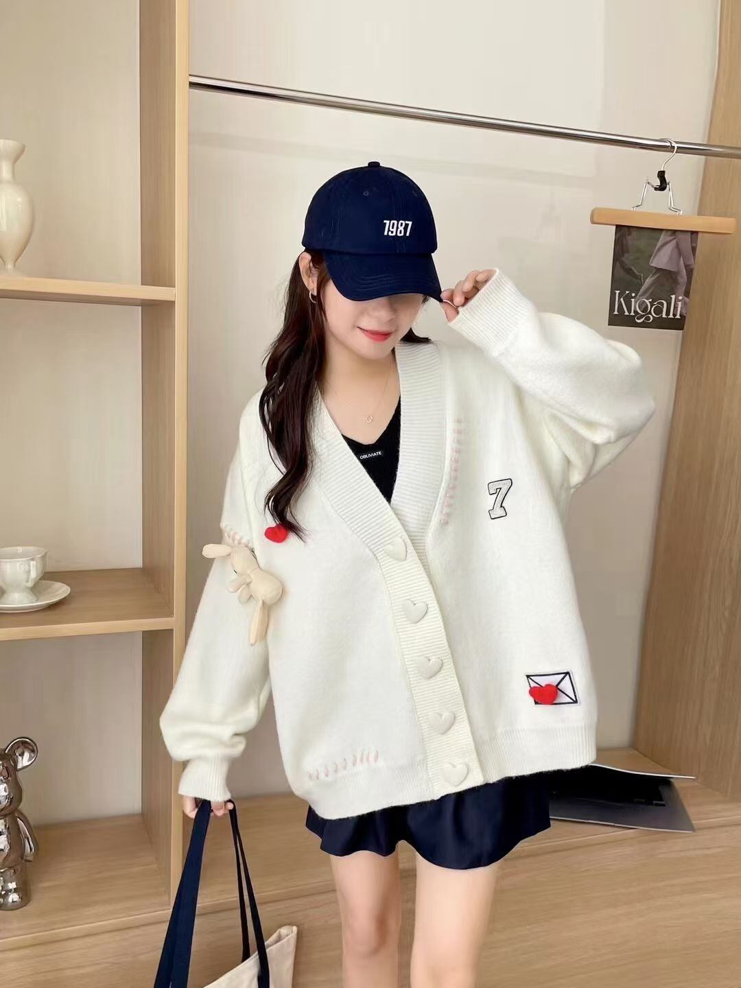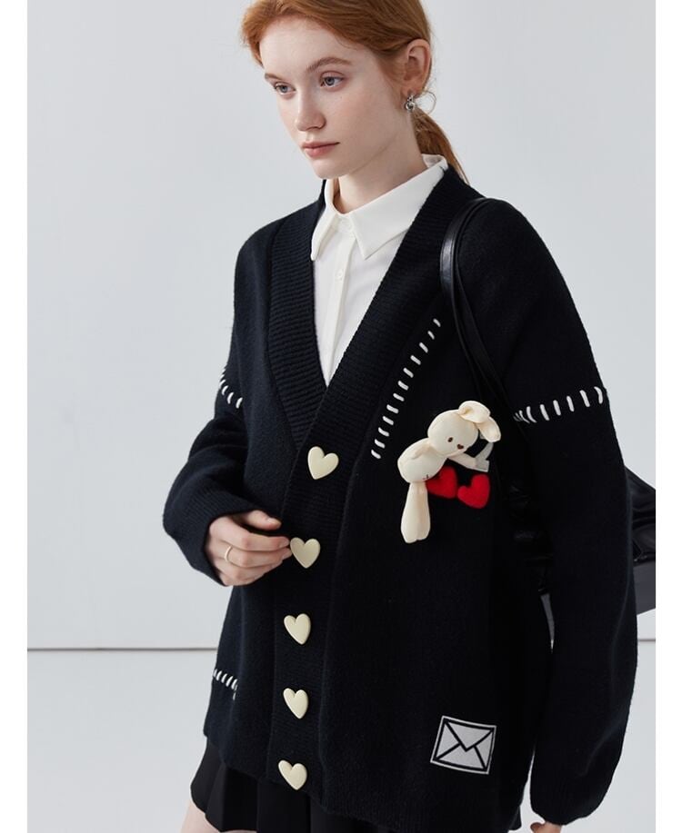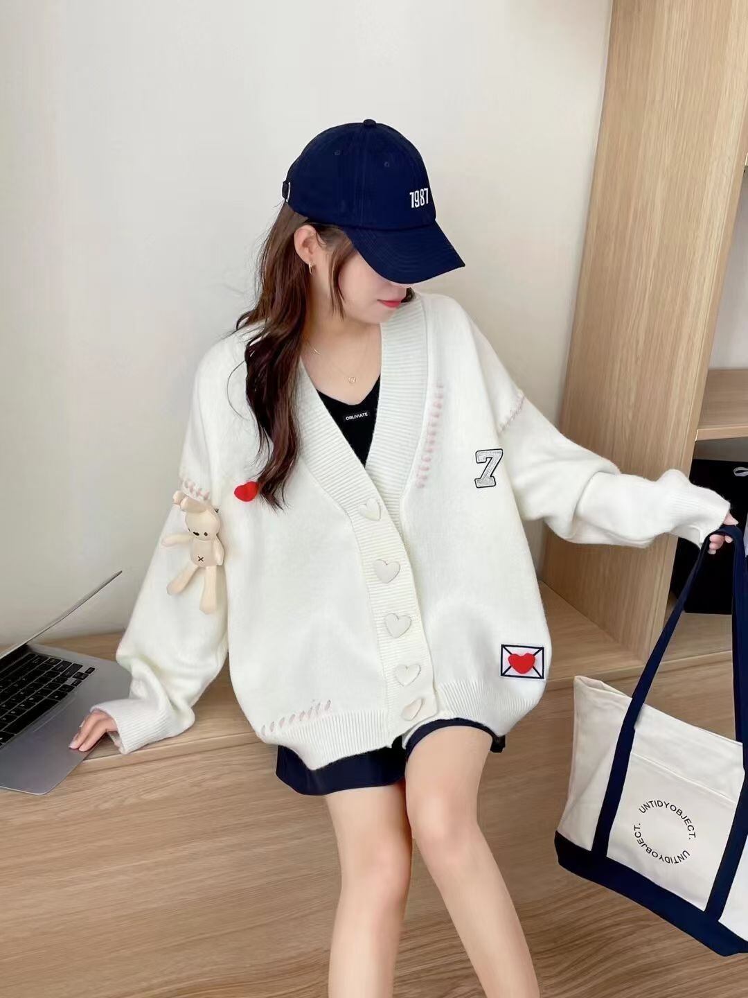 流行新作 デザイン性抜群 目を奪われる Vネック 3色選択 ニットトップスE-9608