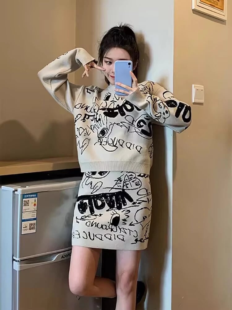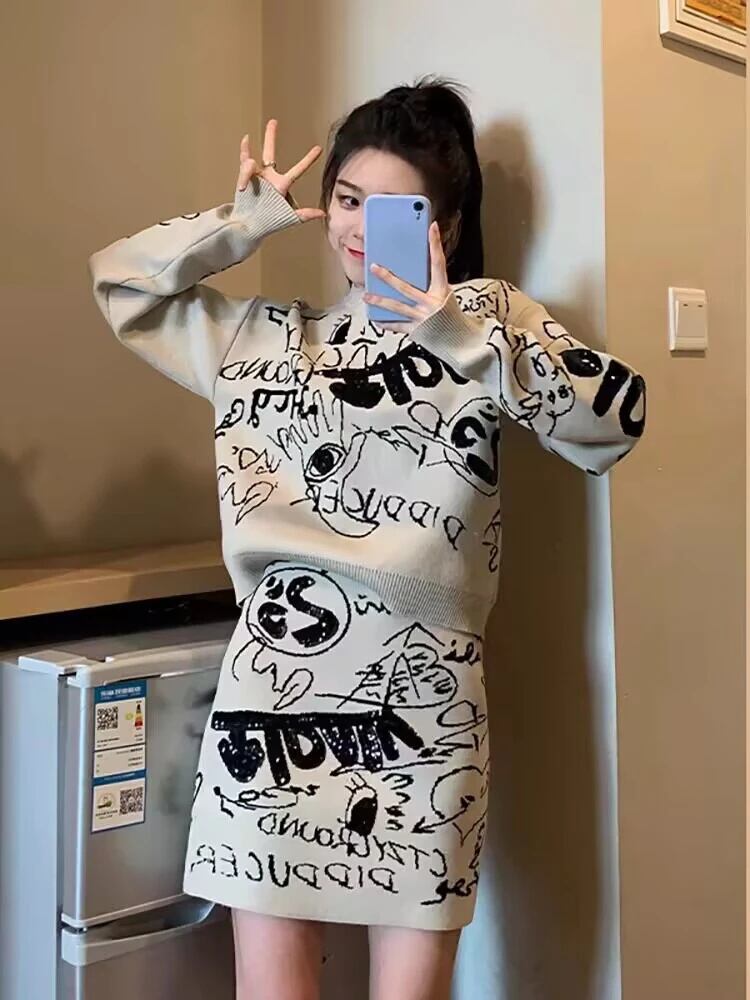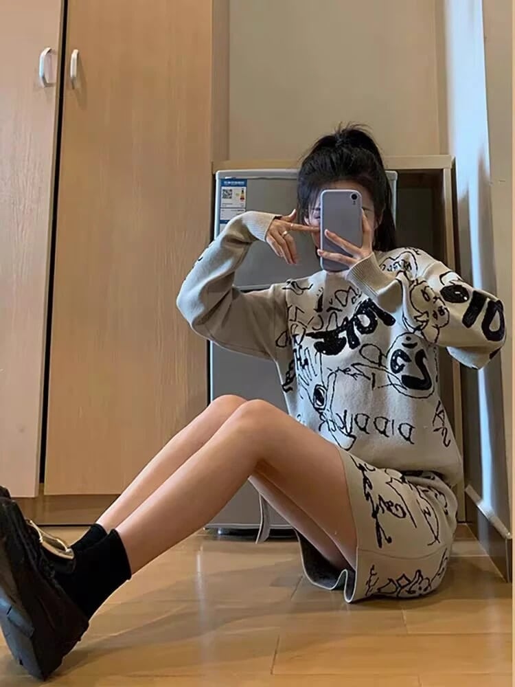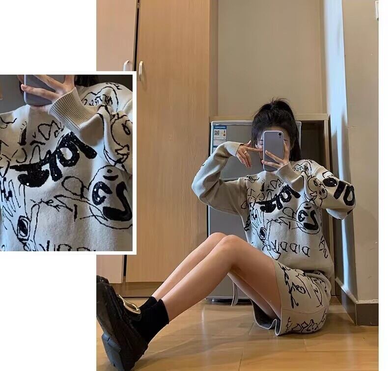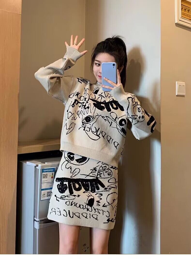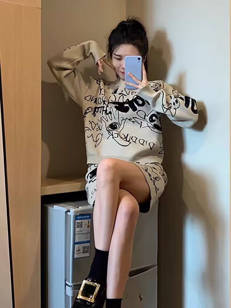 目を奪われる カジュアル トップスⅹミニスカートセットアップE-10869