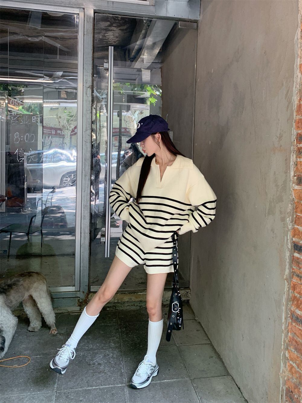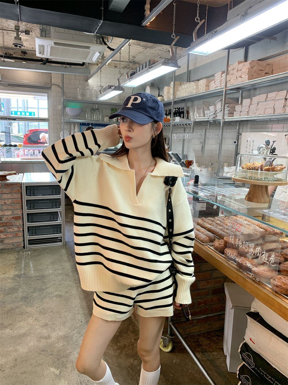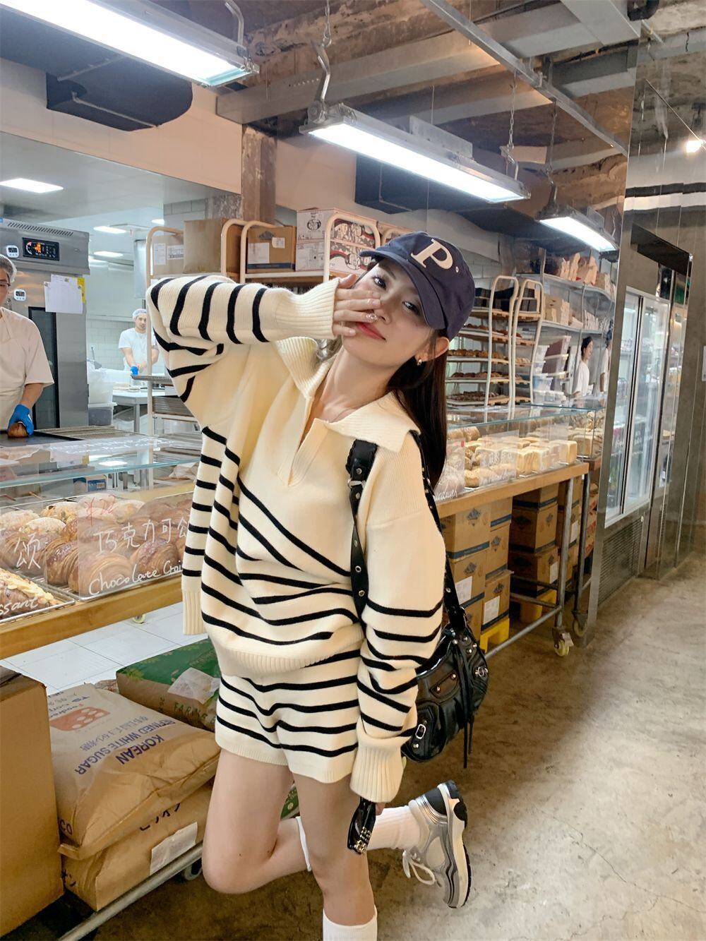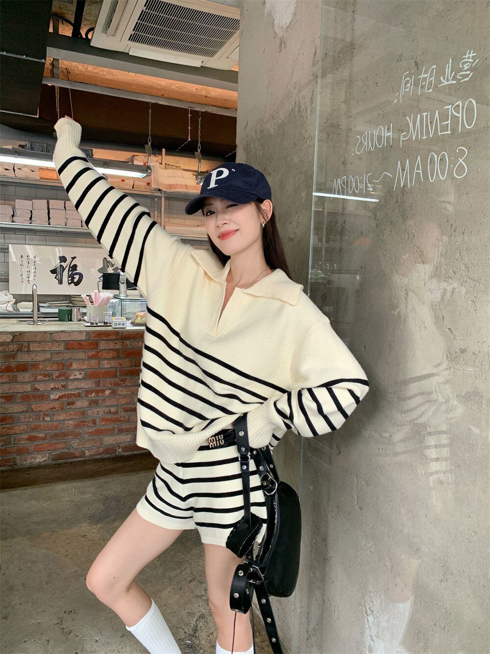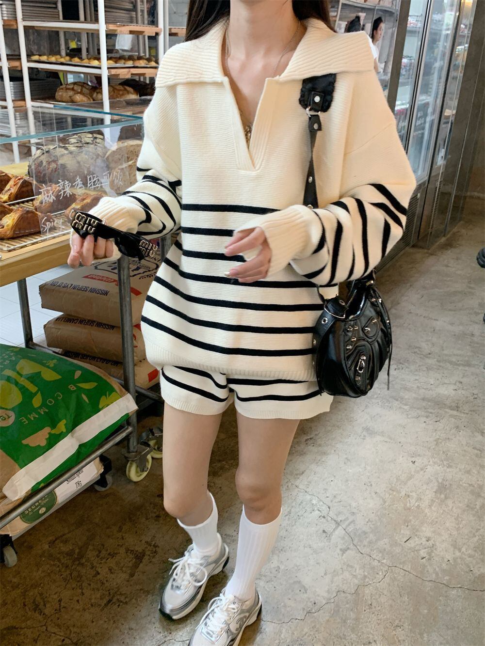 目を奪われる 切り替え スタイルアップ ジャケット+ショートパンツ セットアップE-10916