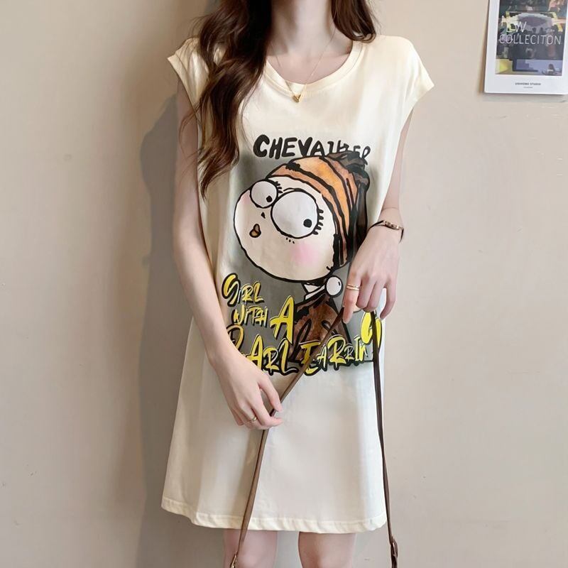 真夏も快適 着心地良い ファッション感満々 プリント全4色 ノースリーブ Tシャツ カットソーE-9161