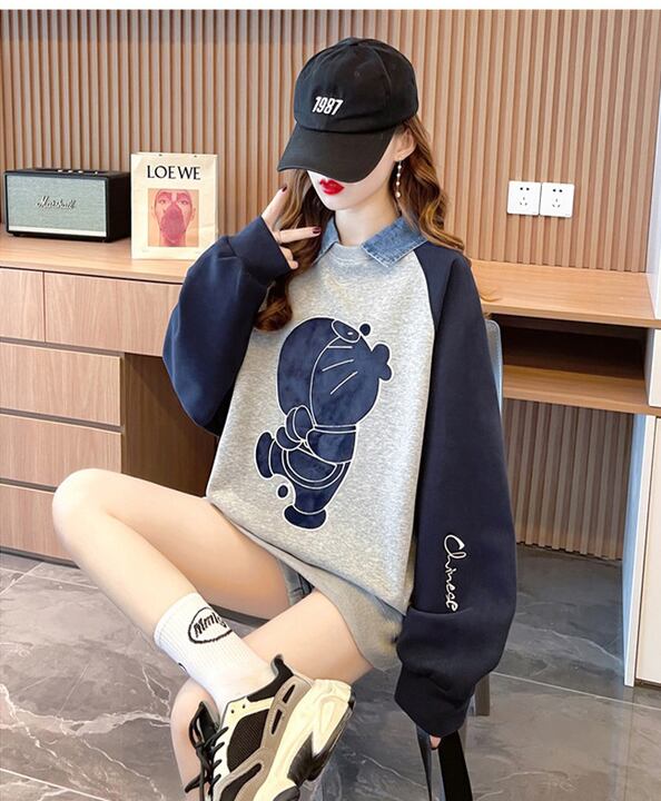 着回し力抜群 レイヤード風 売り切れ必至 切り替え 3色選択 パーカーE-9428