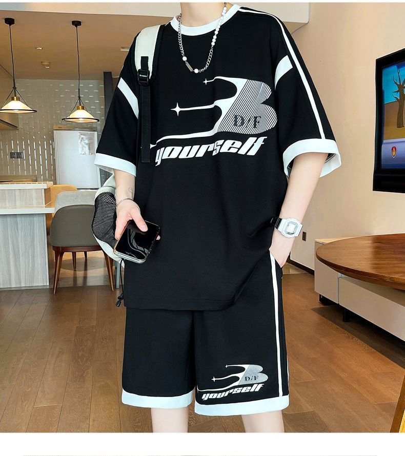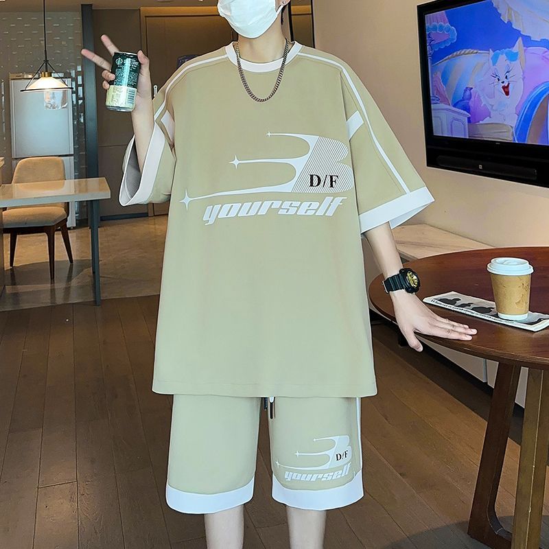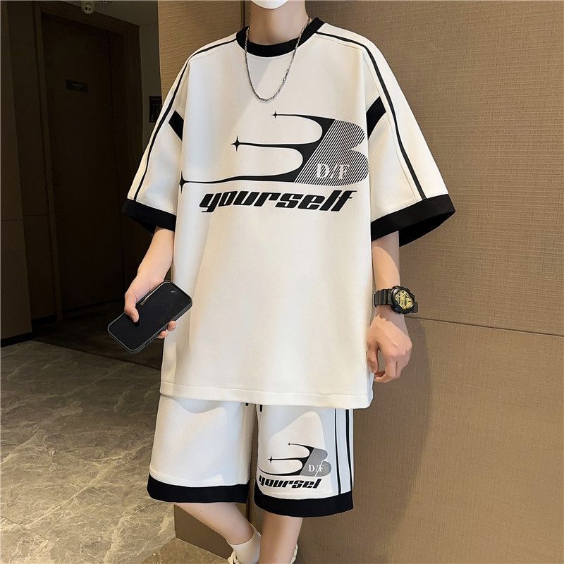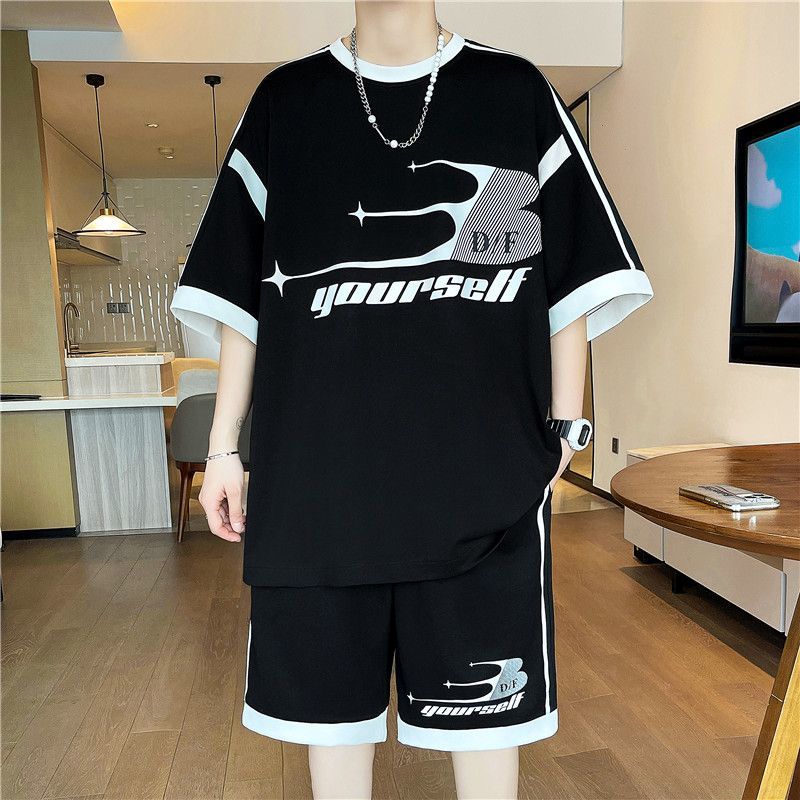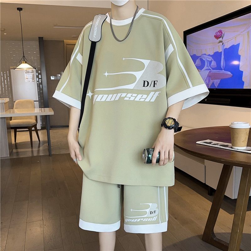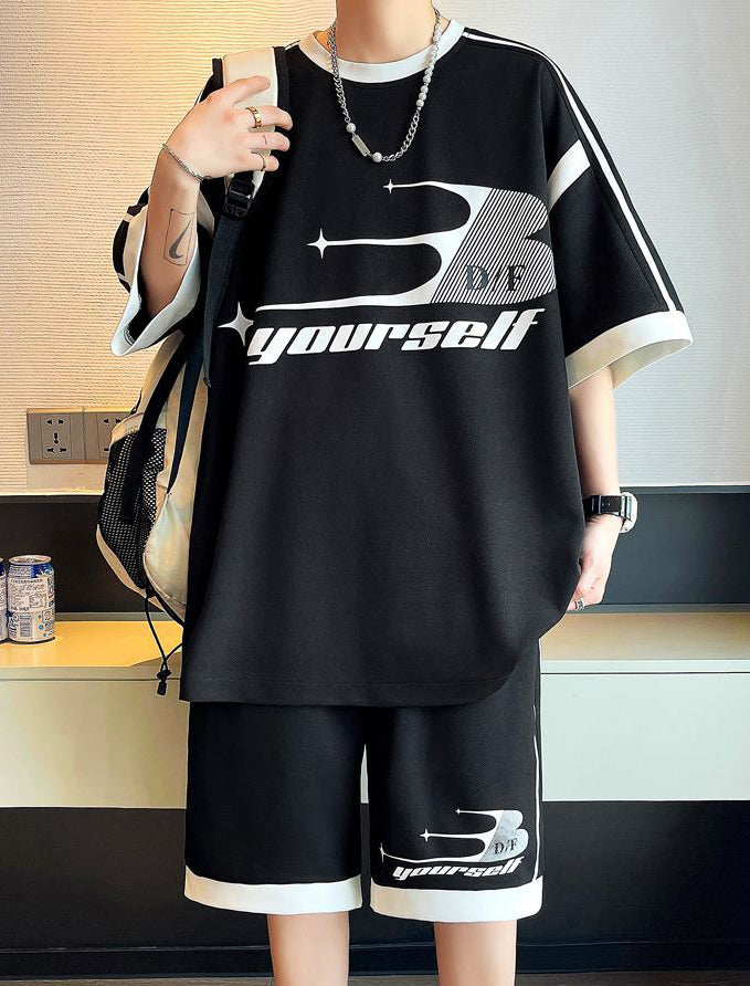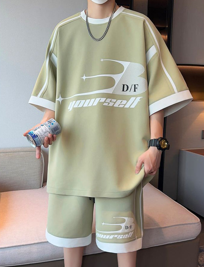 絶対流行 切り替え プリント 半袖Tシャツⅹパンツセット 全3色-A896
