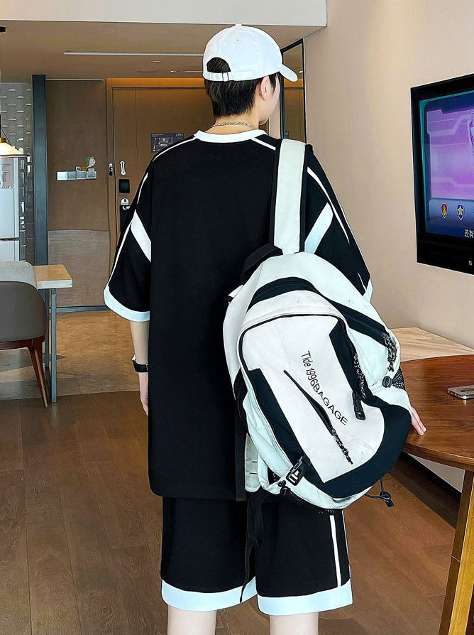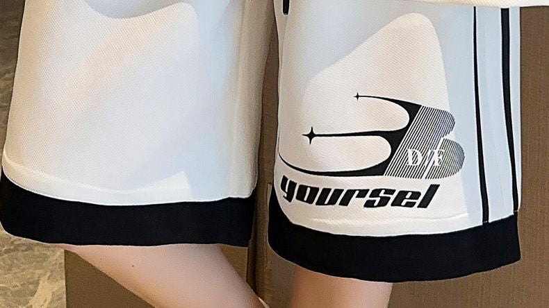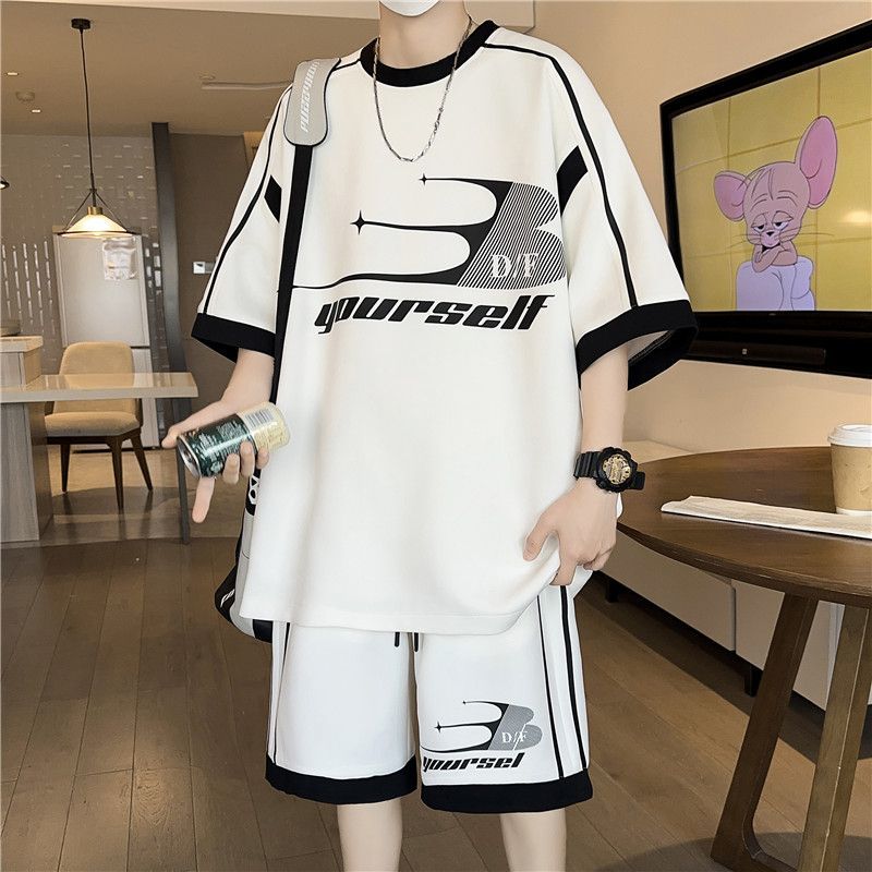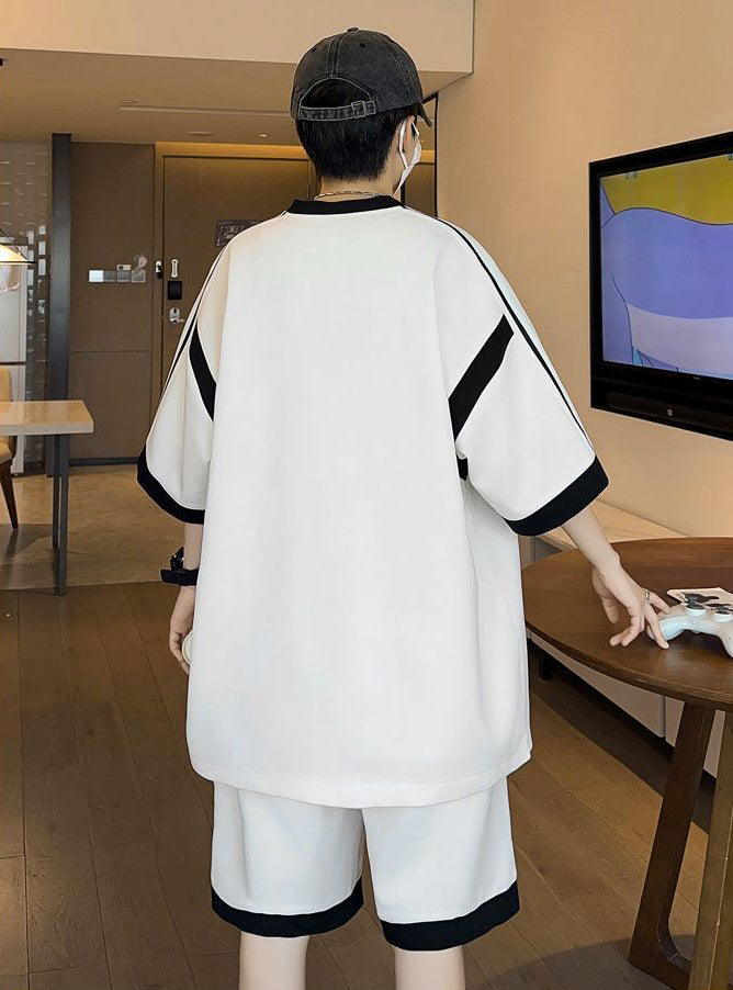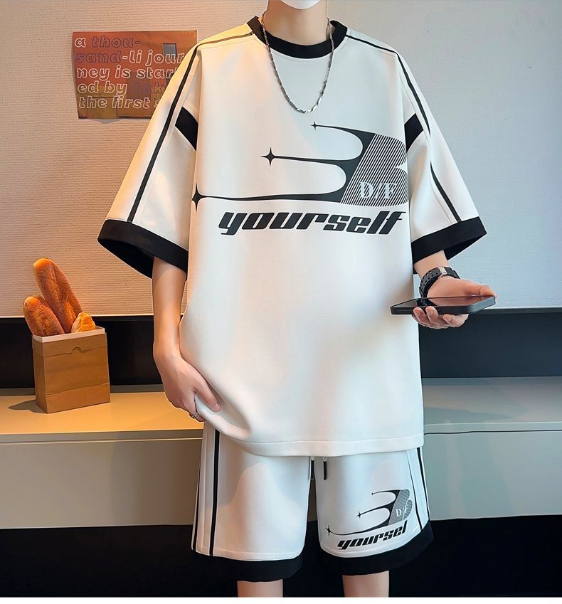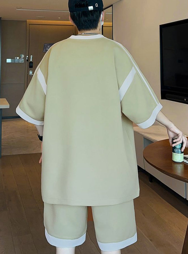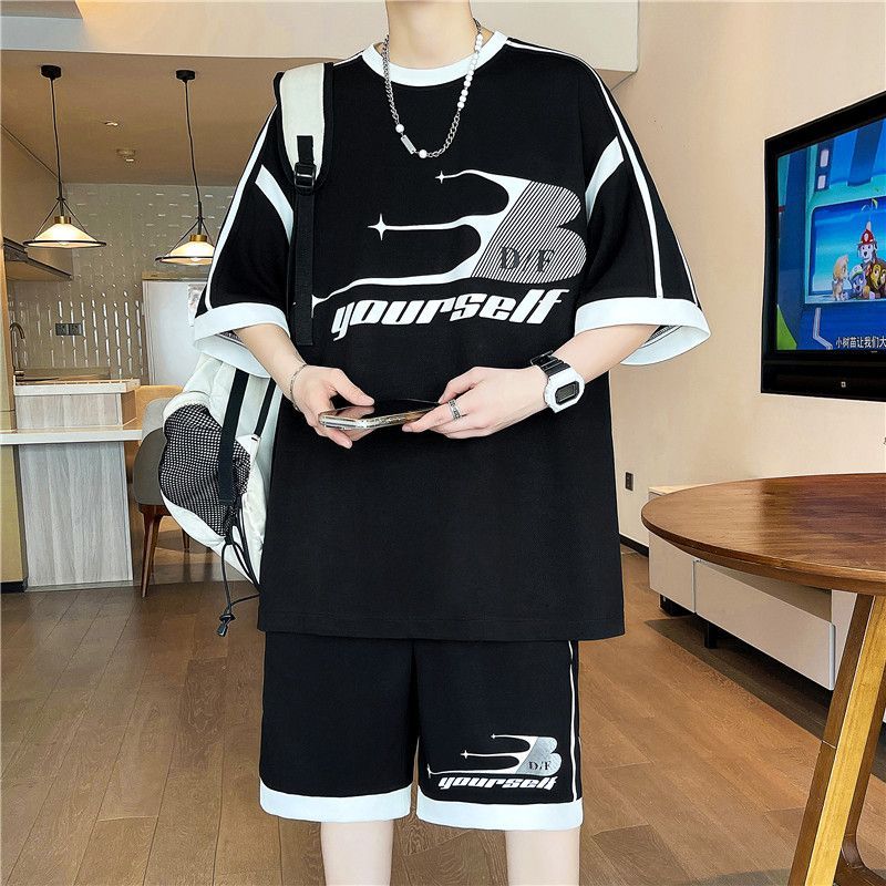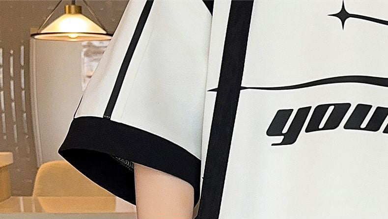 絶対流行 切り替え プリント 半袖Tシャツⅹパンツセット 全3色-A896