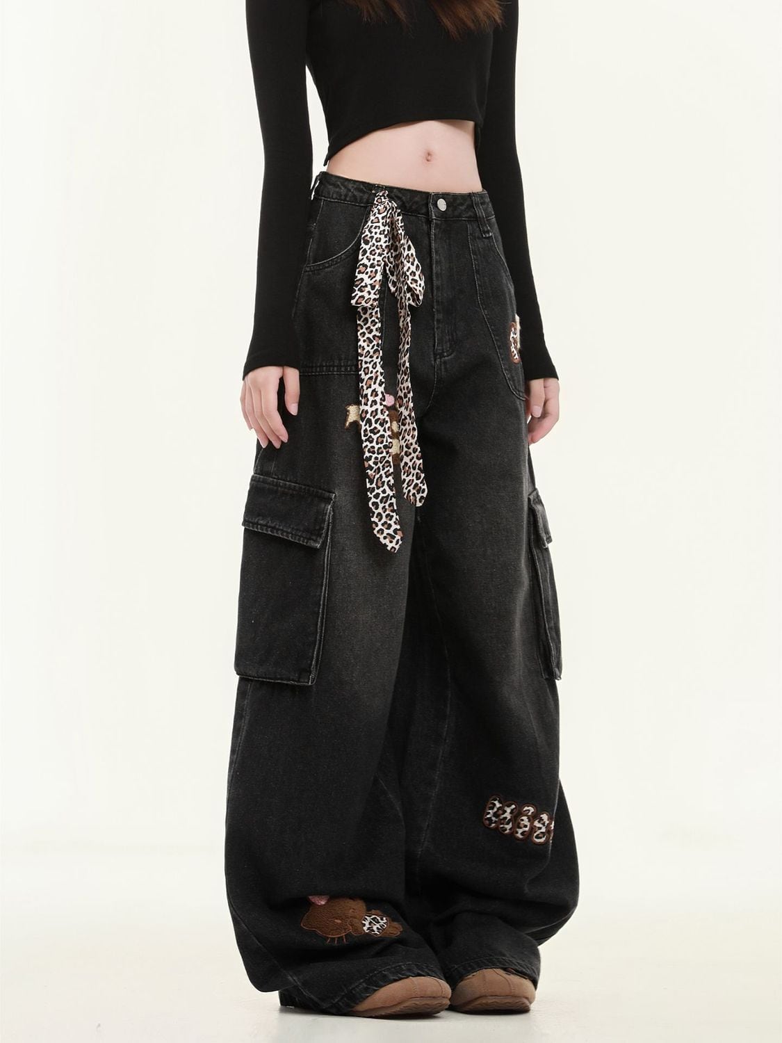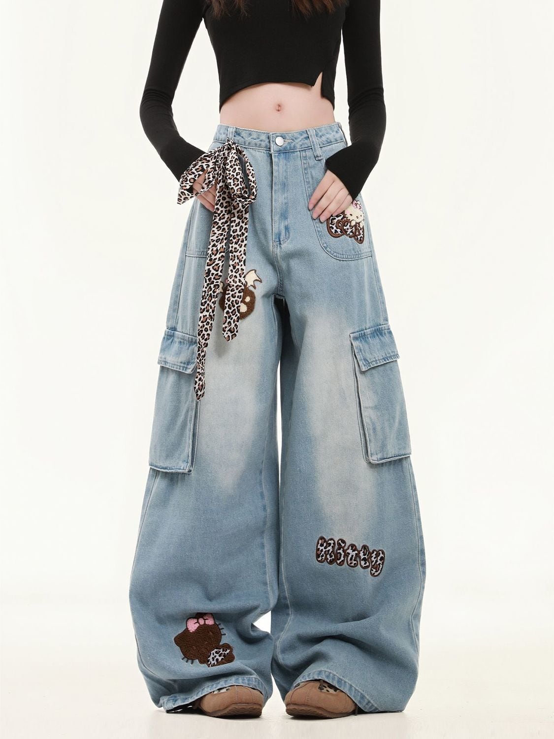 着回し力抜群 売り切れ必至 プラスベルベット 2色選択 デニム ワイドパンツE-12349
