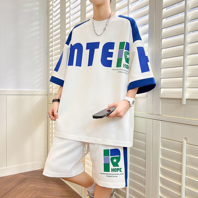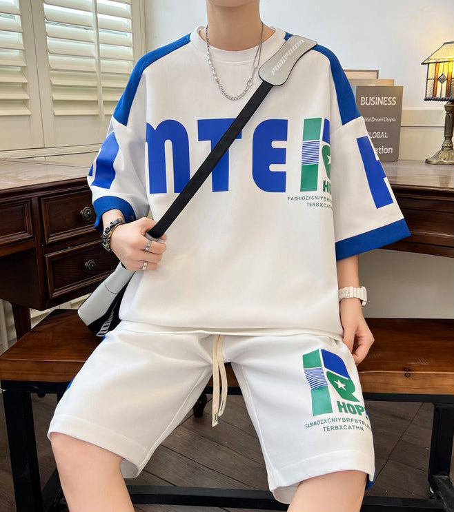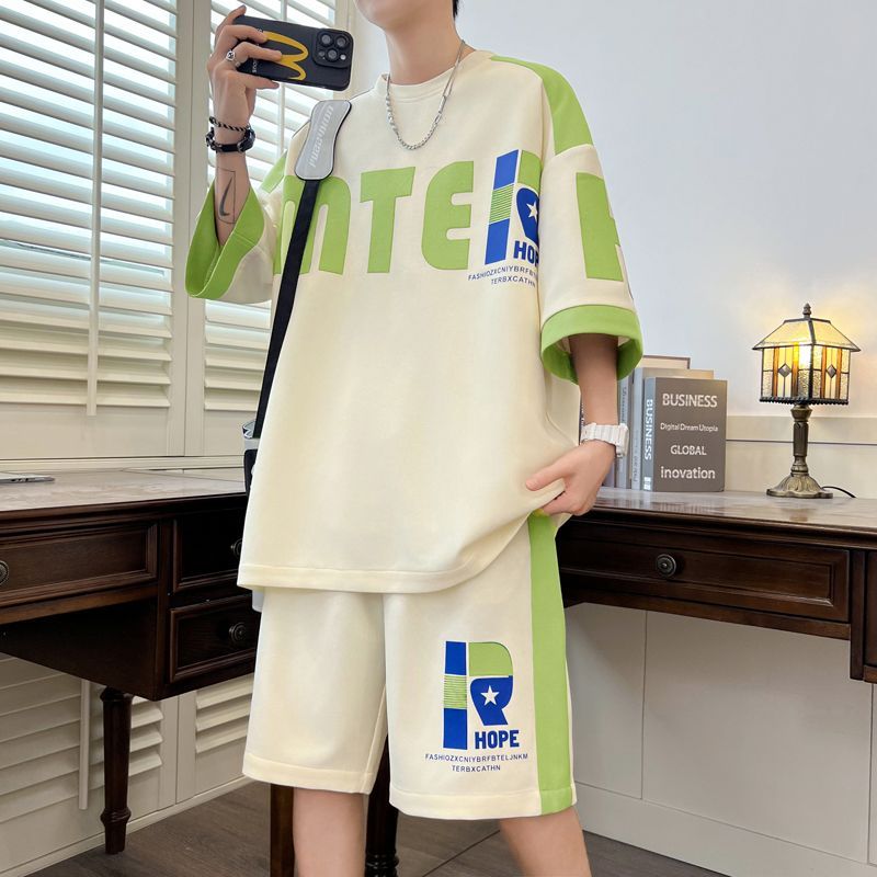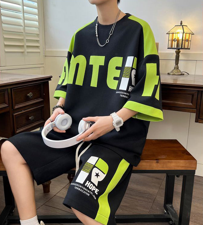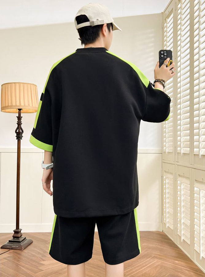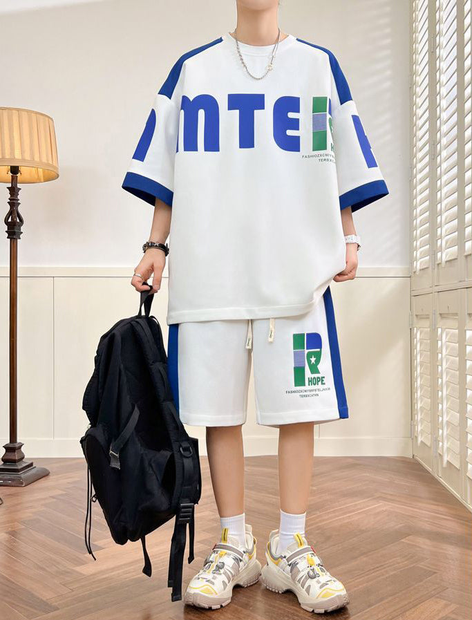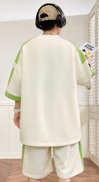 着回し力抜群 切り替え プリント 半袖Tシャツⅹパンツセット 全3色-A895