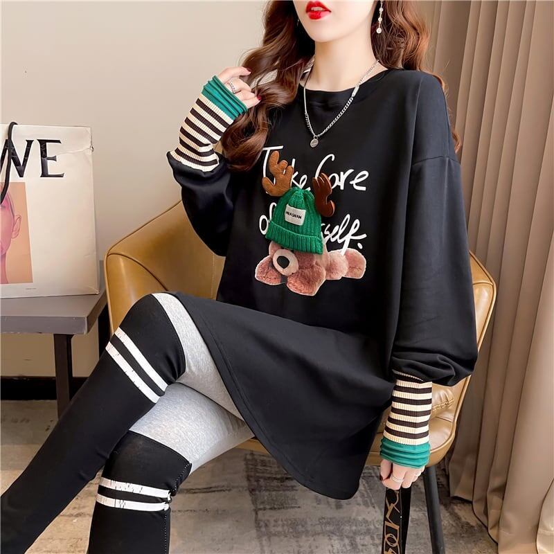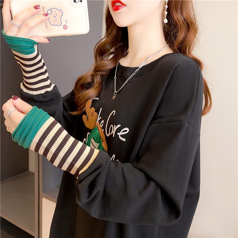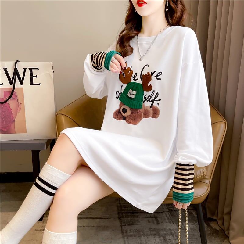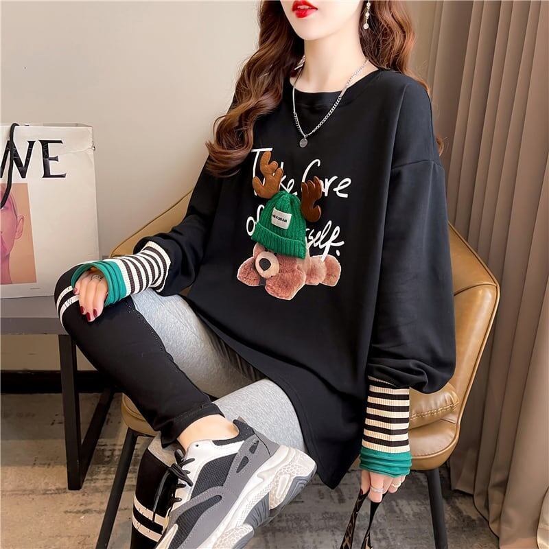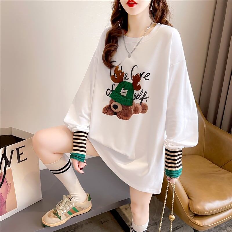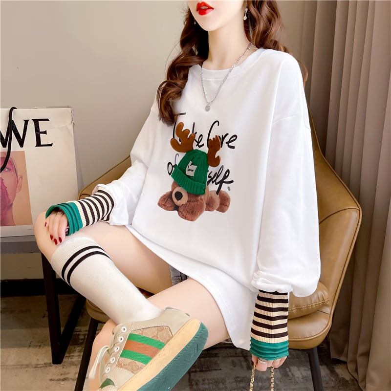 着心地抜群 ラウンドネック 好感度満載 カートゥーンプリント シャツ ブラウスE-2664