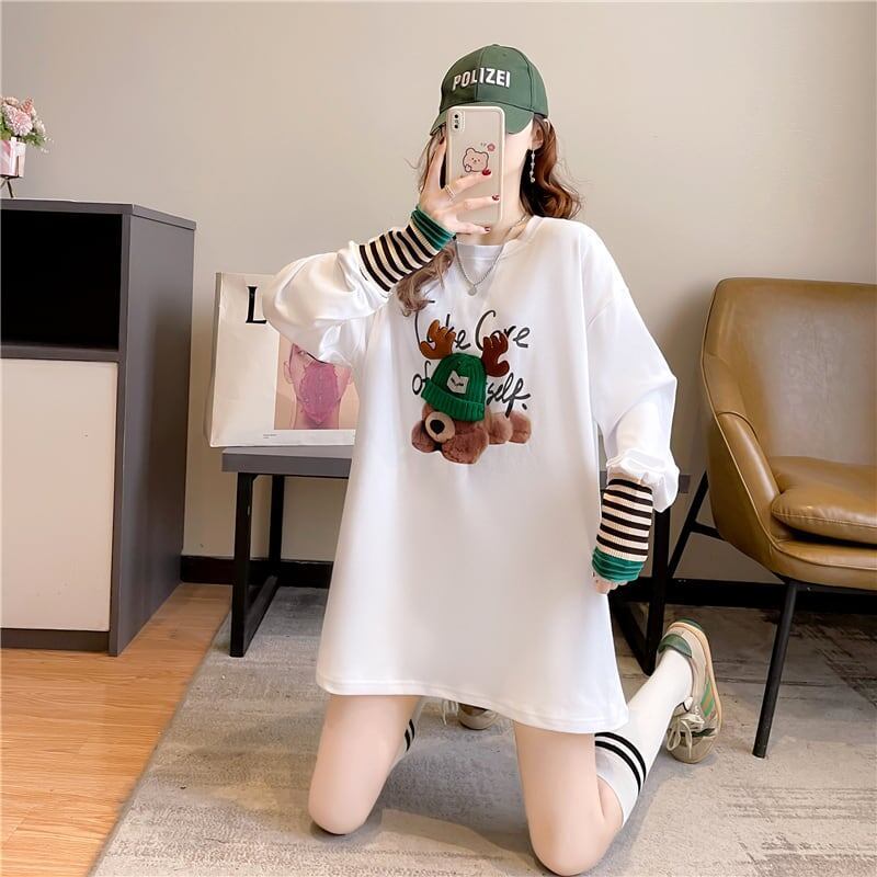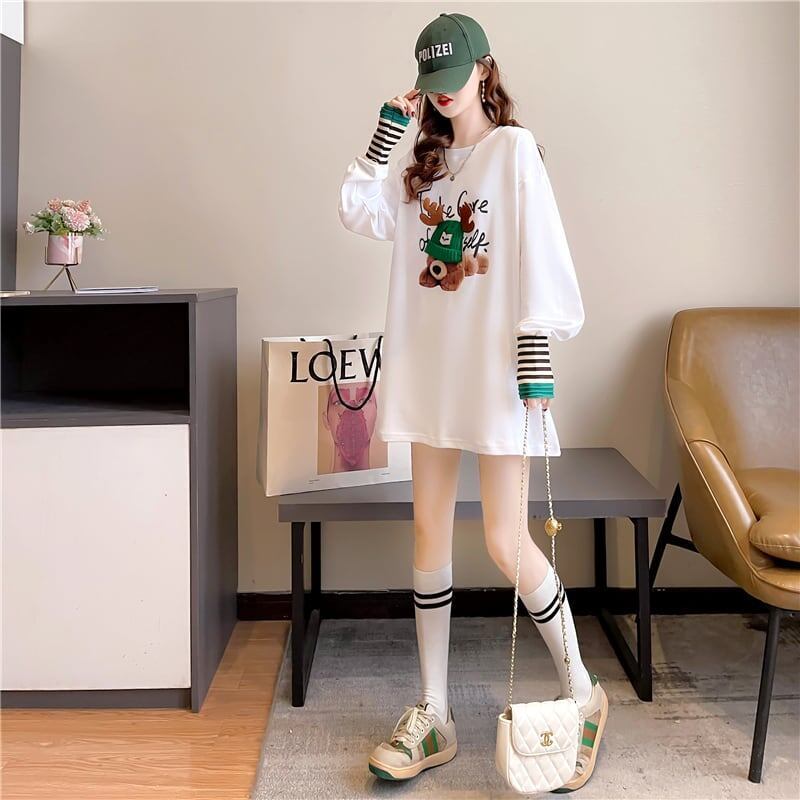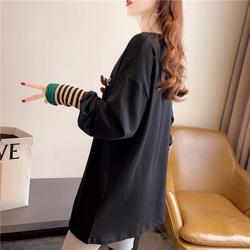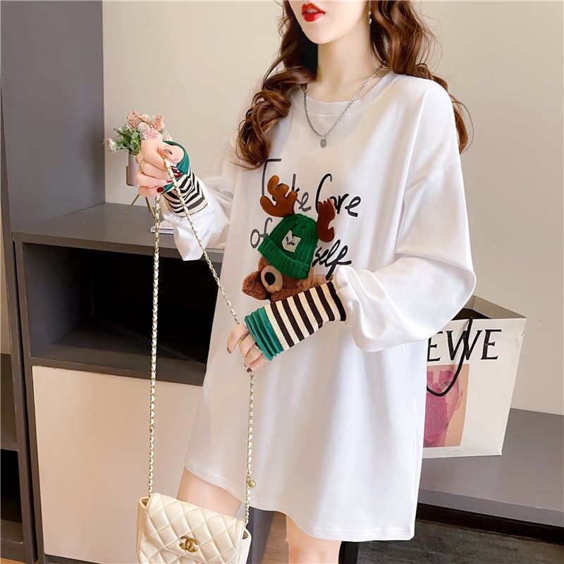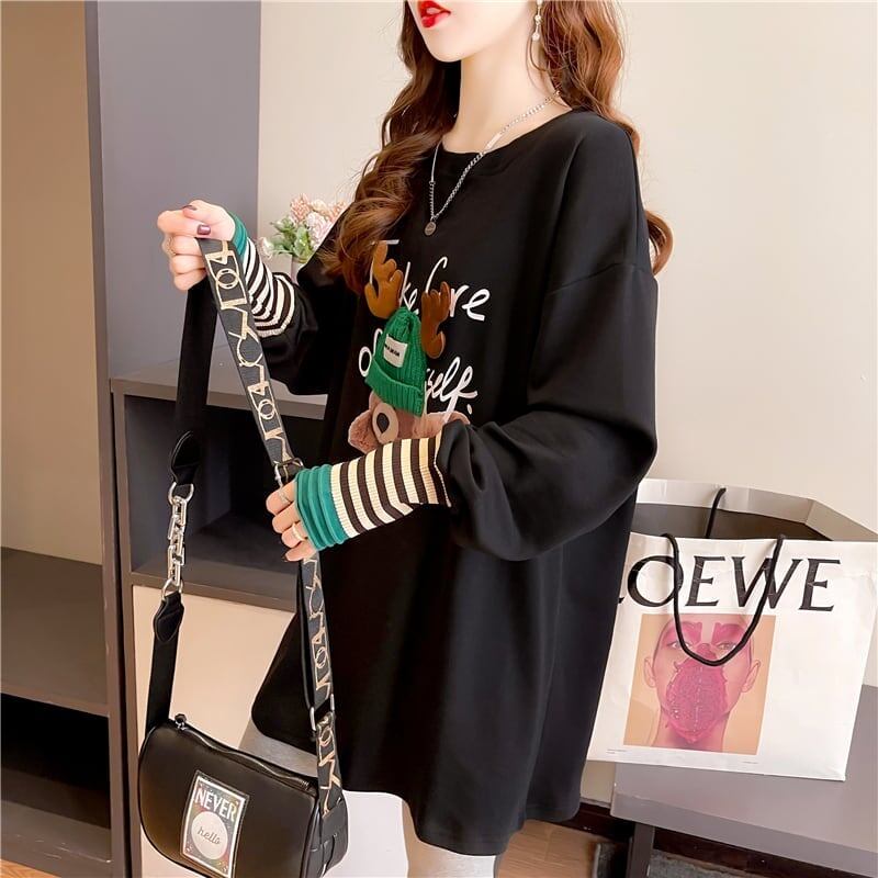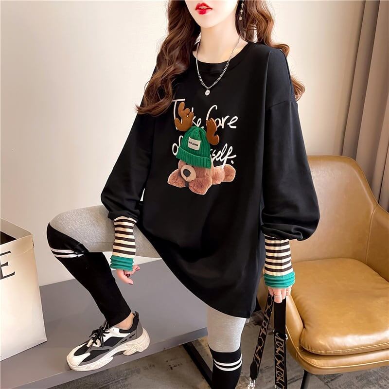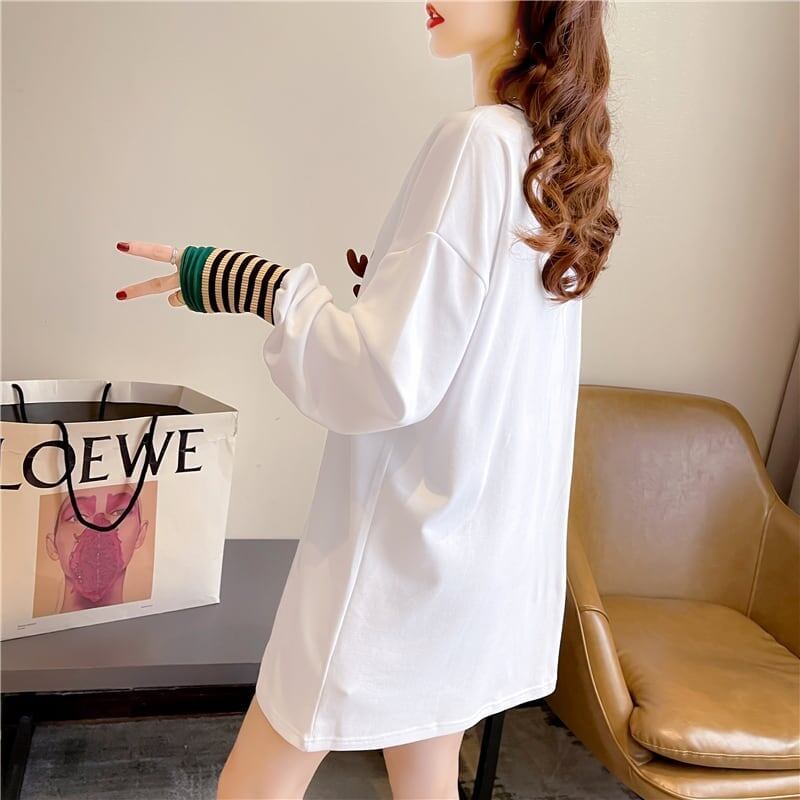 着心地抜群 ラウンドネック 好感度満載 カートゥーンプリント シャツ ブラウスE-2664