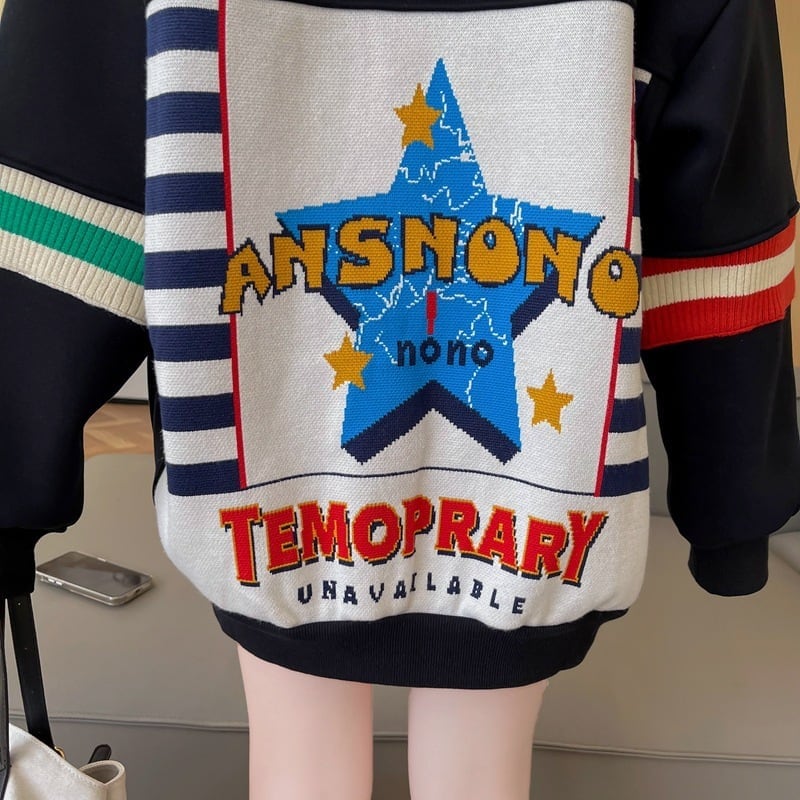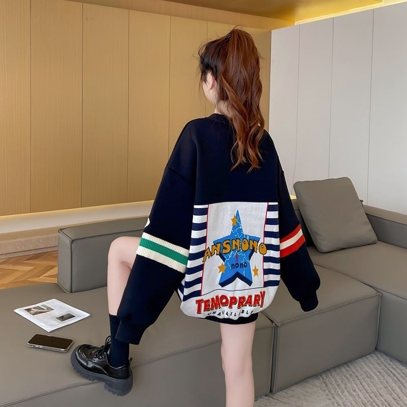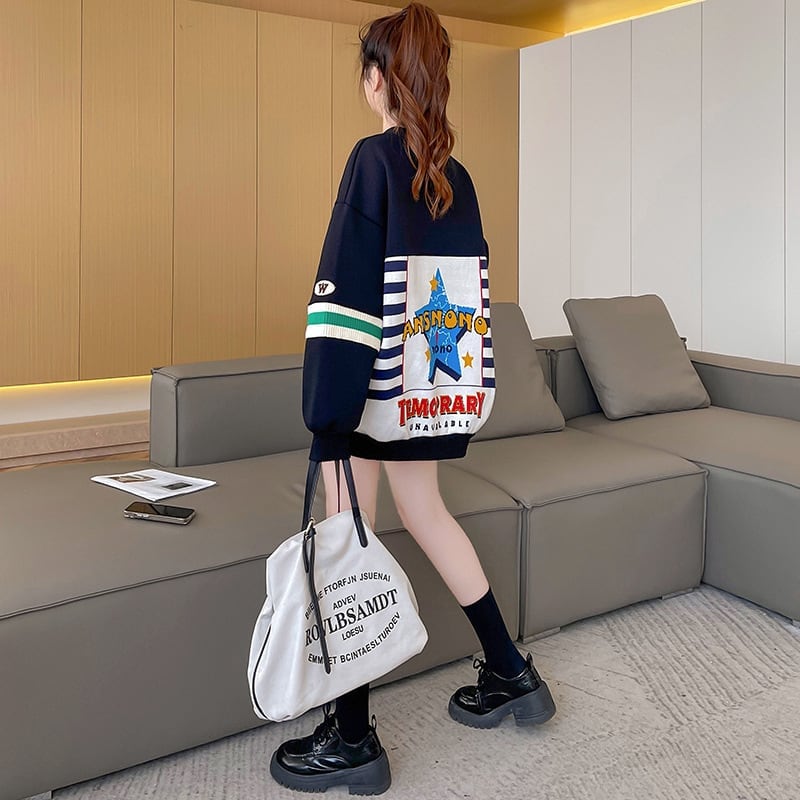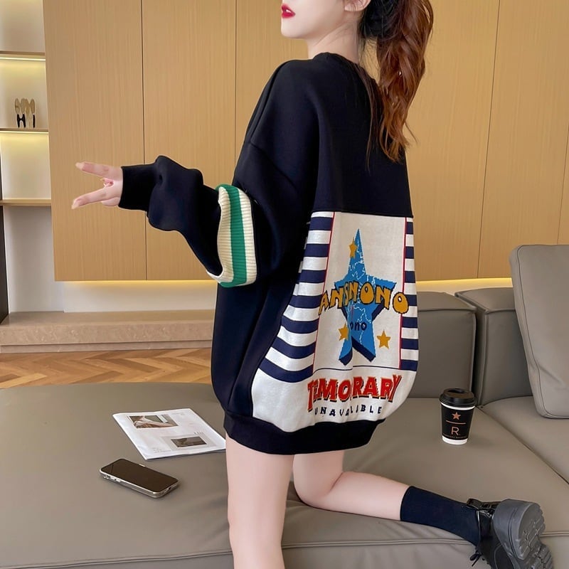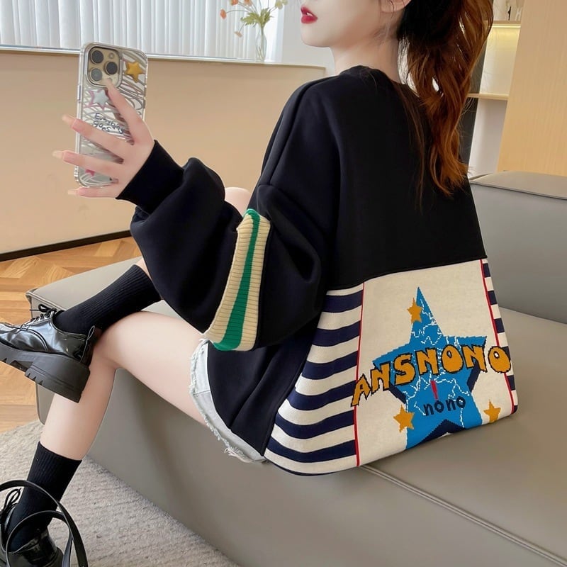 着?せ 切り替えブラック 星柄グラフィックロゴ スウェットE-4373