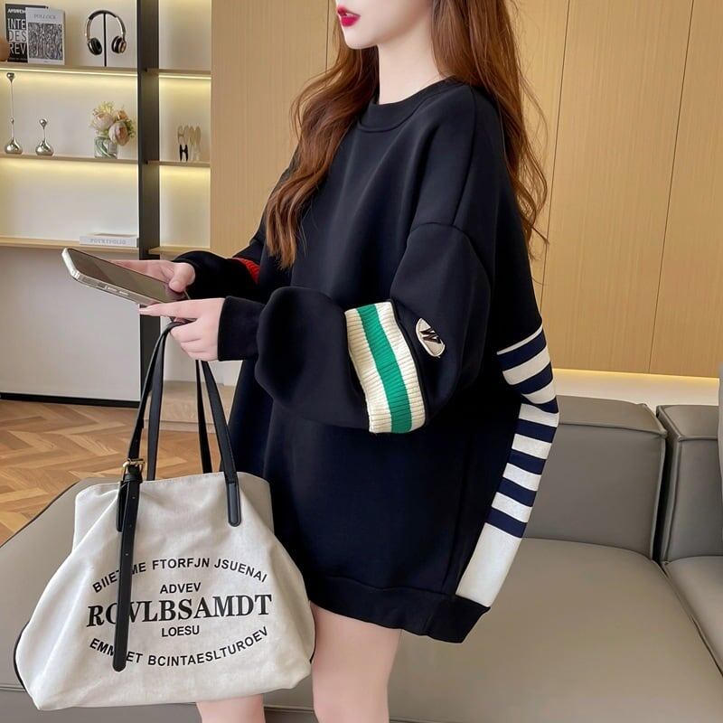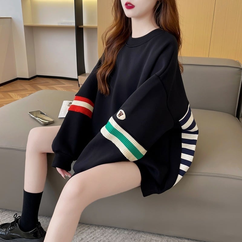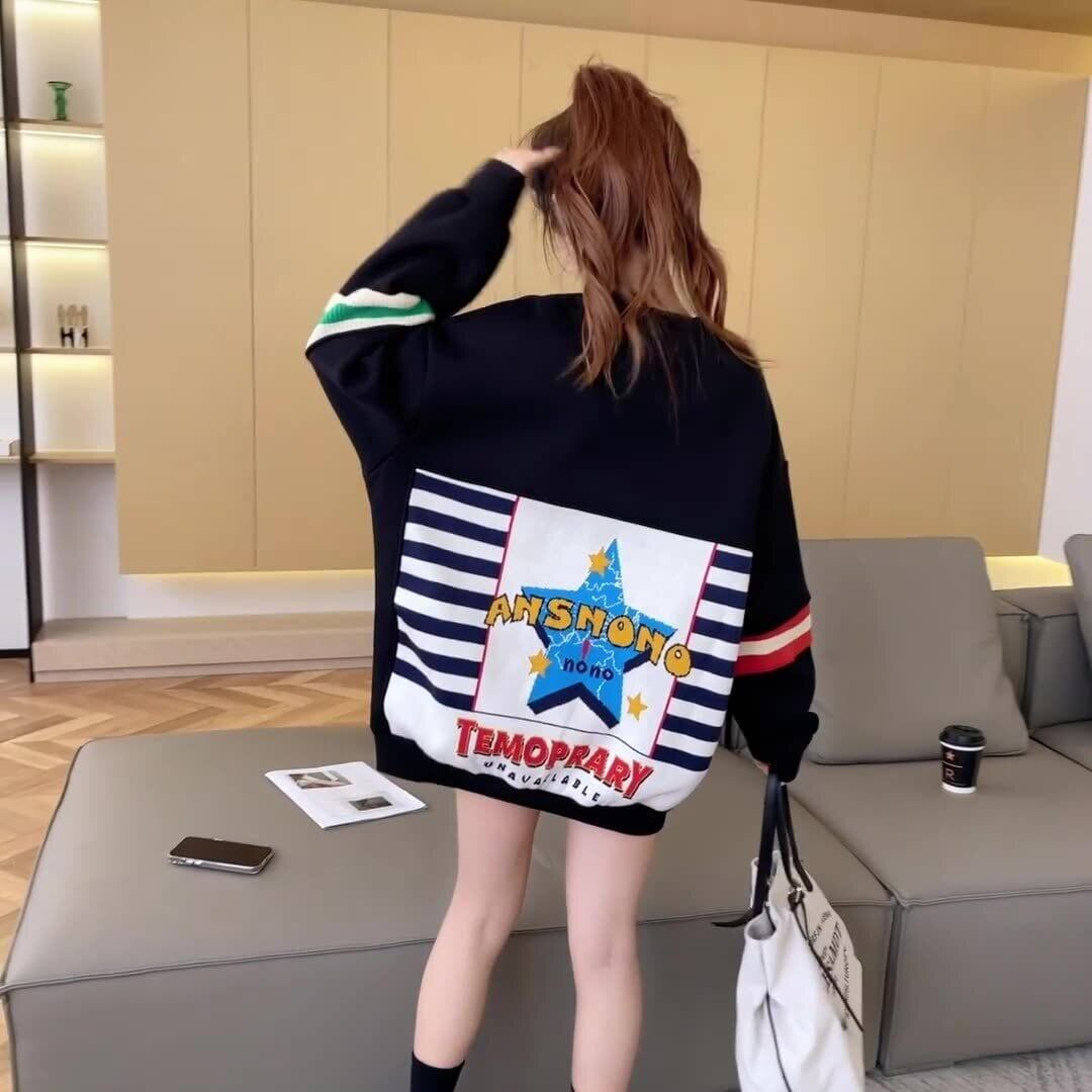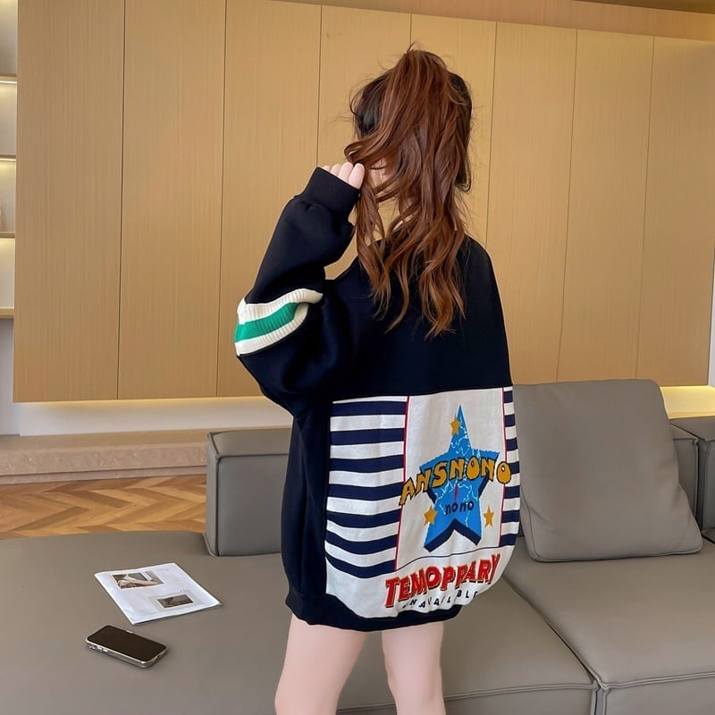 着?せ 切り替えブラック 星柄グラフィックロゴ スウェットE-4373