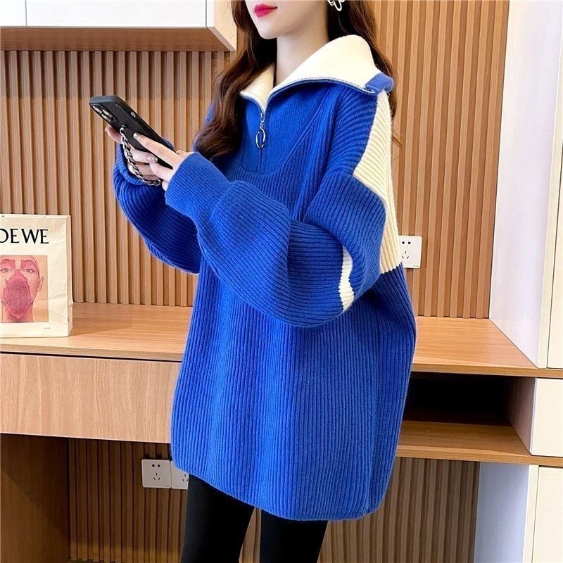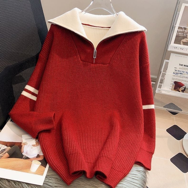 知的 美人度アップ 2色 ハーフジップニットE-12385