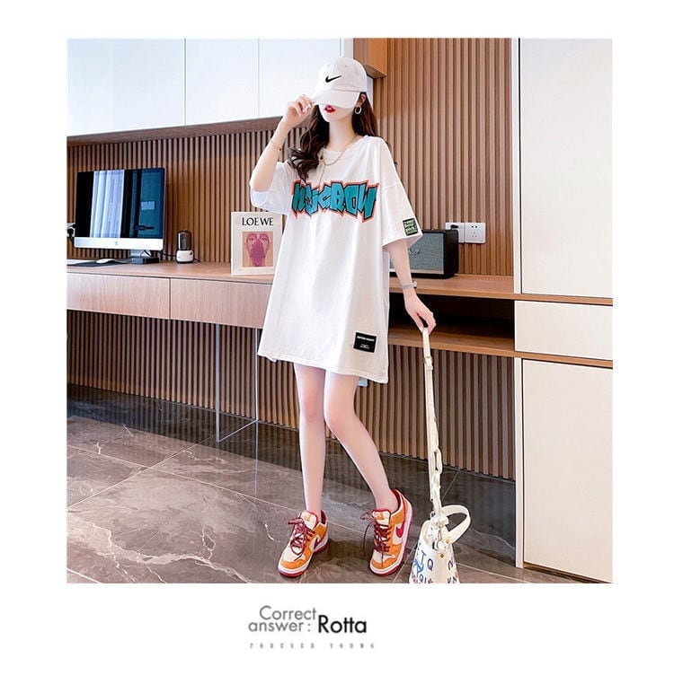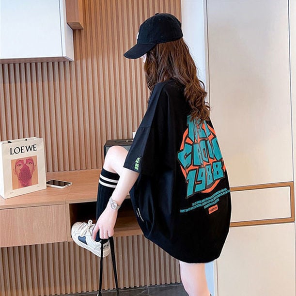 組み合わせやすい 数字ロゴ アルファベット プリントTシャツ ゆったり半袖<ins-6527>