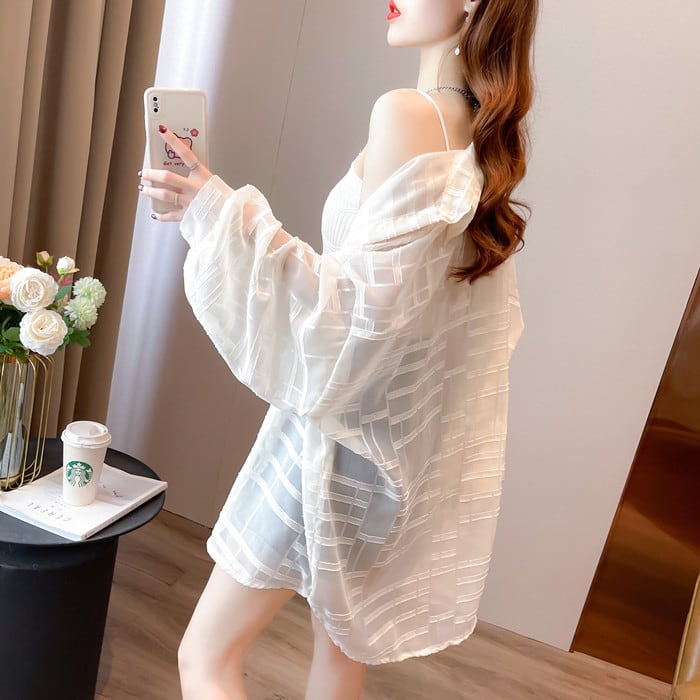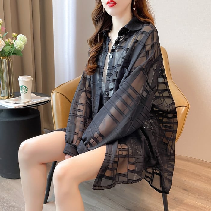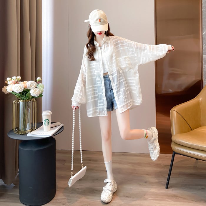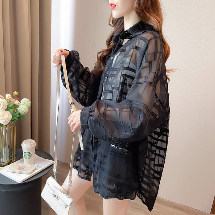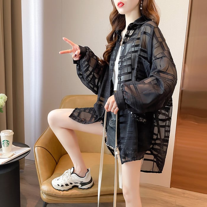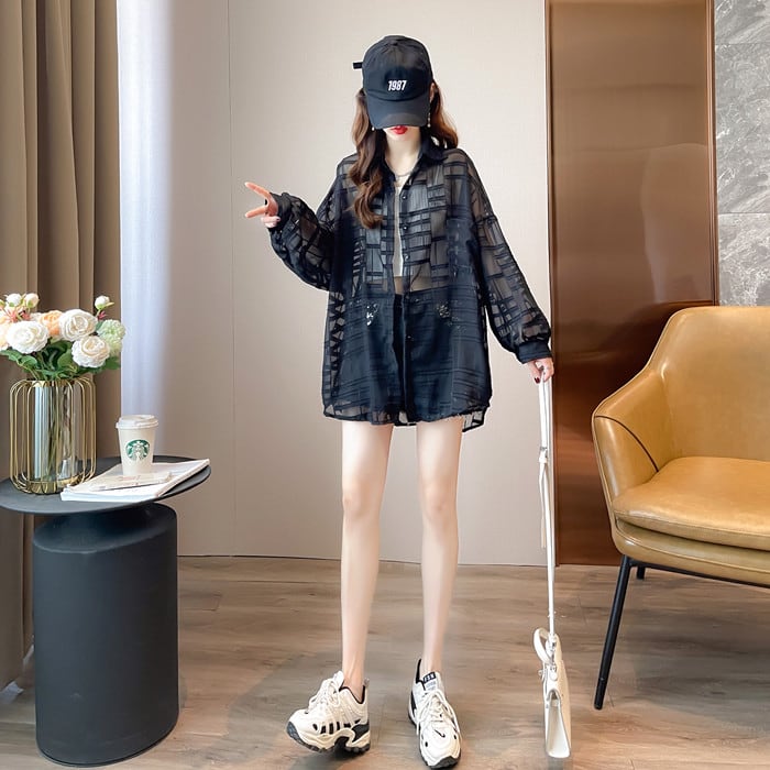 絶対欲しい カジュアル 透け感 日焼け対策 シャツ <ins-8478>