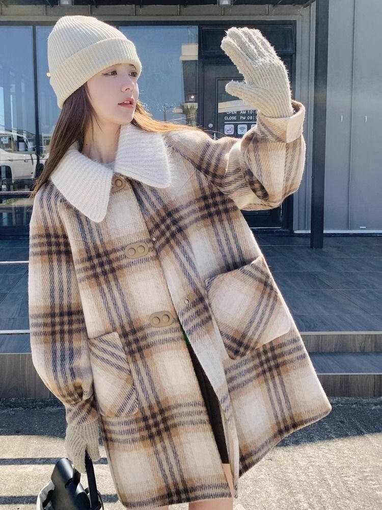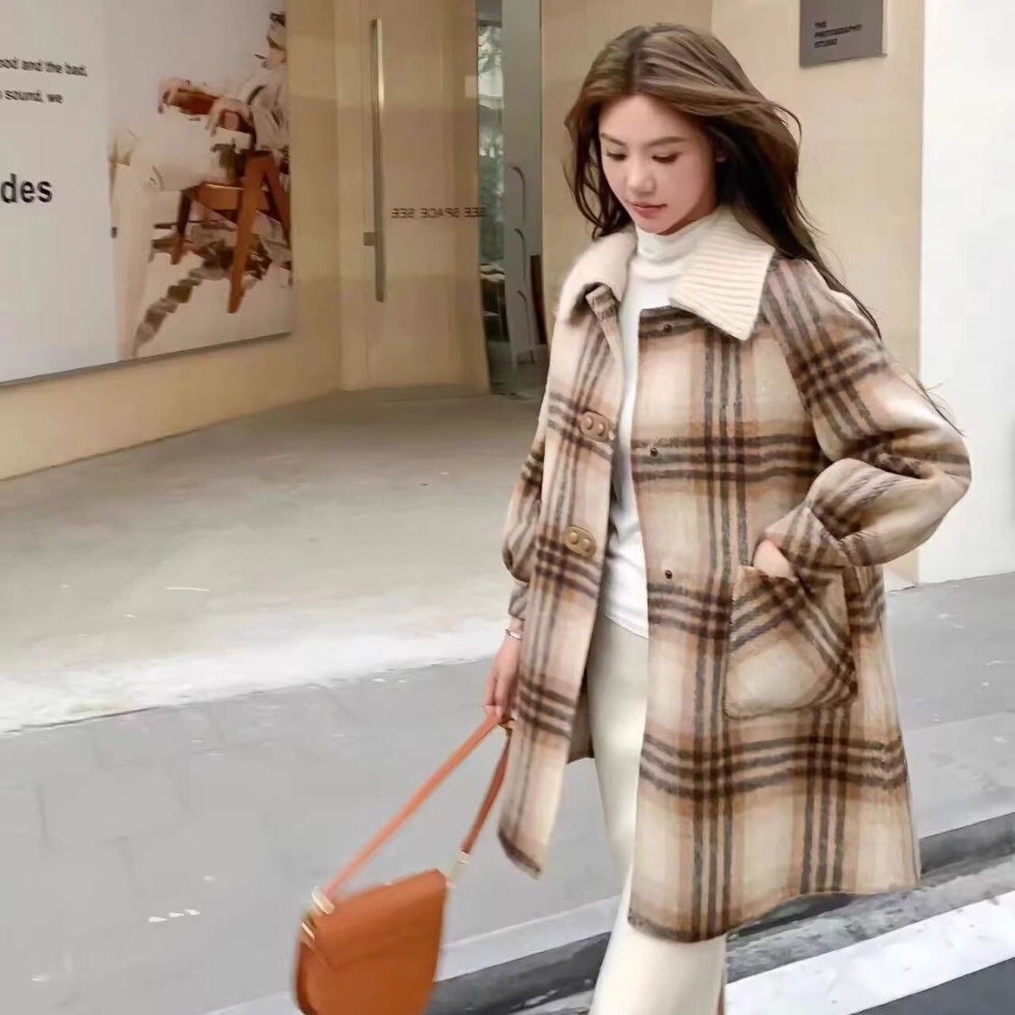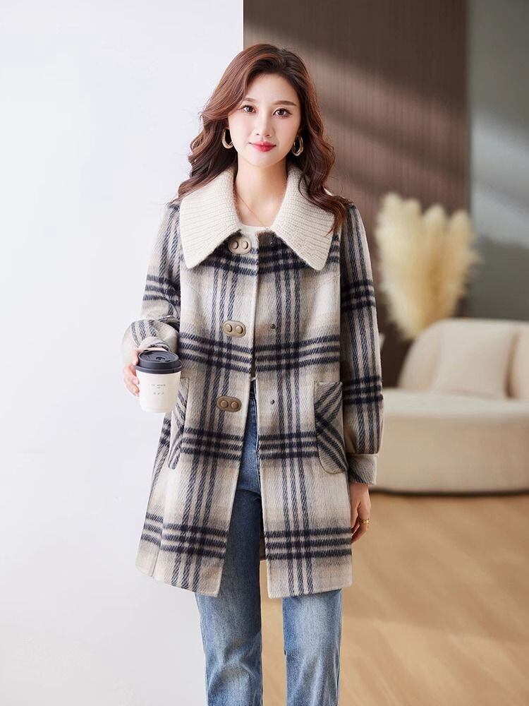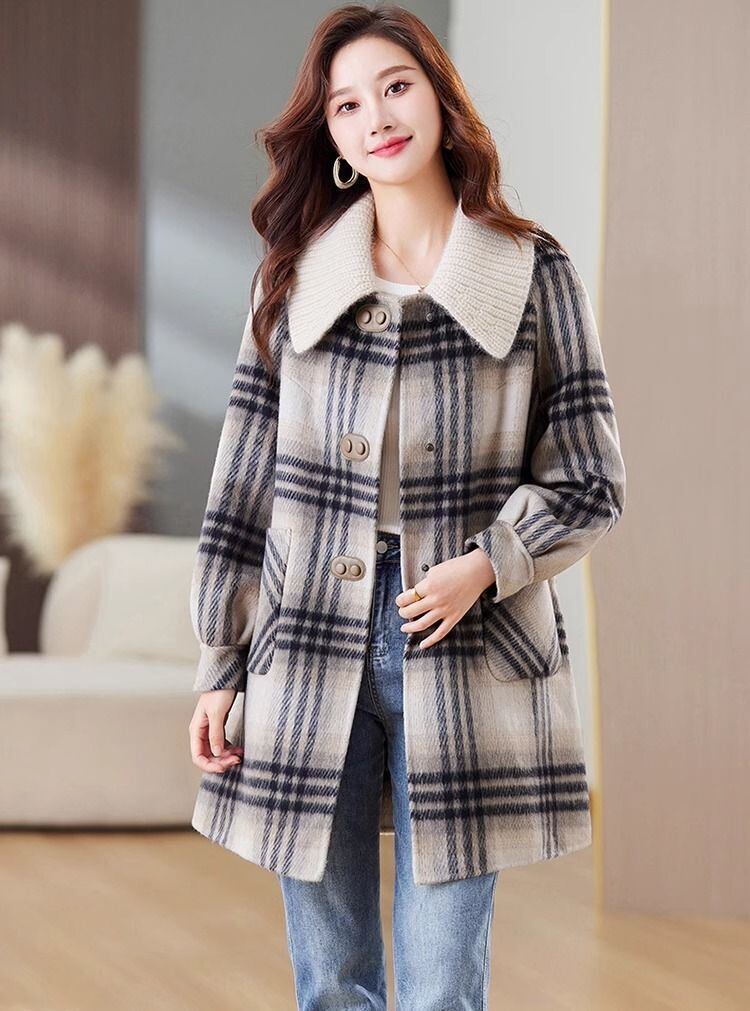 絶対欲しい チェック柄 高級感溢れる 2色選択 ミドルレングス コート E-9740