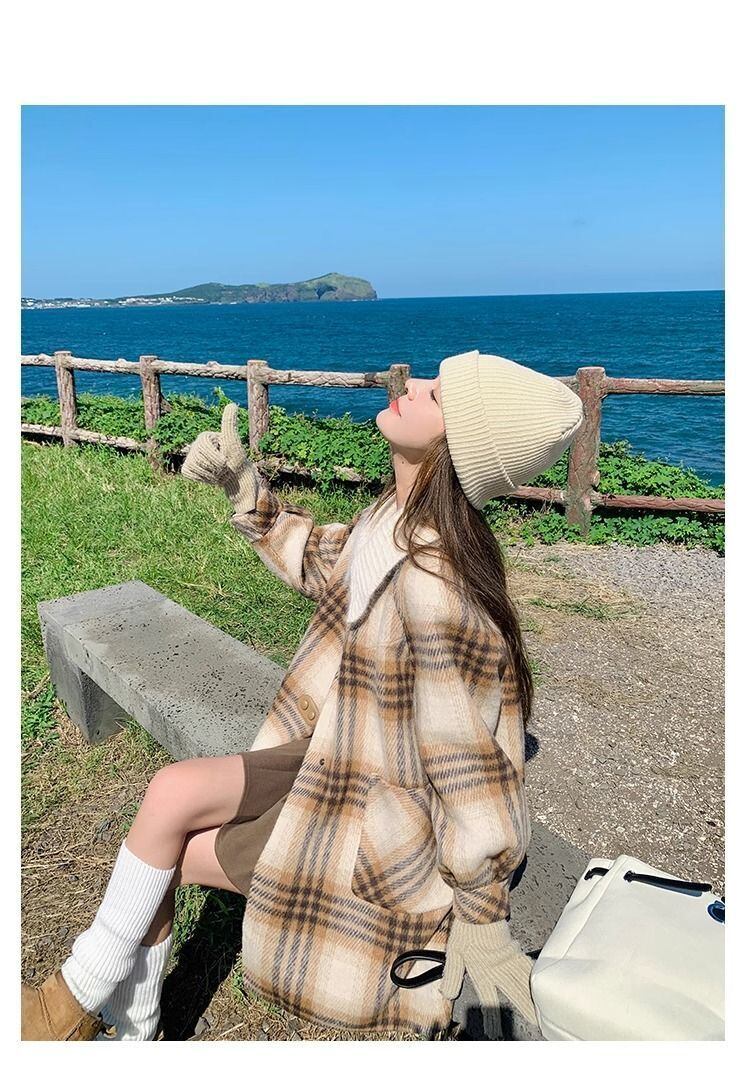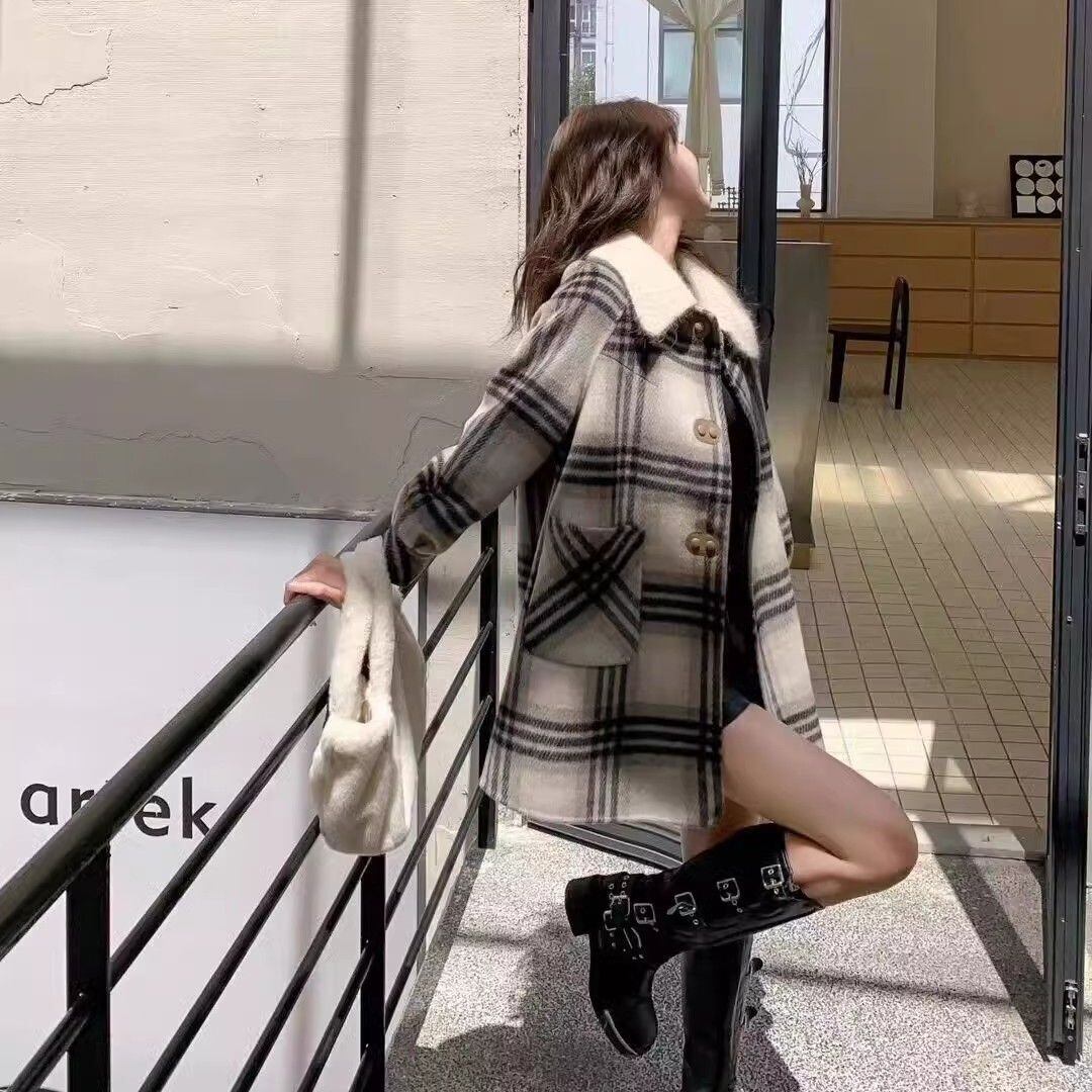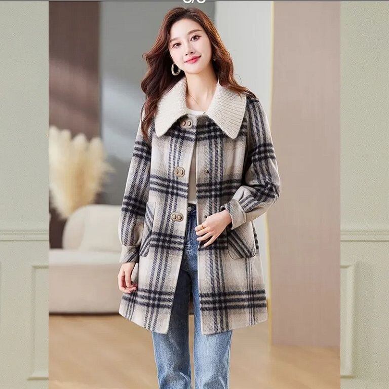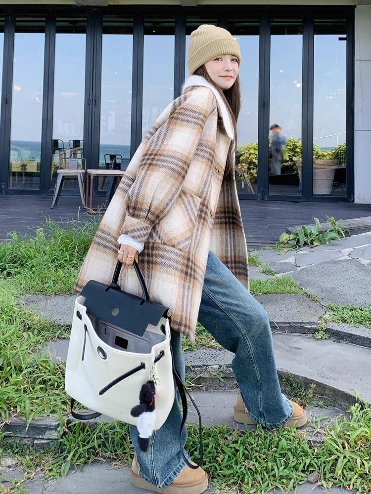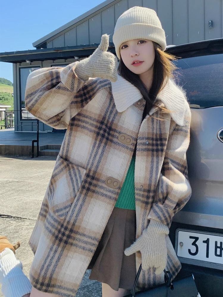 絶対欲しい チェック柄 高級感溢れる 2色選択 ミドルレングス コート E-9740