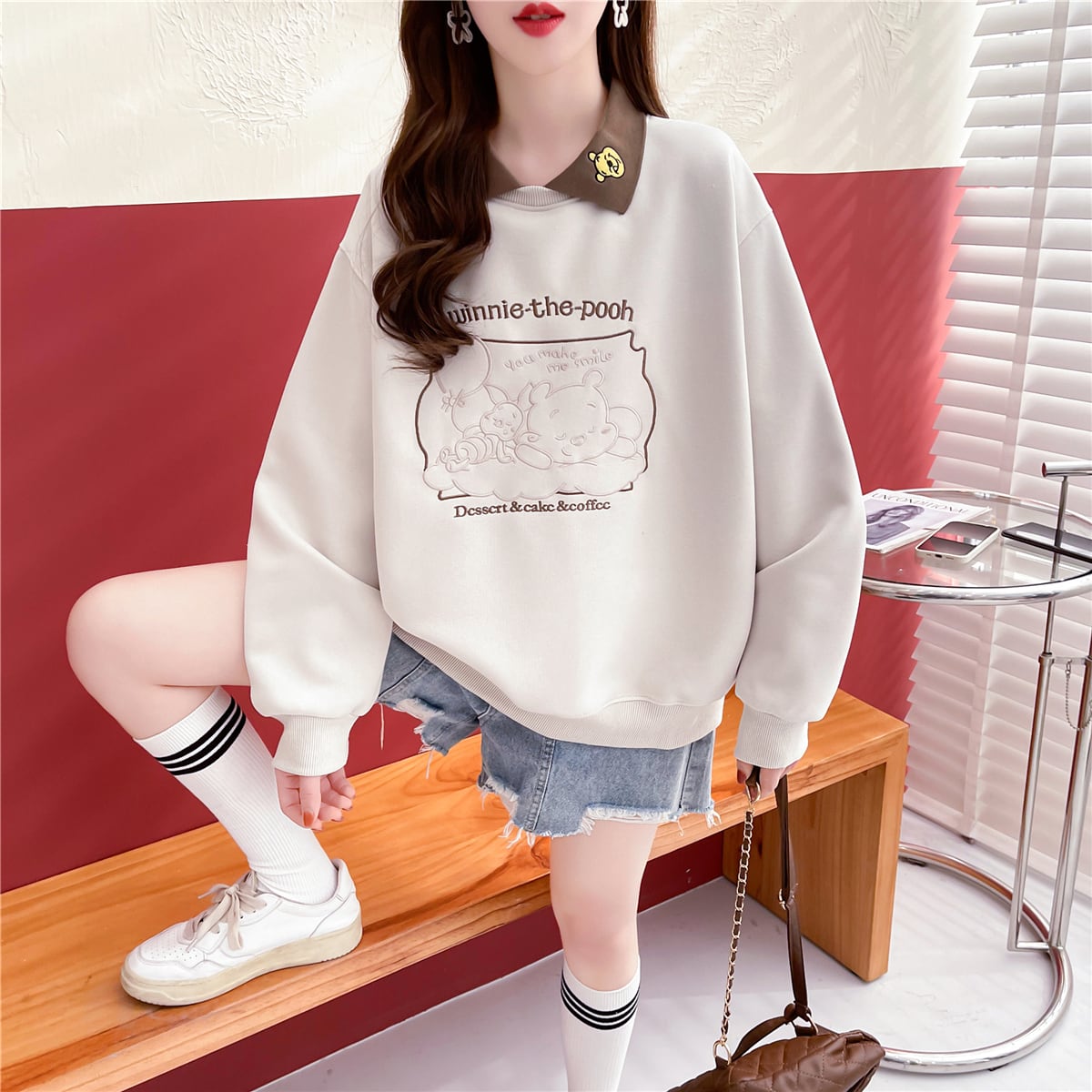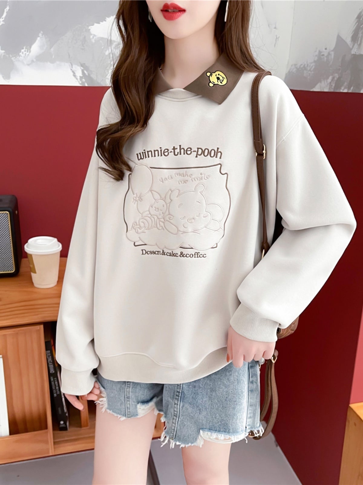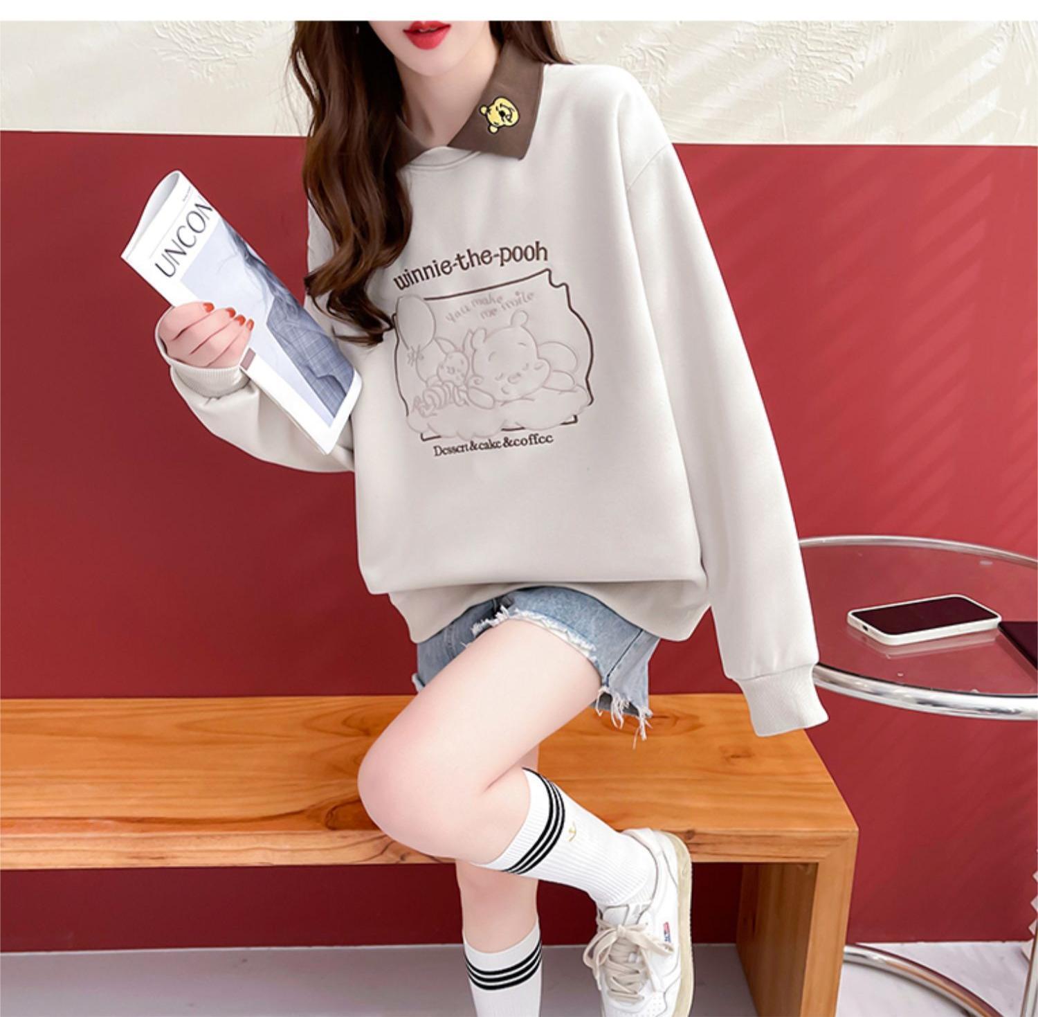 絶対欲しい 折り襟 グラフィック ロゴゆったりスウェット全2色トップスins-4779