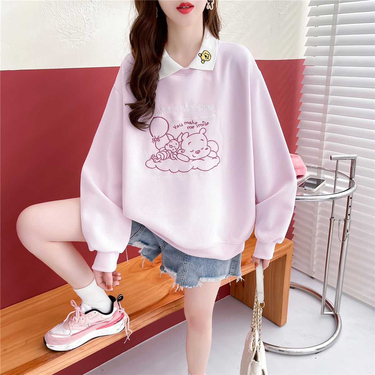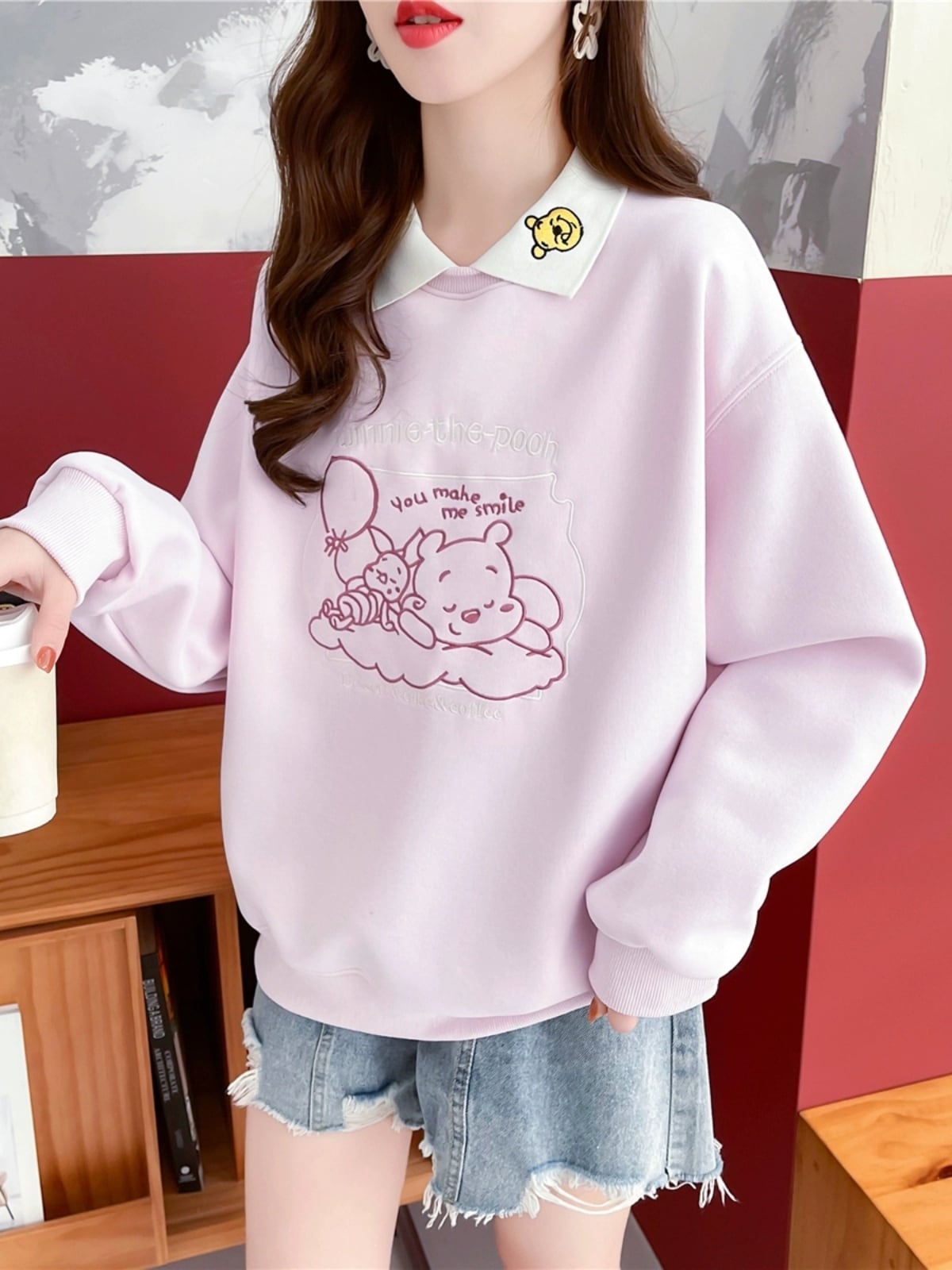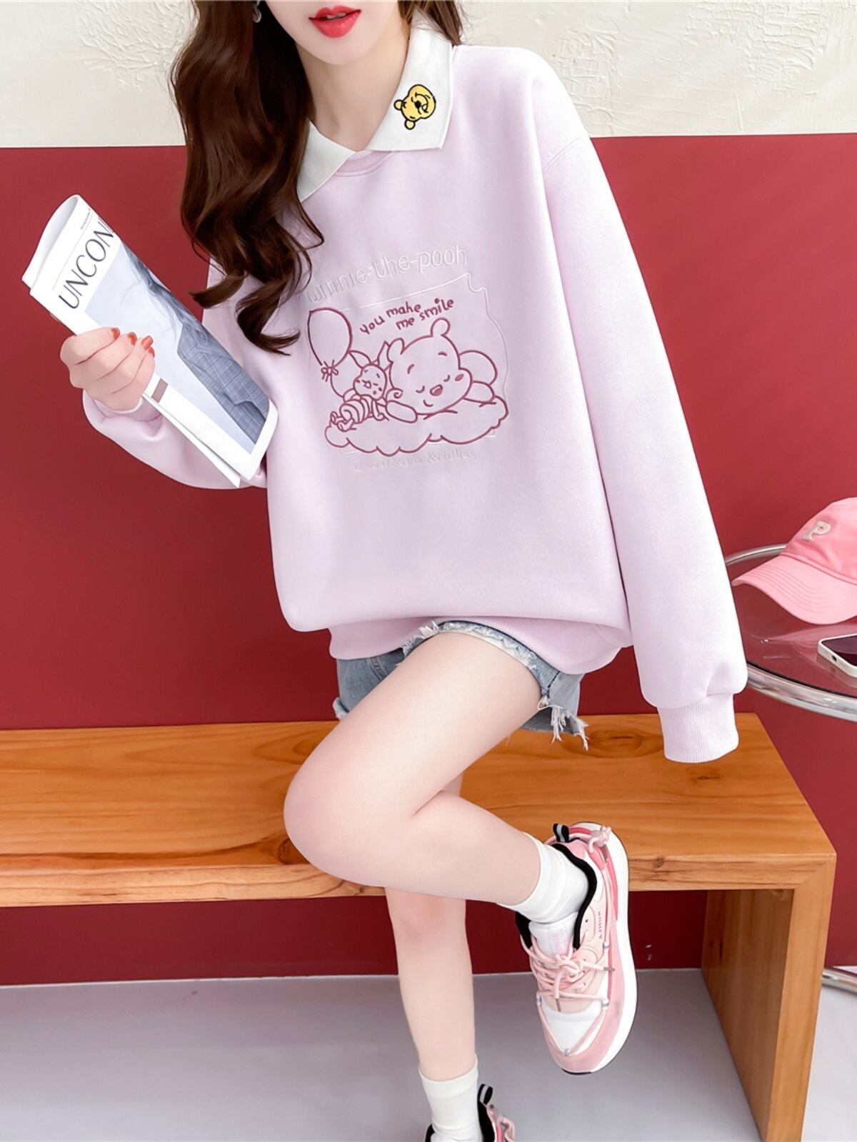 絶対欲しい 折り襟 グラフィック ロゴゆったりスウェット全2色トップスins-4779