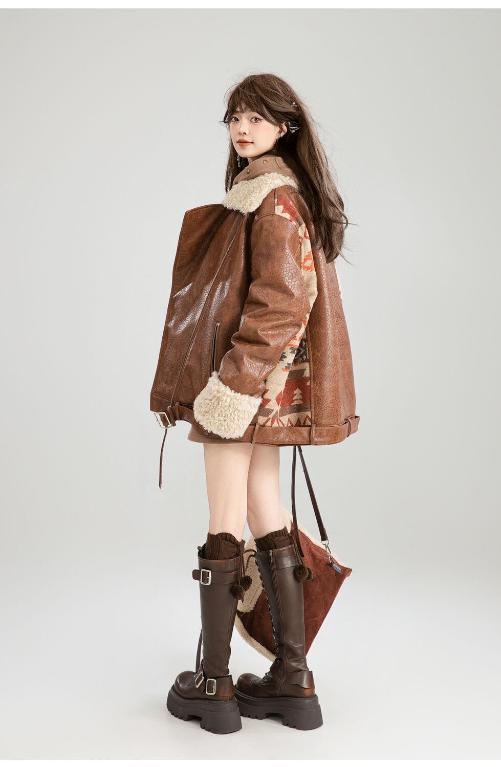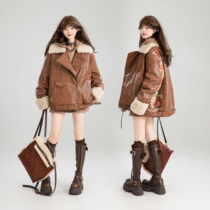 絶対流行 アバンギャルド おしゃれ度高め 切り替え 上品 Pu レザーコットンコート E-9883
